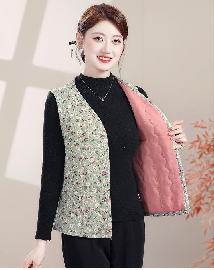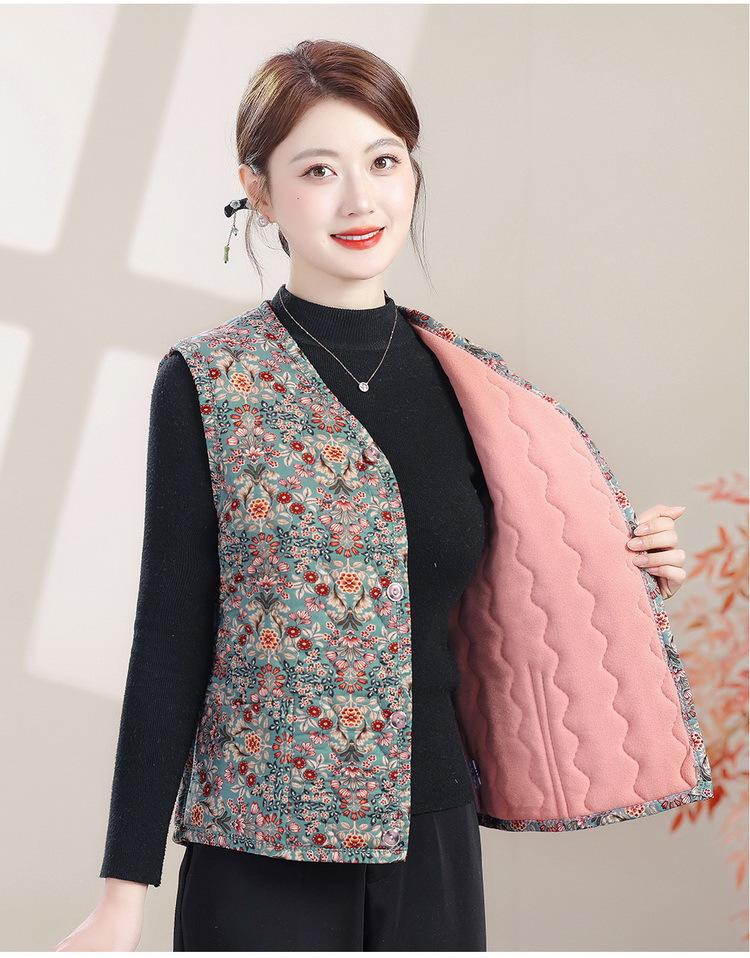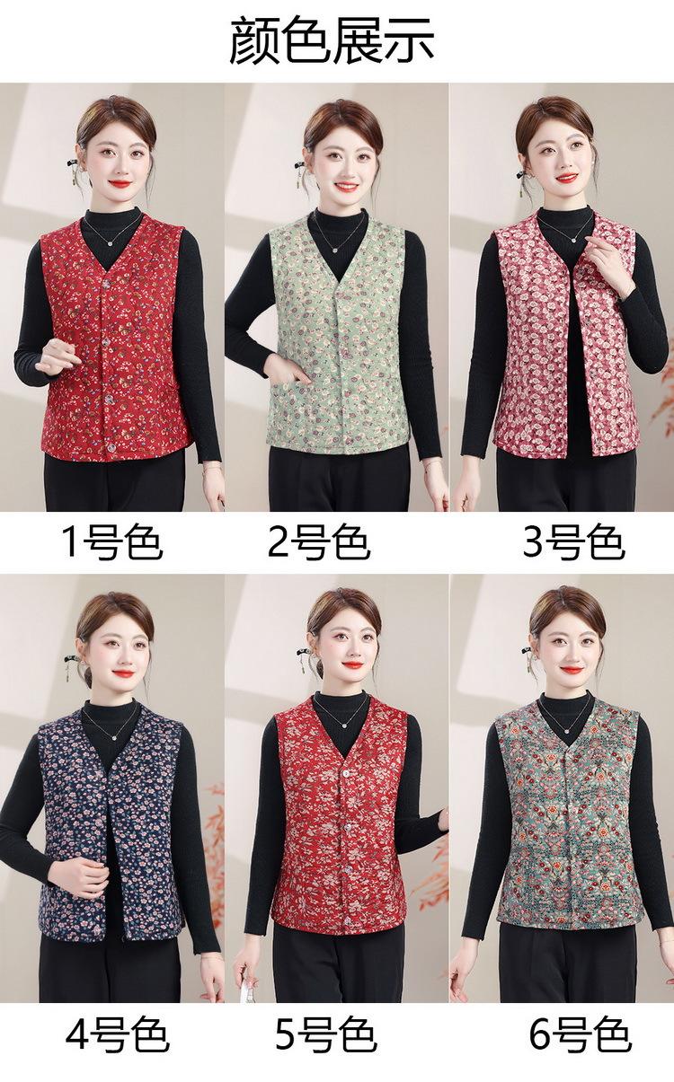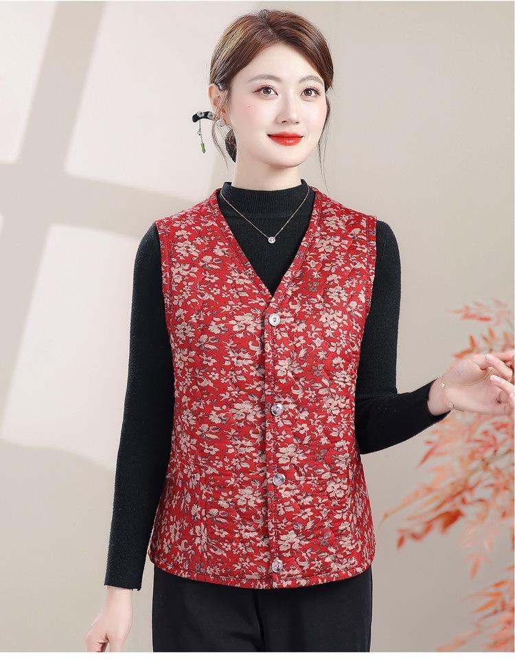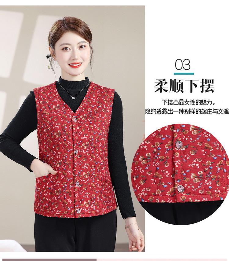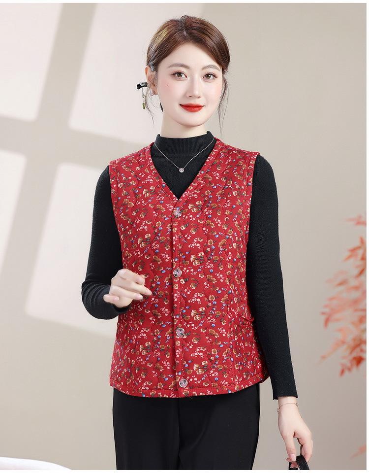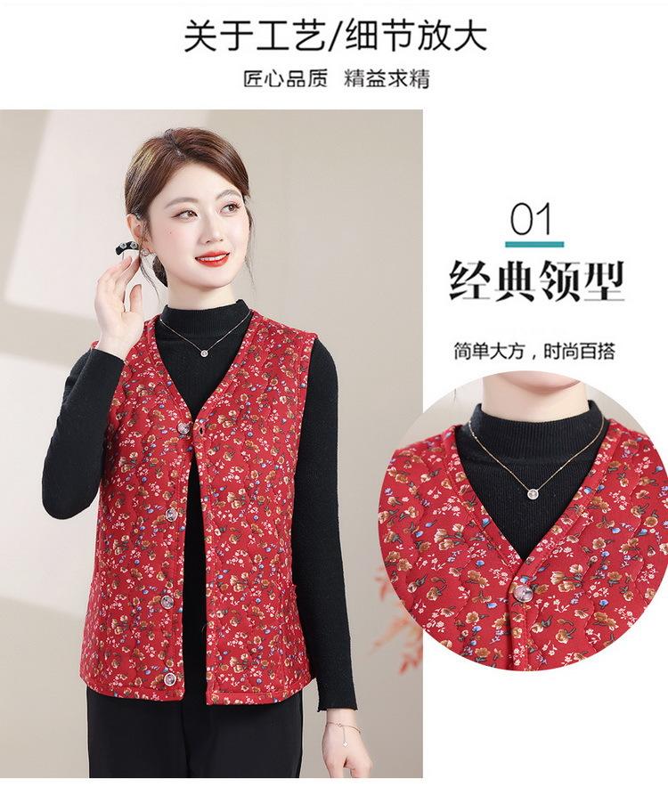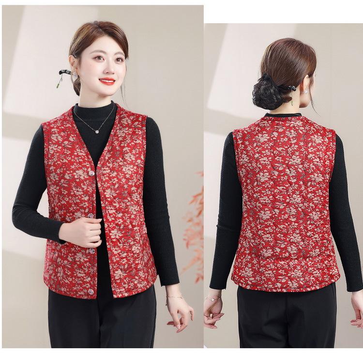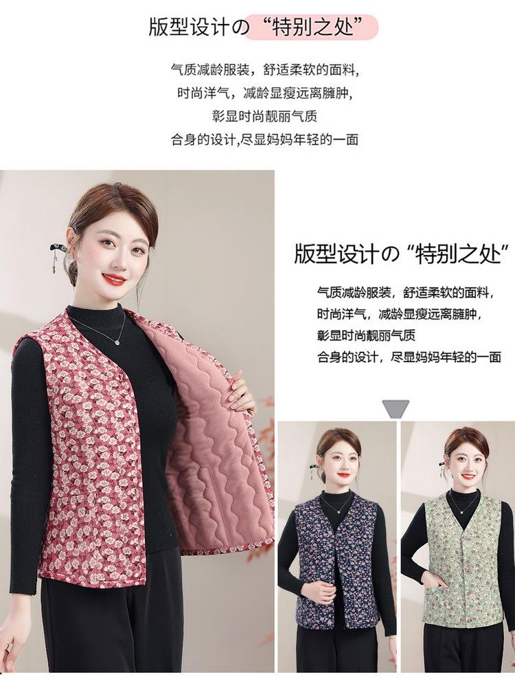 Chaleco para mujer de mediana edad y anciana para otoño e invierno, nuevo estilo, acolchado de algodón, cálido, forro floral, sin mangas, chaqueta, madre, moderno, chaleco pequeño