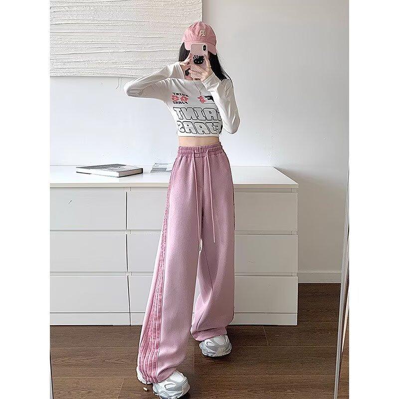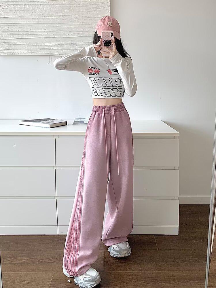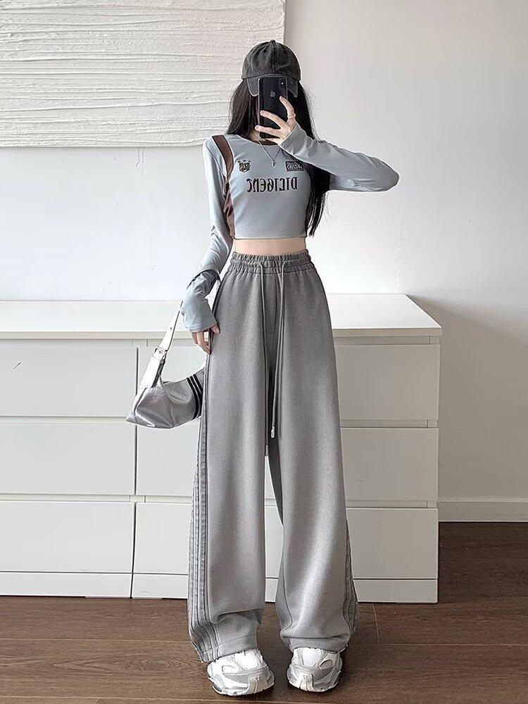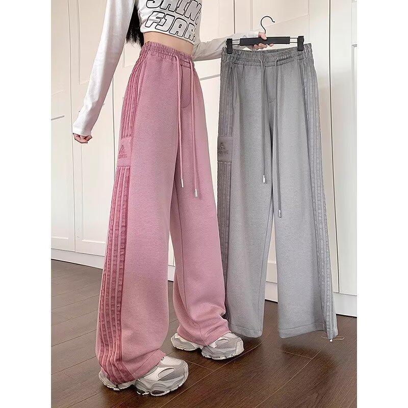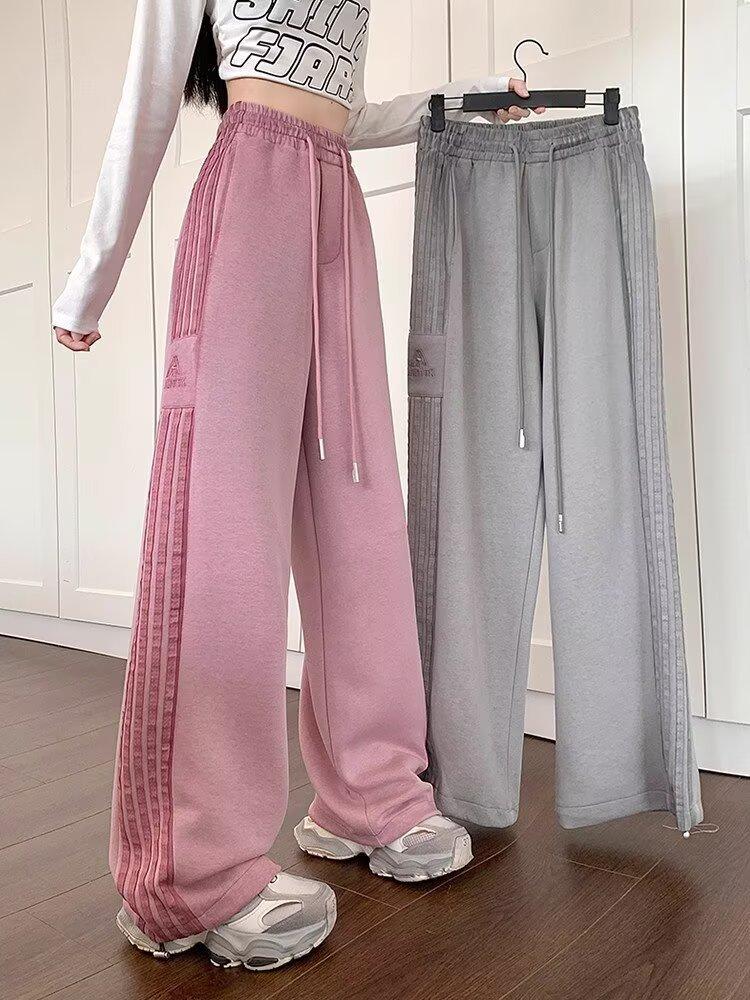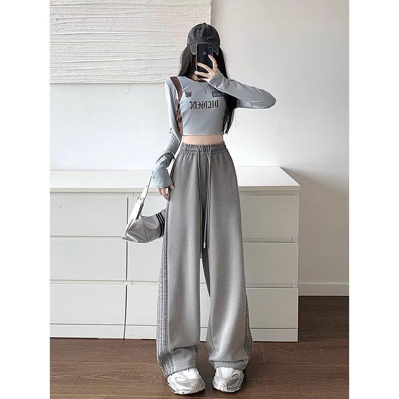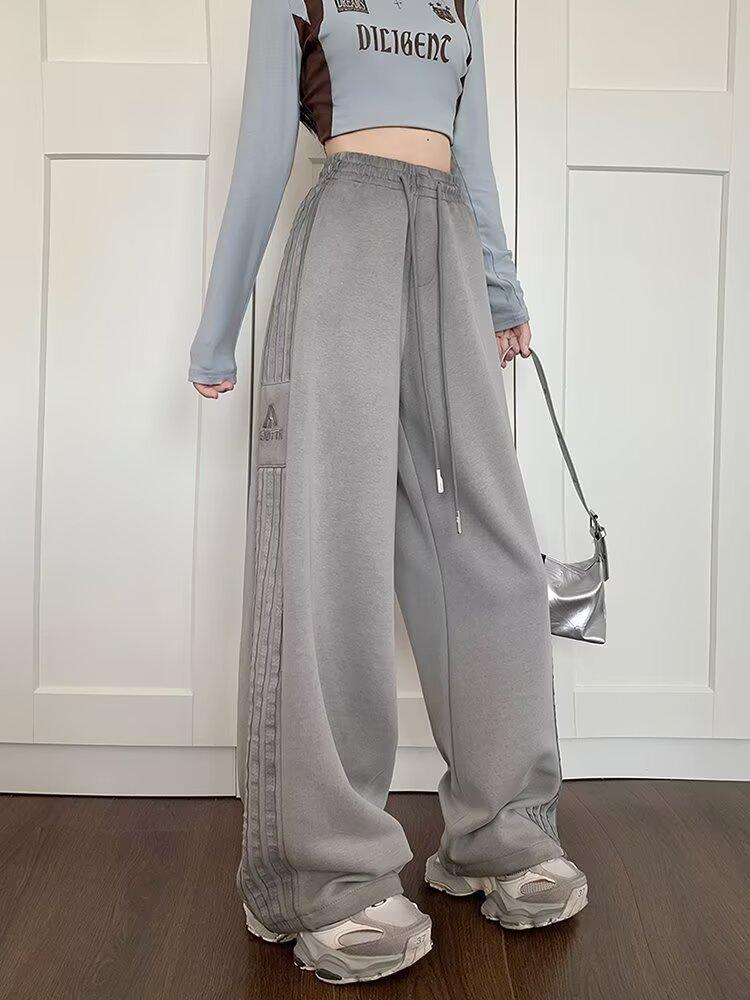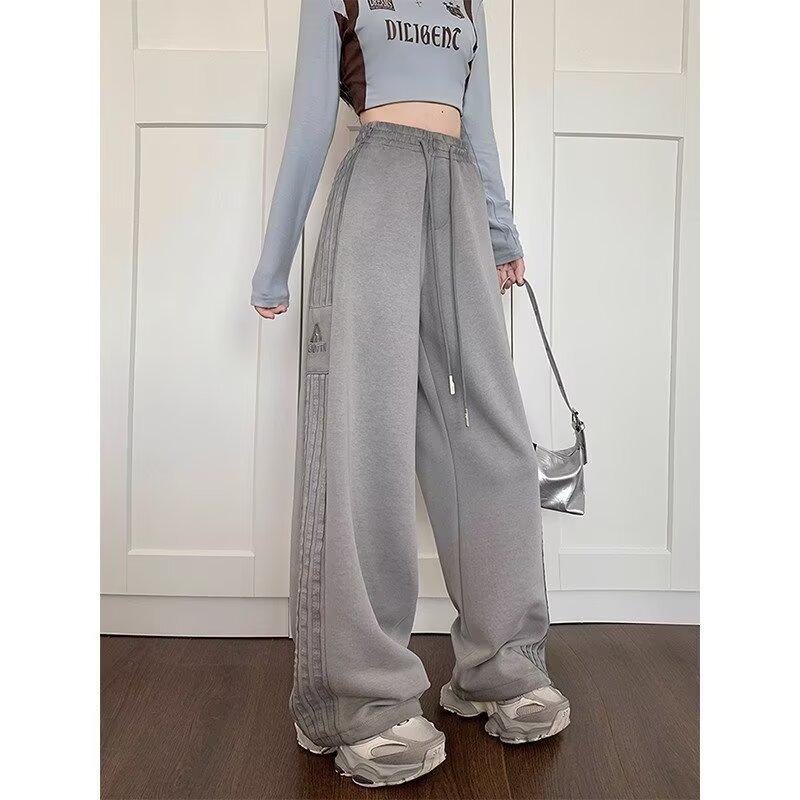 Pantalones de pierna ancha con cordón modernos y sencillos para mujer 2025 otoño nuevos versátiles holgados de pierna recta casuales largos