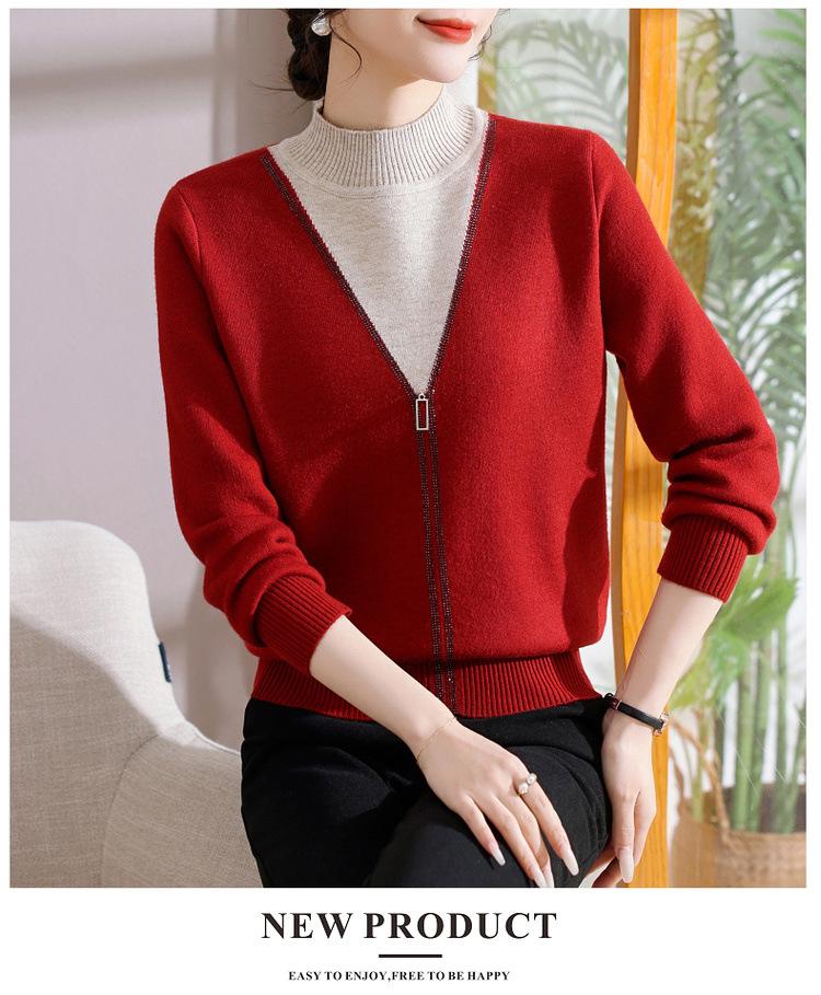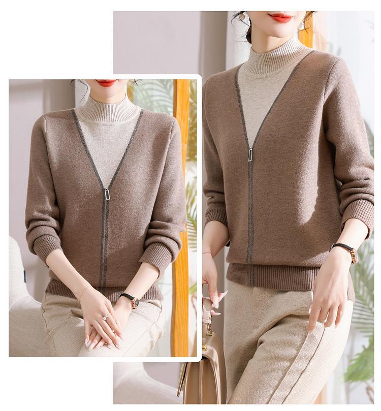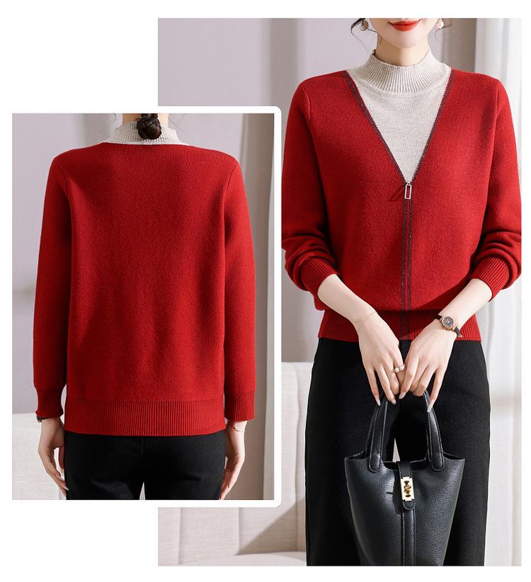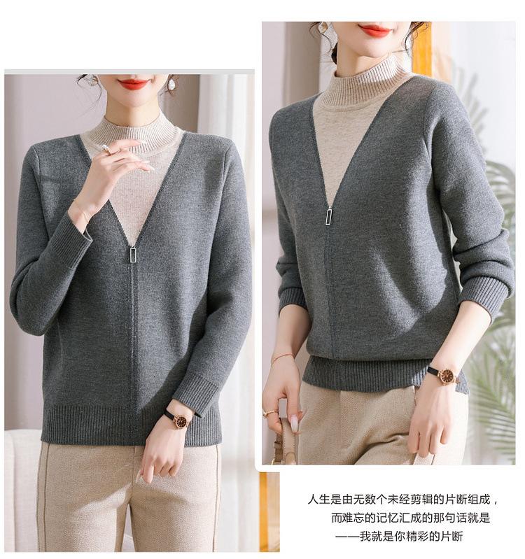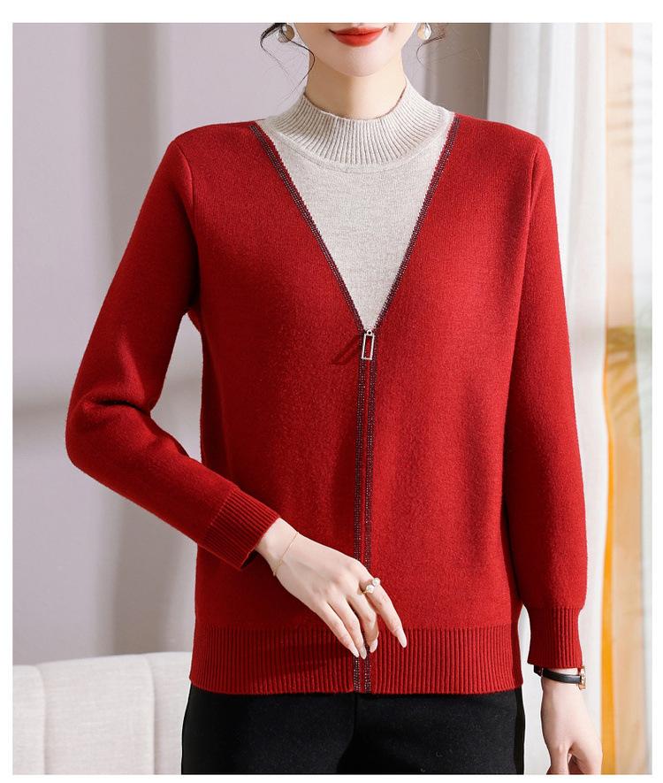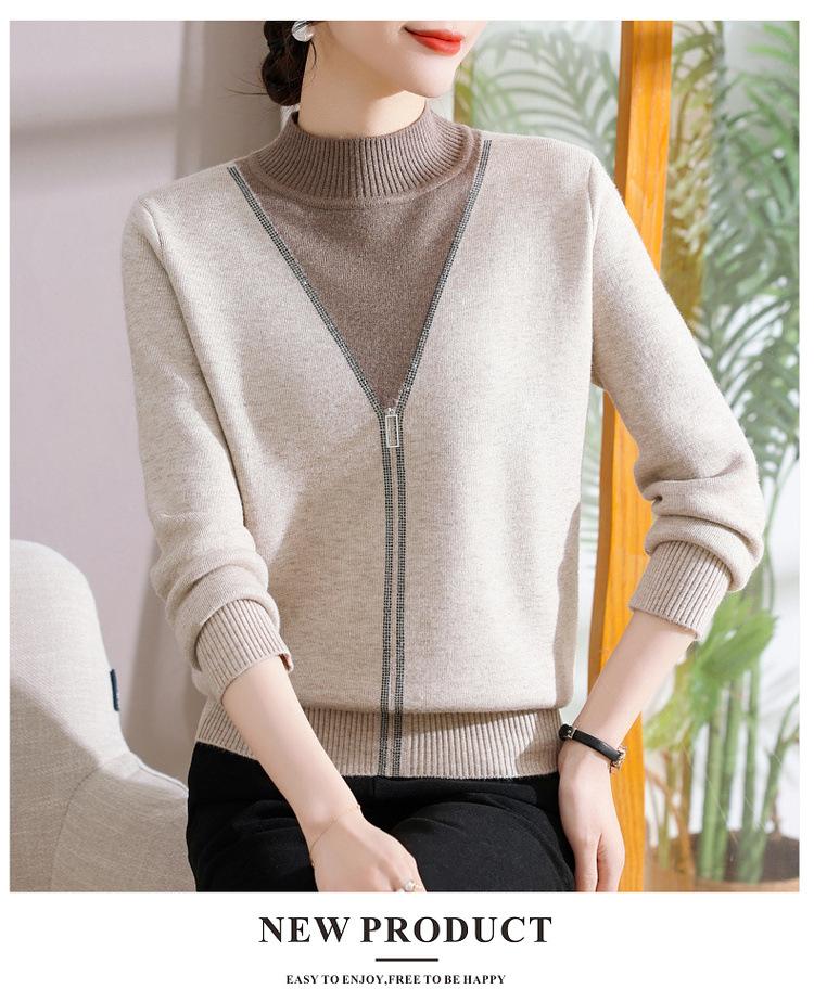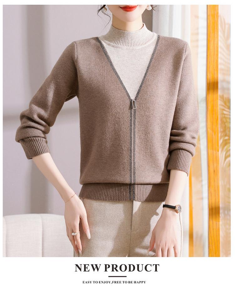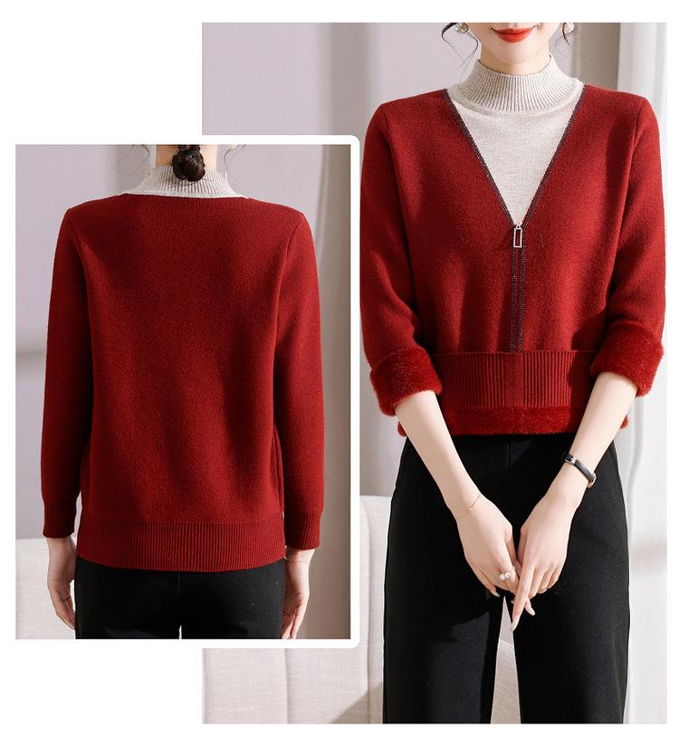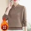Suéter de Otoño e Invierno para Mamá Moda Femenina Top con Cuello Cheongsam para Mujeres de Mediana Edad y Mayores Otoño Primavera Más Grueso Cálido Capa Interior Camiseta Base