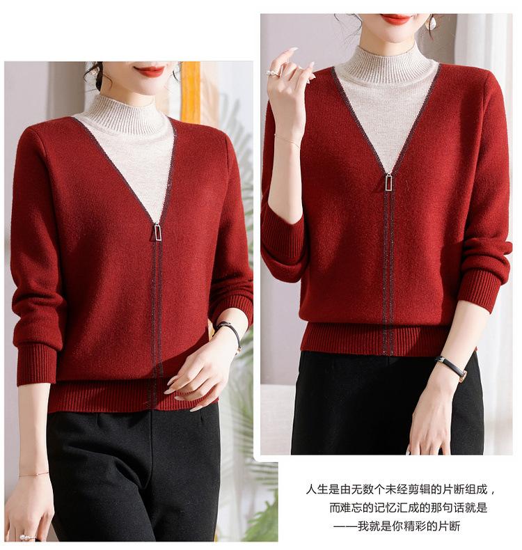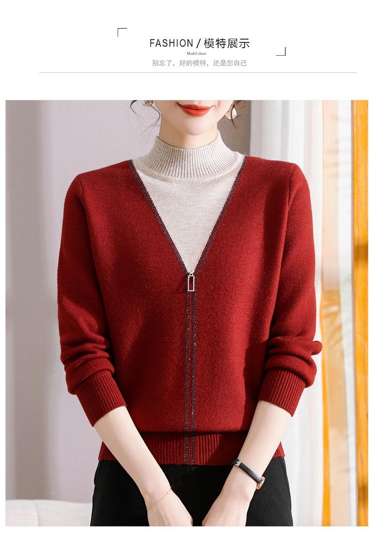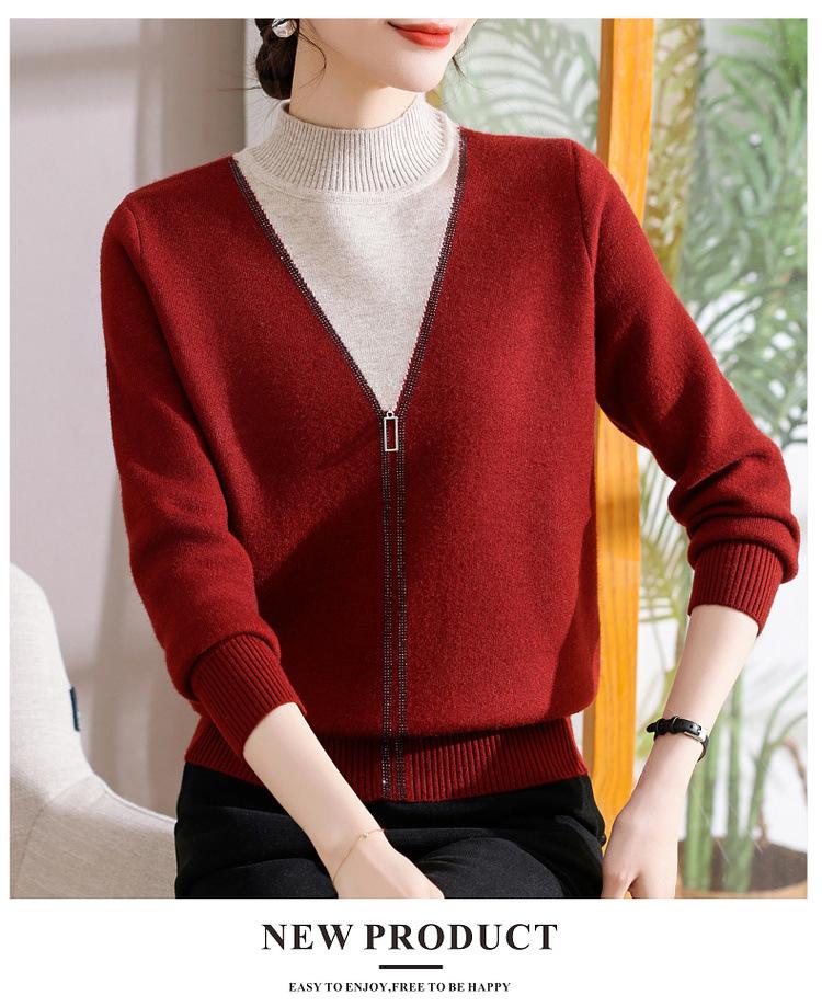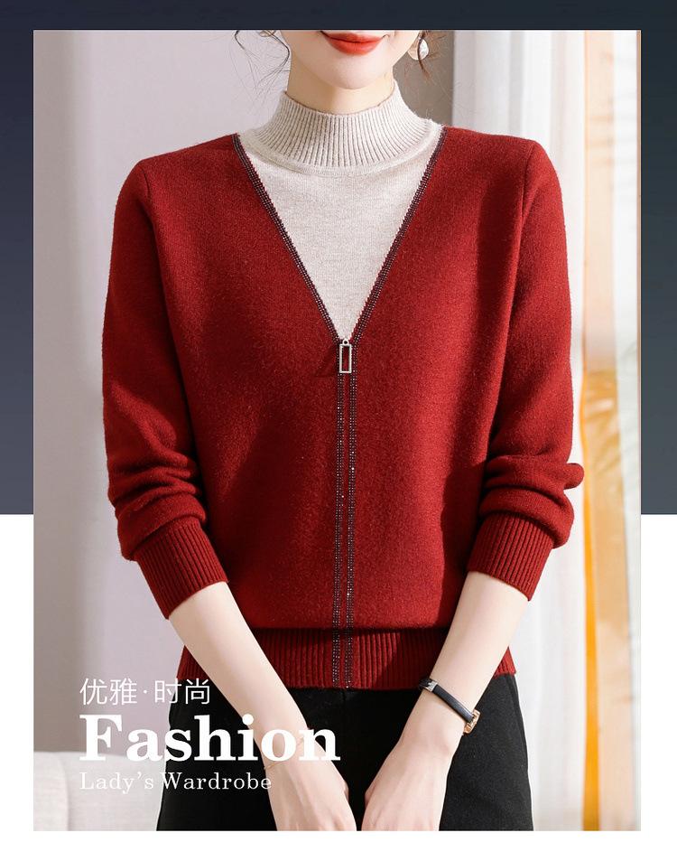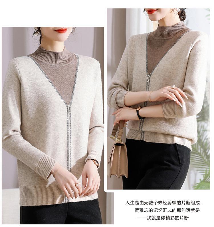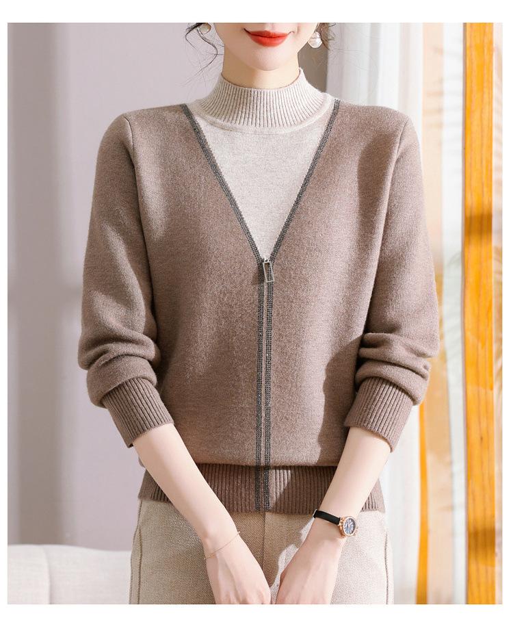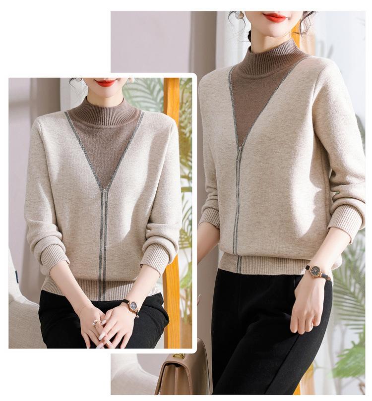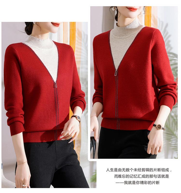 Suéter de Otoño e Invierno para Mamá Moda Femenina Top con Cuello Cheongsam para Mujeres de Mediana Edad y Mayores Otoño Primavera Más Grueso Cálido Capa Interior Camiseta Base