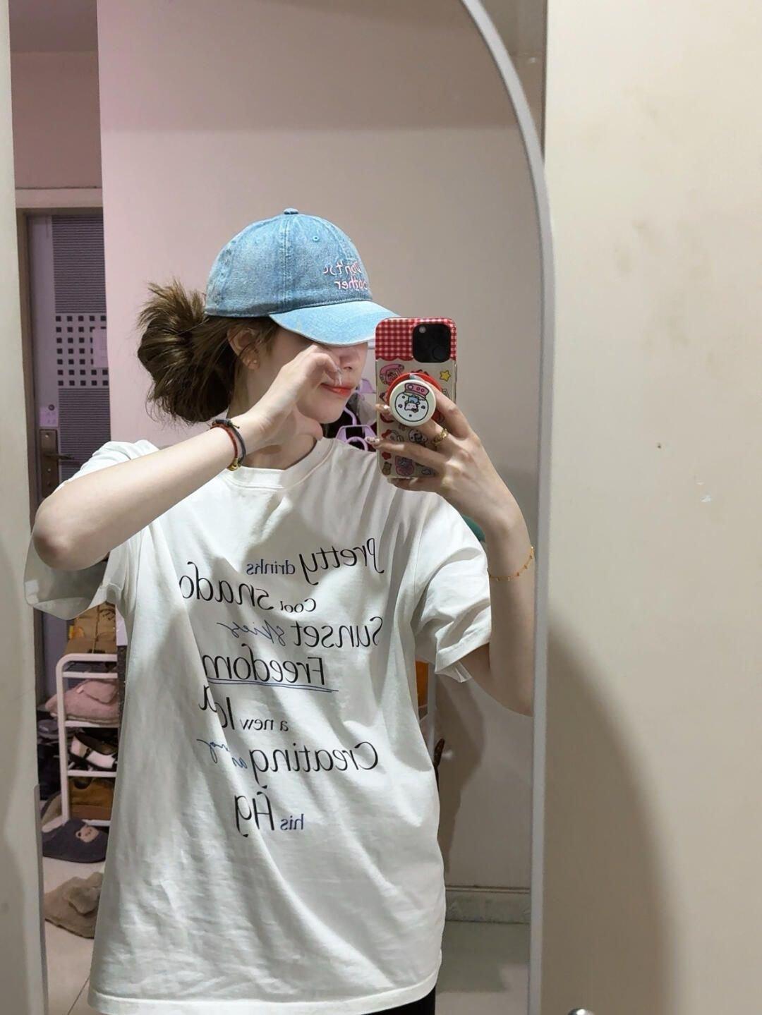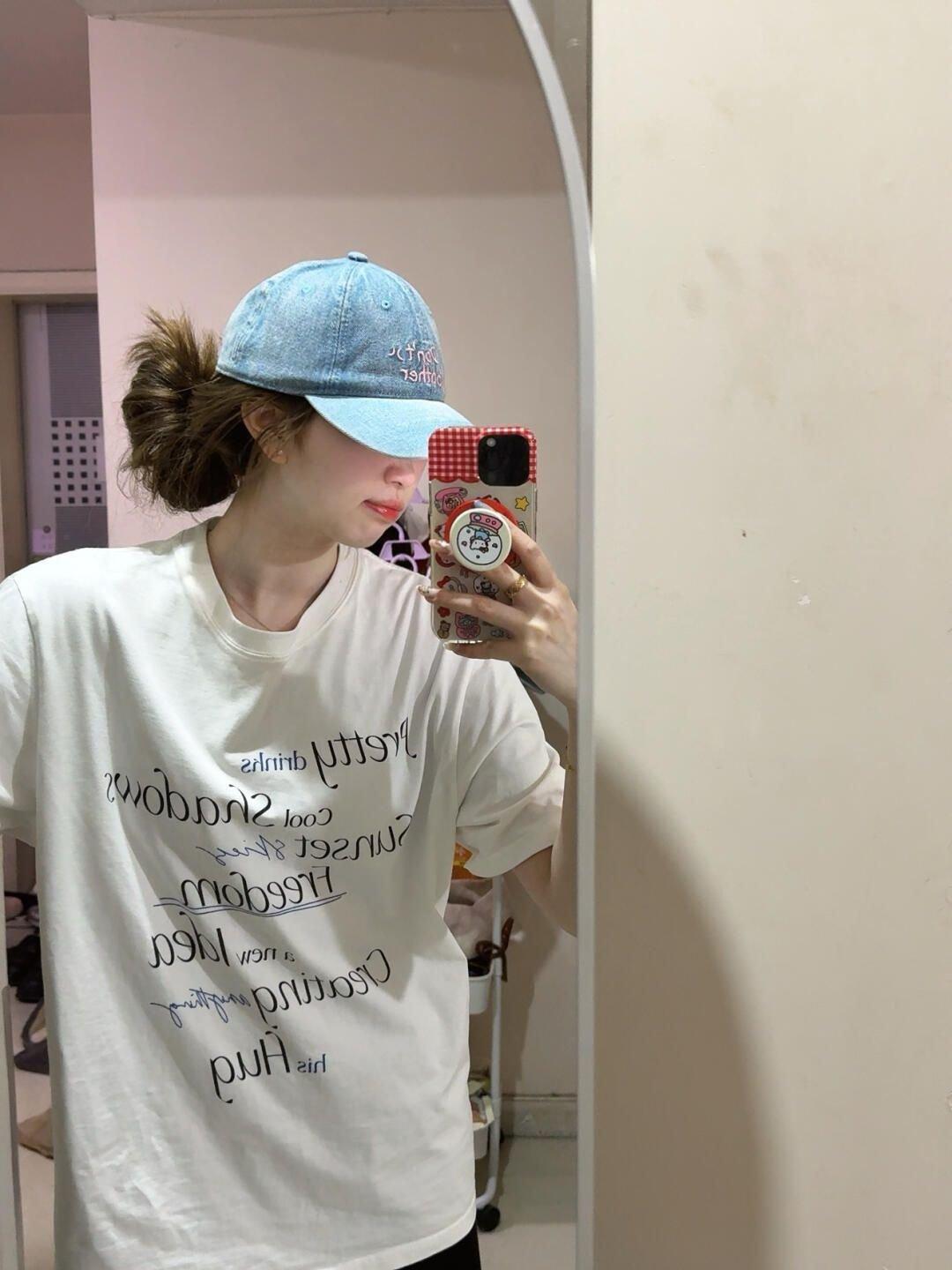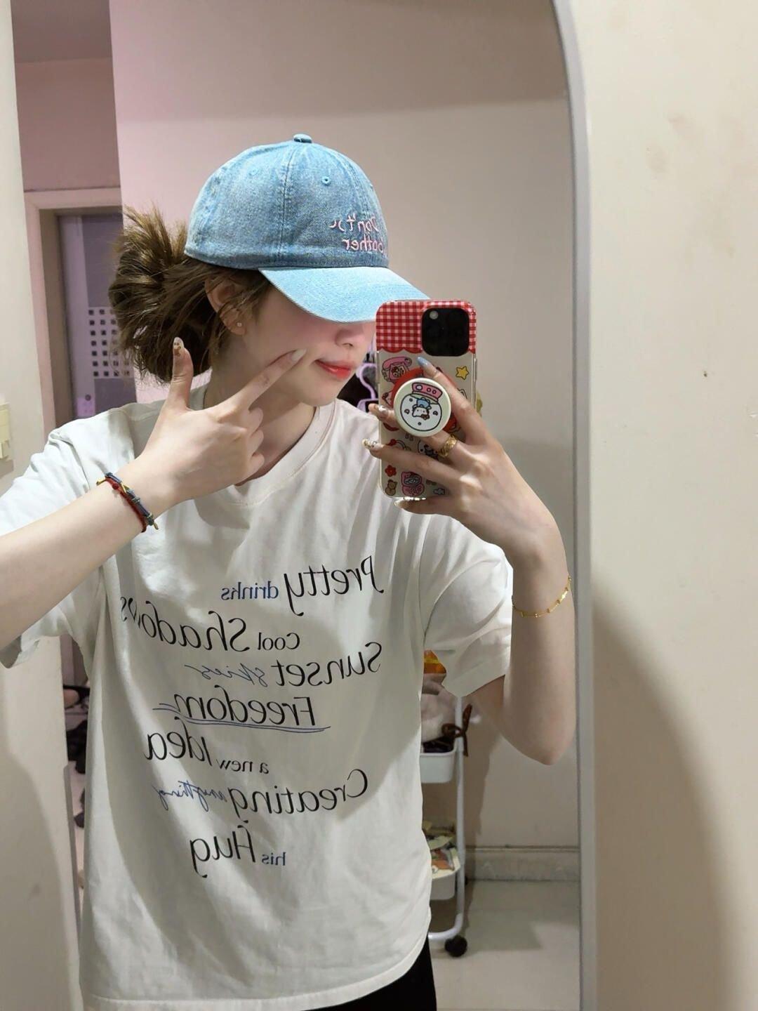 Camiseta de Primavera y Verano Marca de Moda Lazy Nueva Camiseta Estampada Jersey para Mujer Algodón Manga Corta Moda
