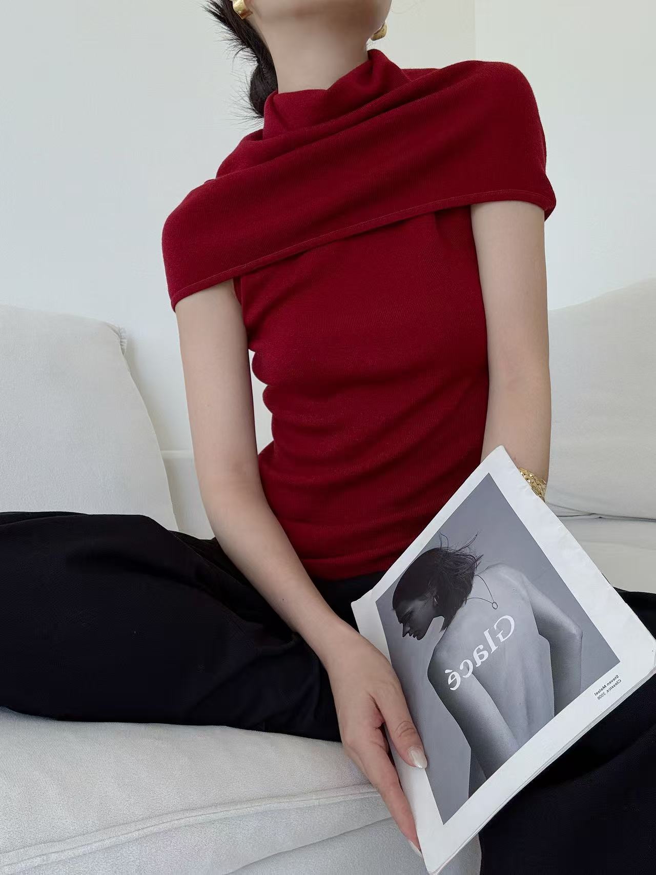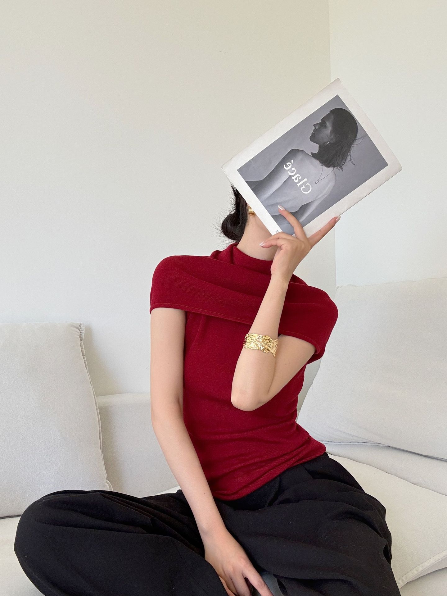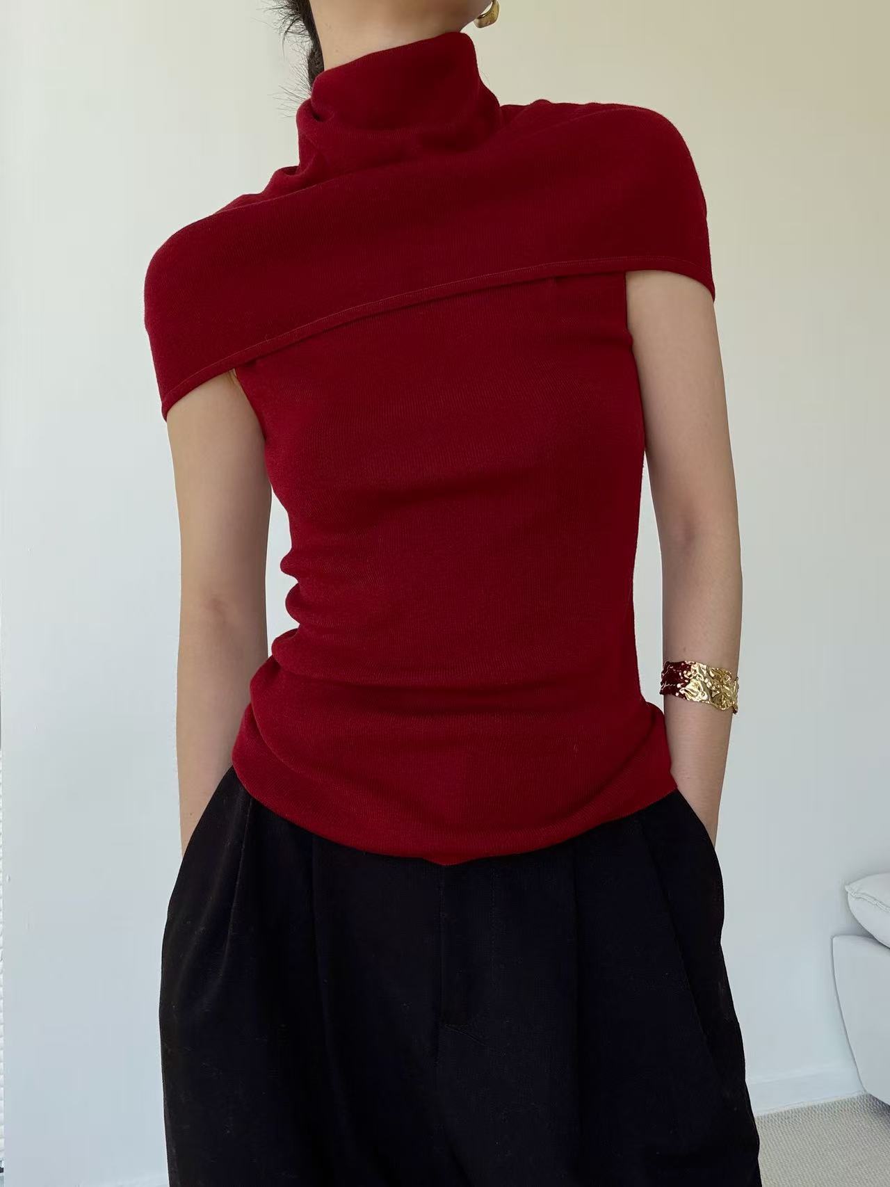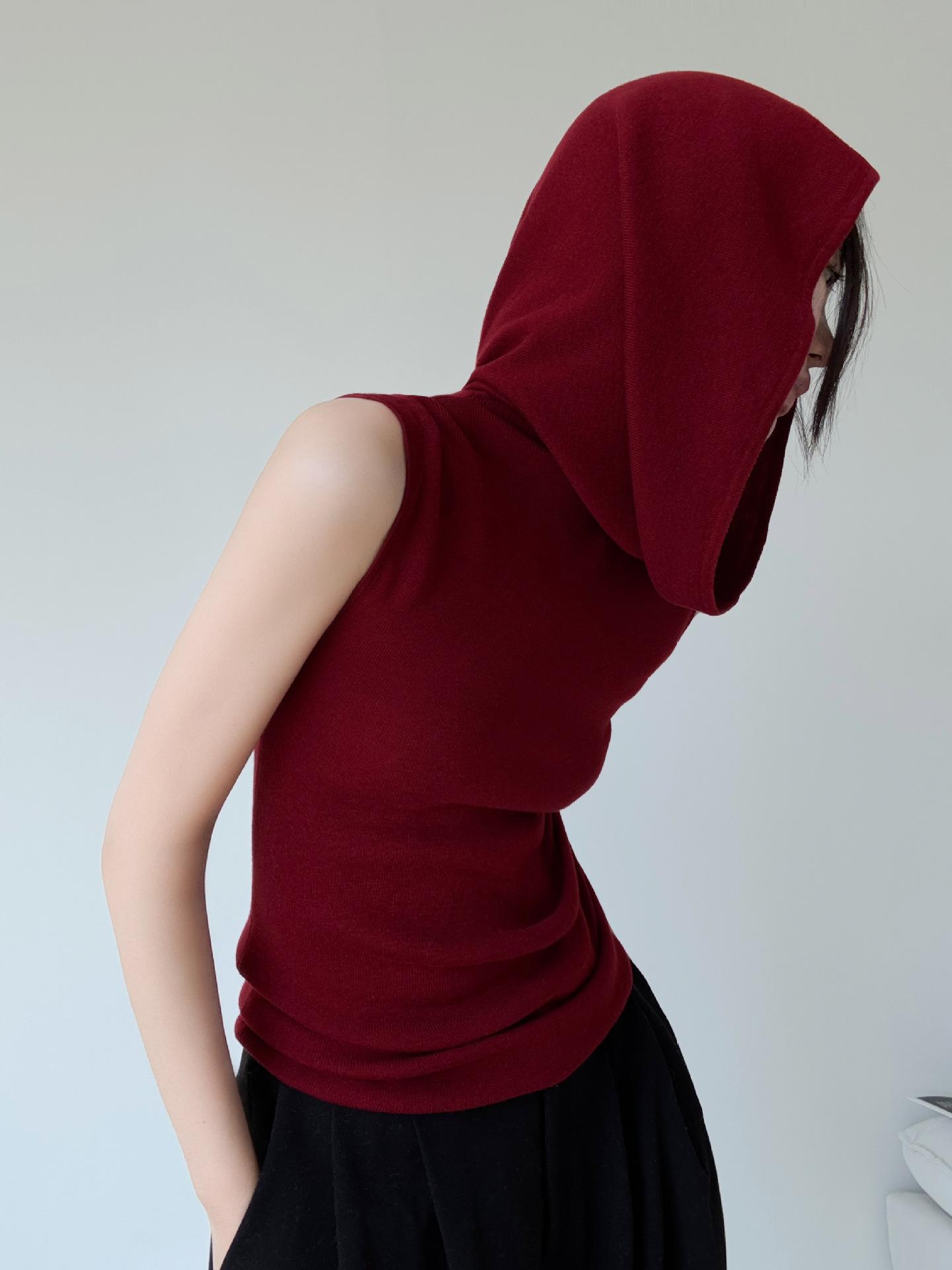 2025 Early Autumn New Hooded Cowl Neck Sleeveless Wool Knit Vest Women Slim Fit Inner Top Base Shirt