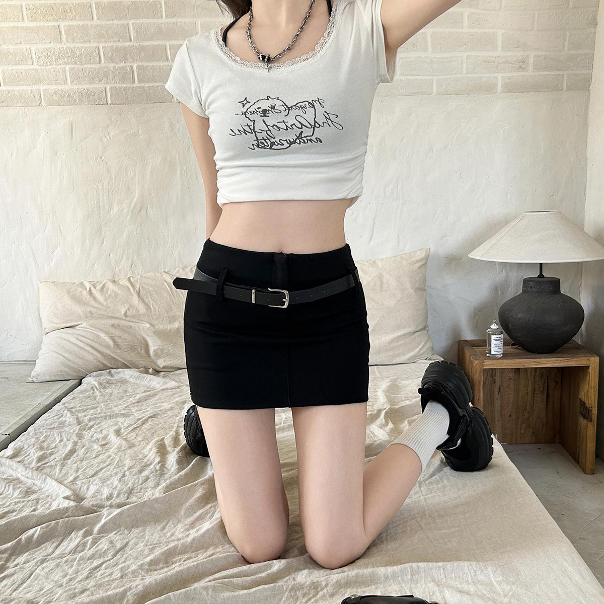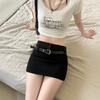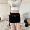Falda Negra Ajustada a las Caderas para Mujer, Falda Línea A de Cintura Alta con Aspecto Adelgazante, Nueva de Verano 2024 Falda Corta Sexy Americana Antiexposición