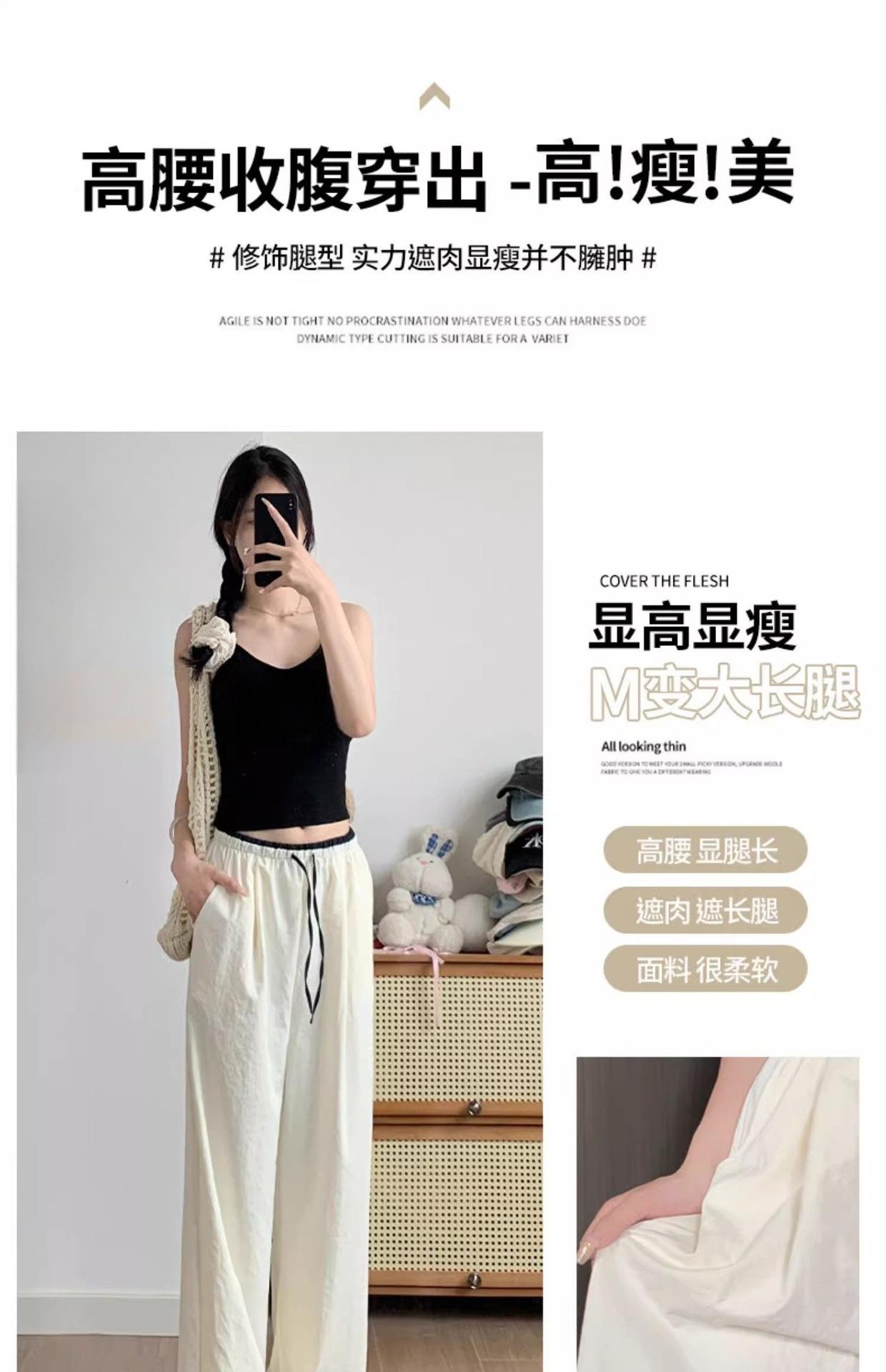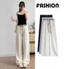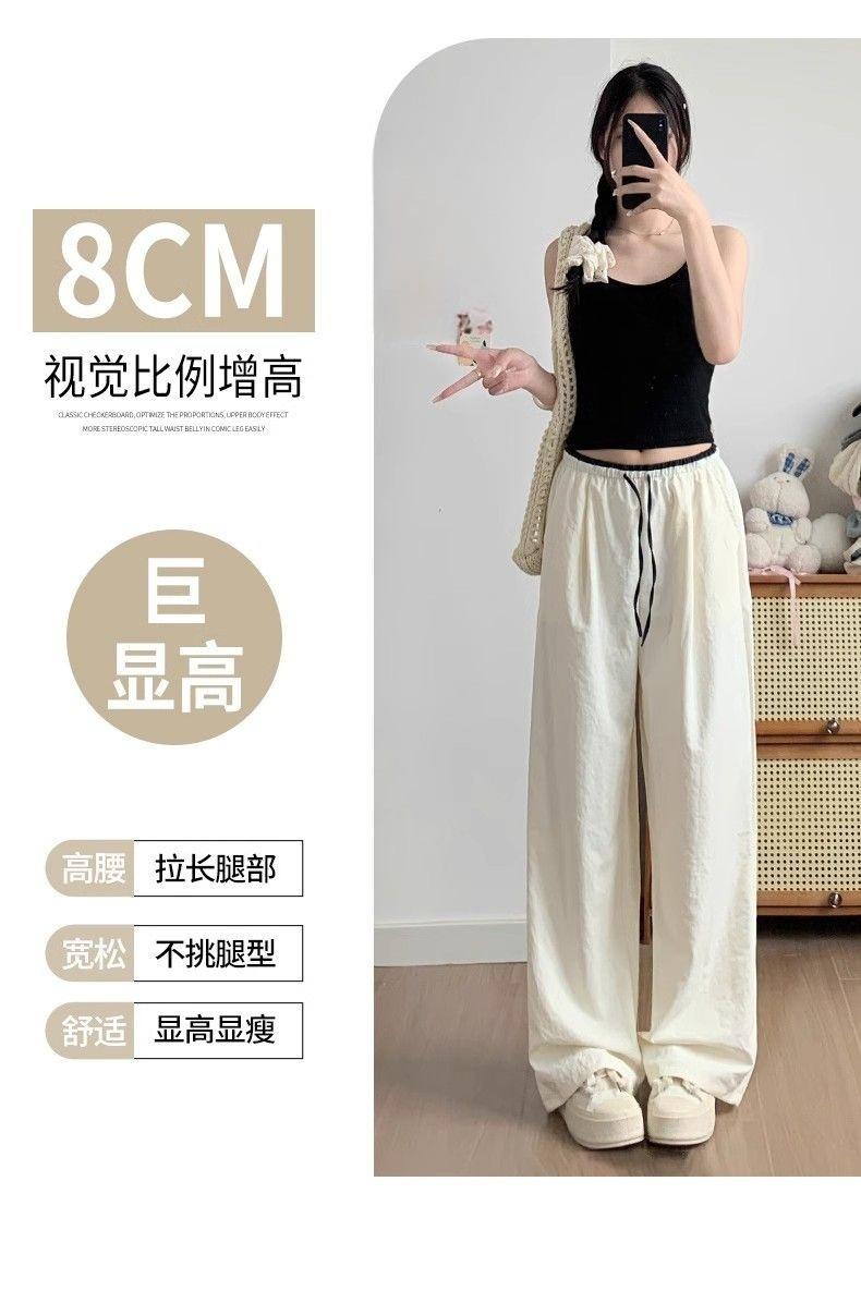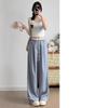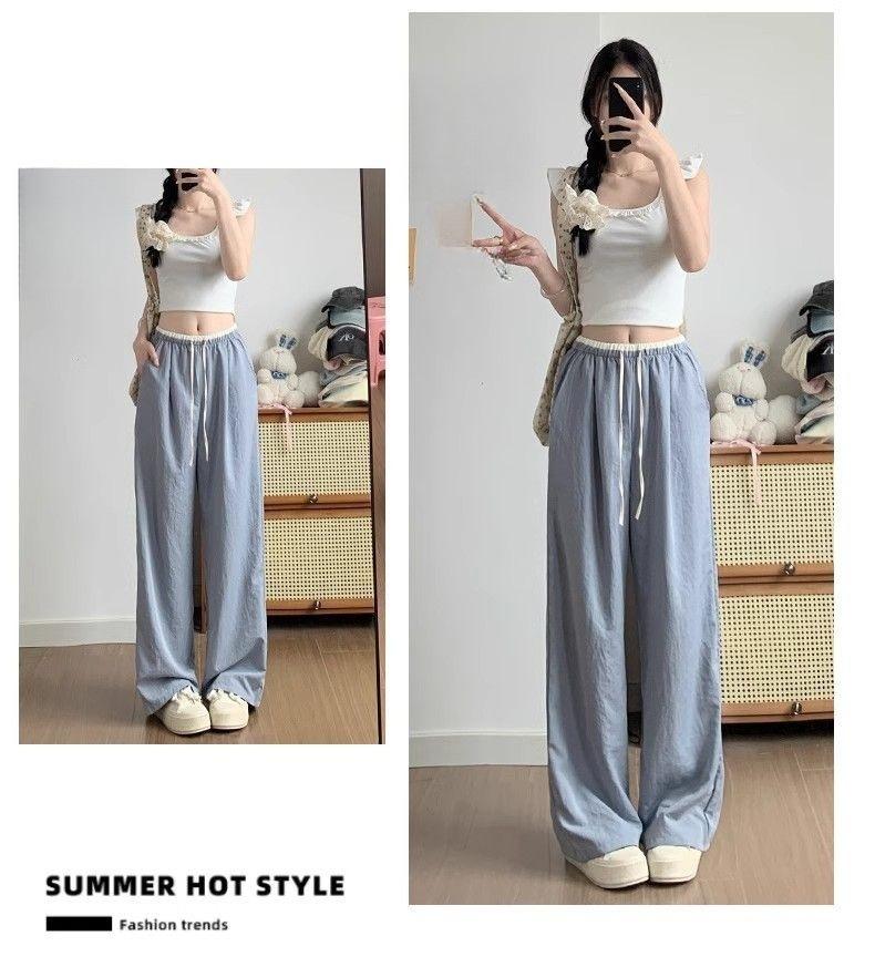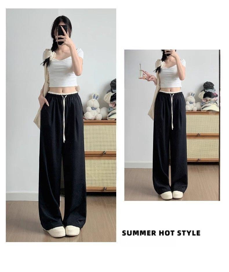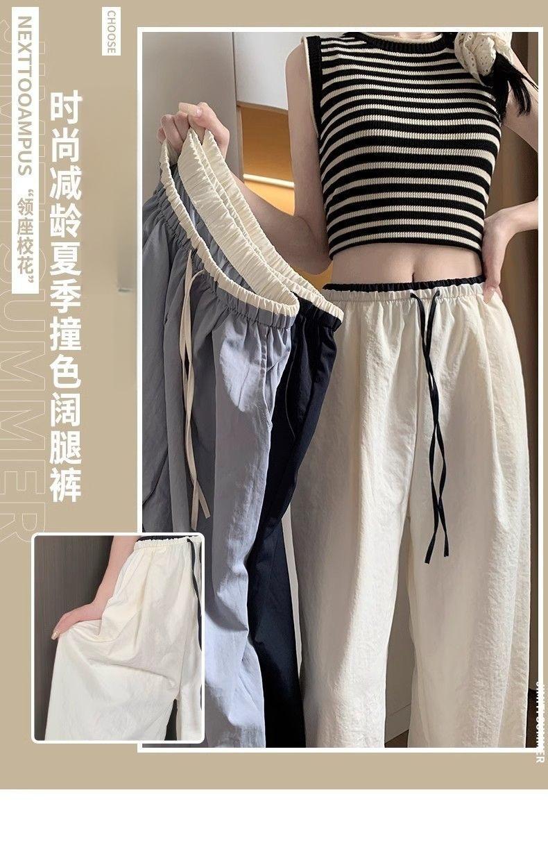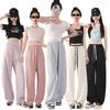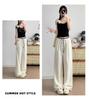 2025 albaricoque Cintura Contraste Seda de Hielo Pantalones Pierna Ancha para Mujer Verano Nuevo Textura Fina Pantalones Casuales Rectos