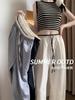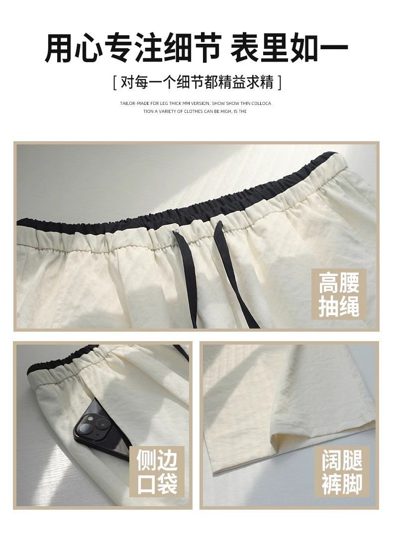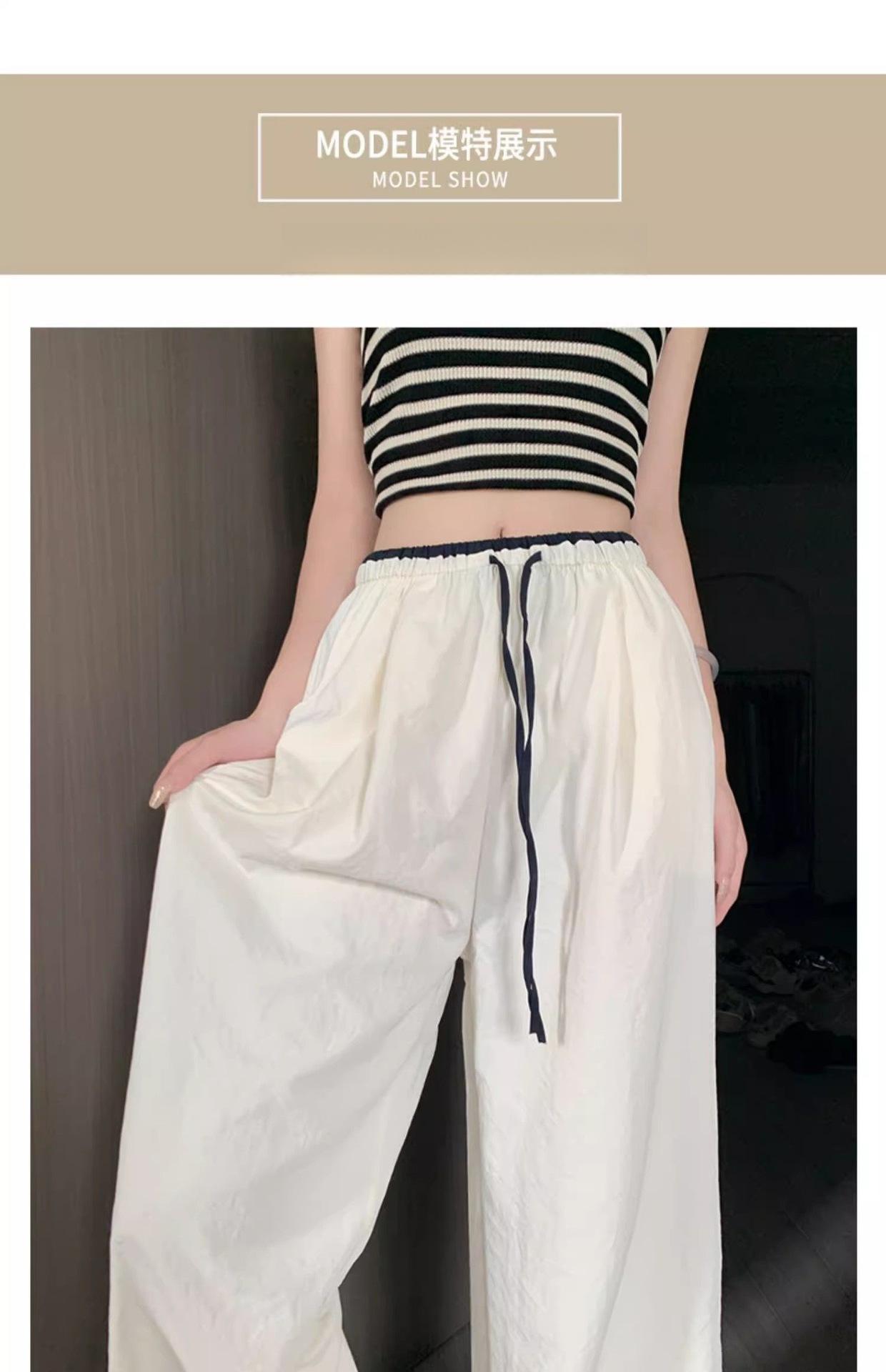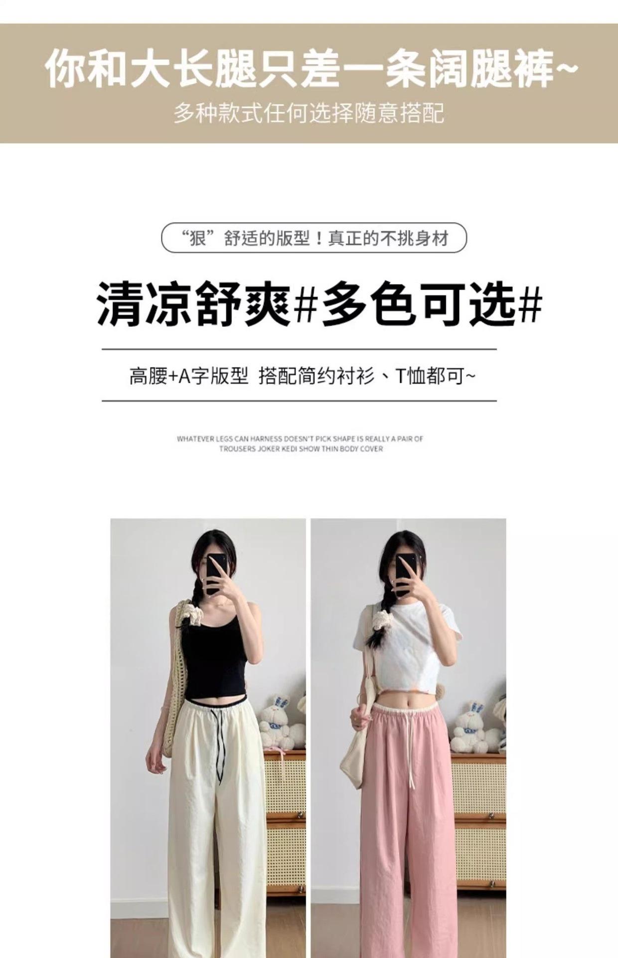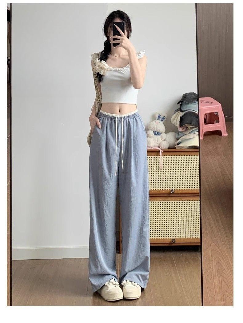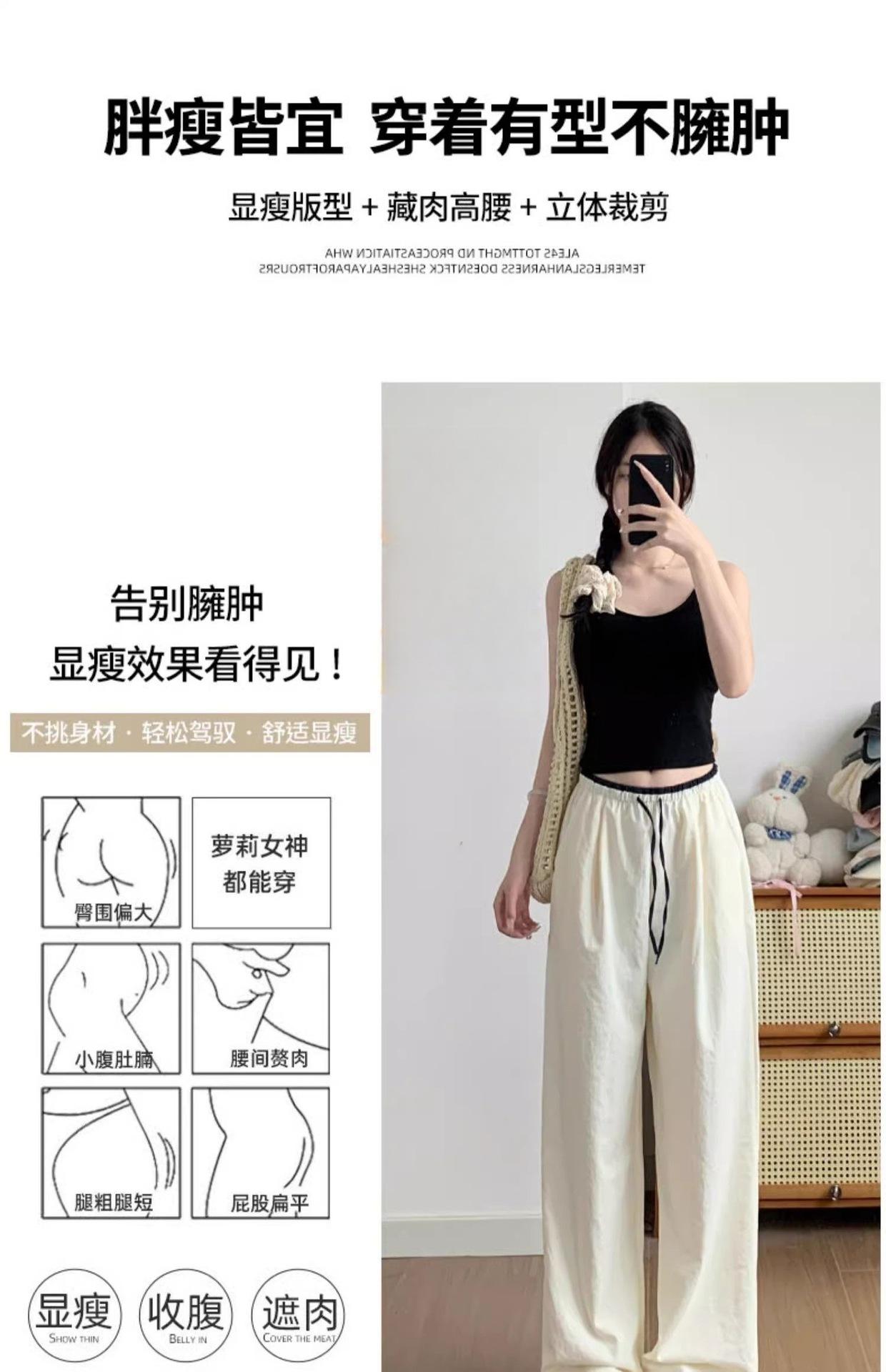 2025 albaricoque Cintura Contraste Seda de Hielo Pantalones Pierna Ancha para Mujer Verano Nuevo Textura Fina Pantalones Casuales Rectos