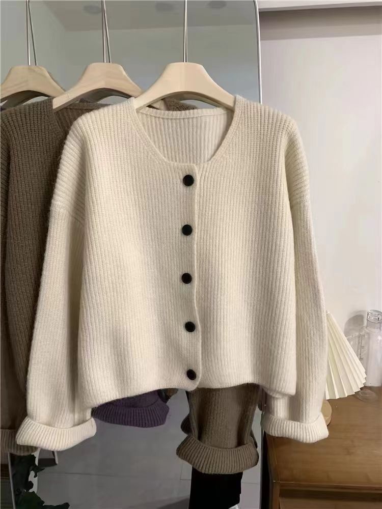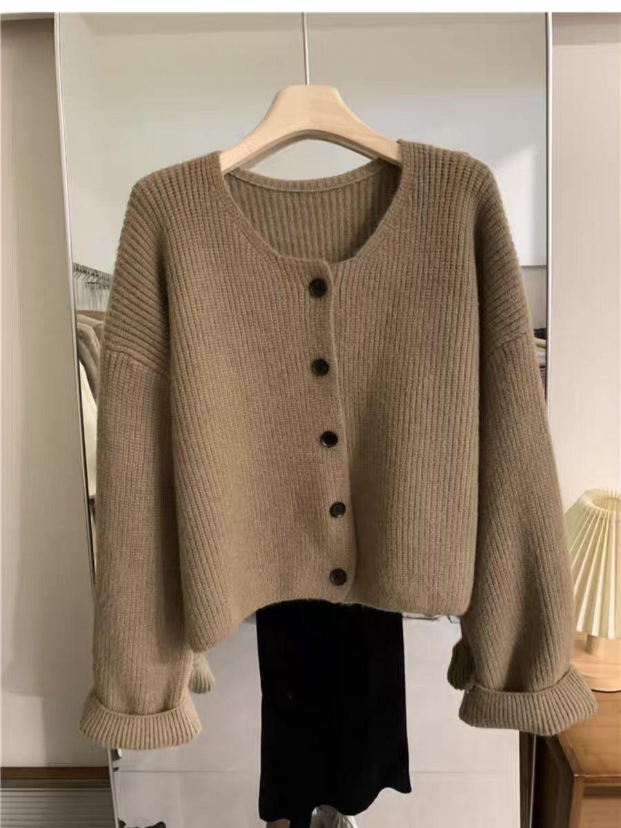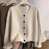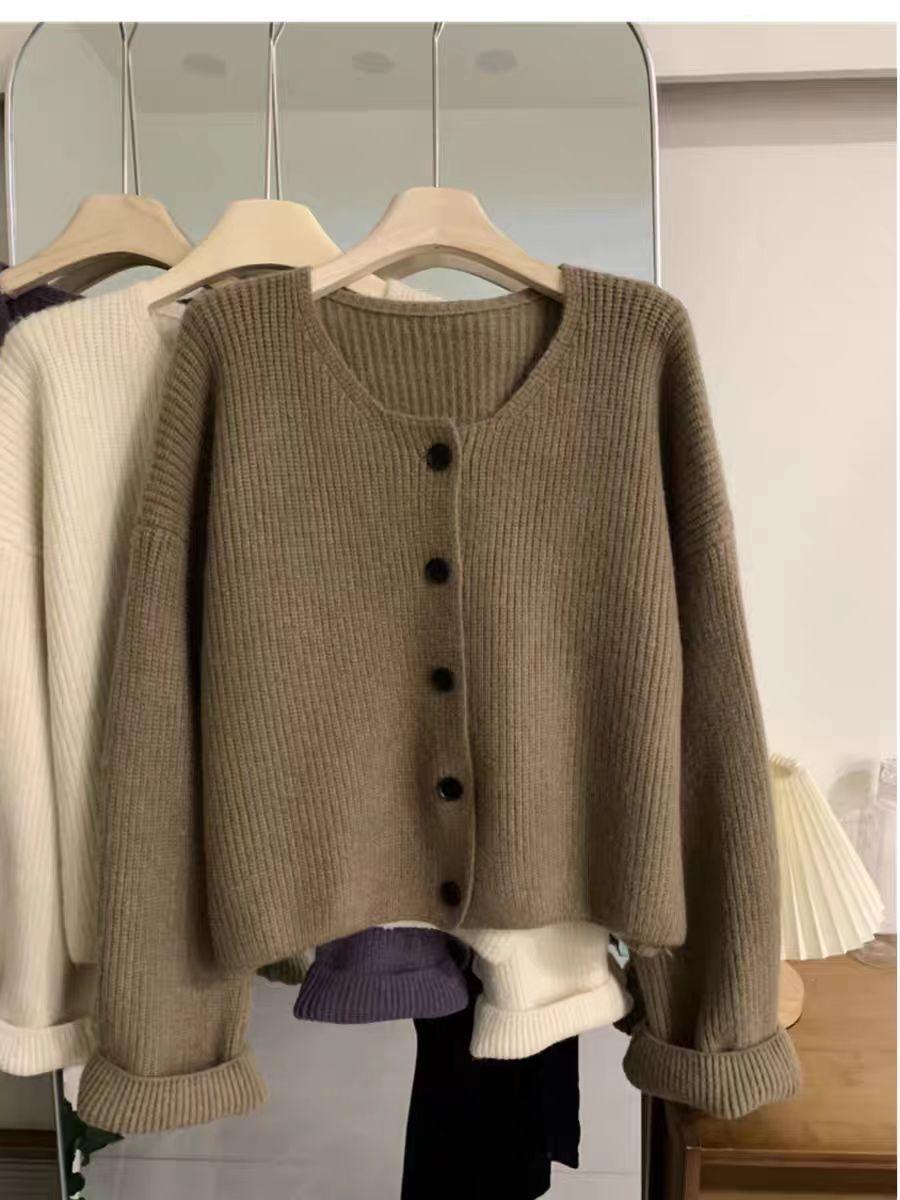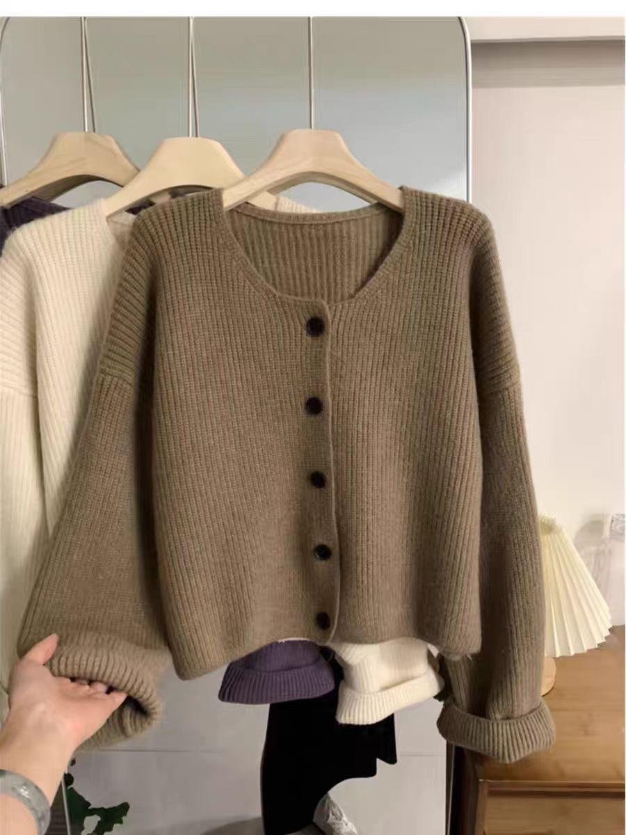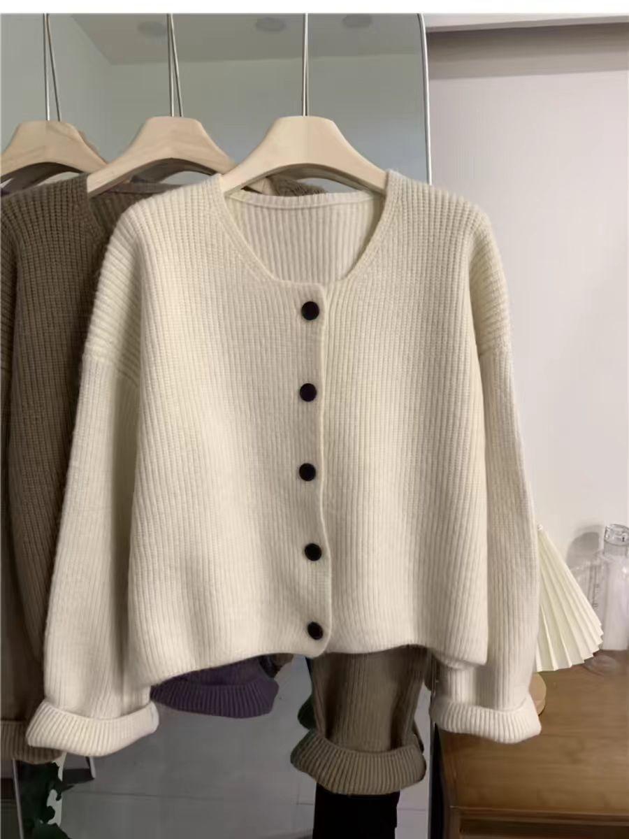 Suéter Cárdigan de Cuello Redondo para Mujer Tejido 2025 Otoño/Invierno Nuevo Estilo Coreano Estilo Lazy Holgado Manga Larga Top Exterior para Mujer