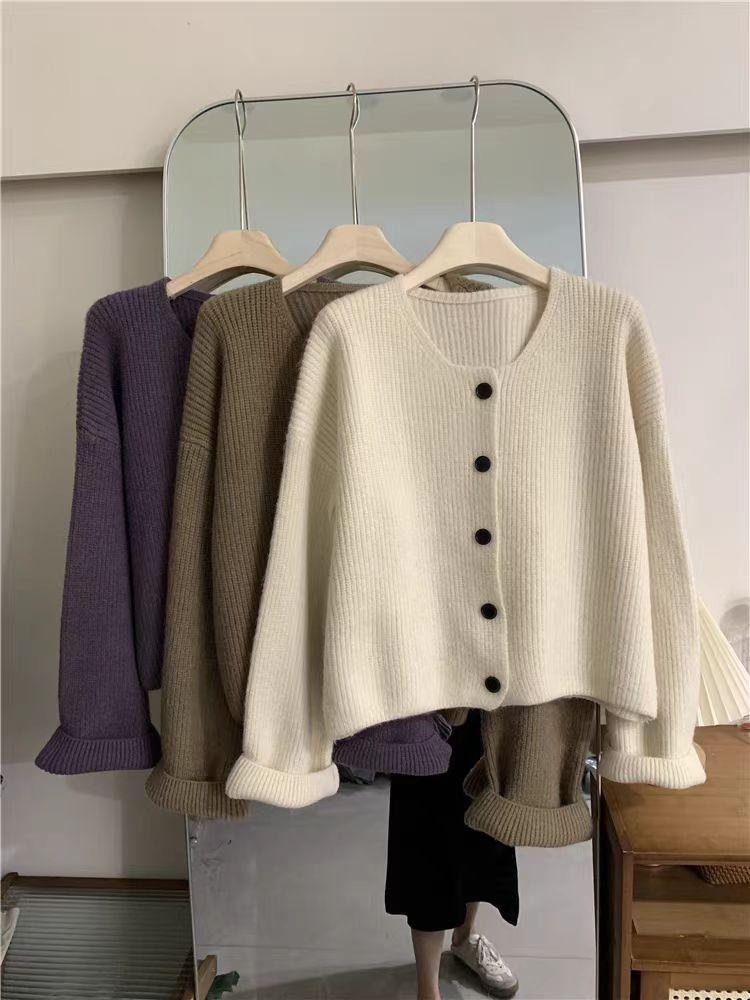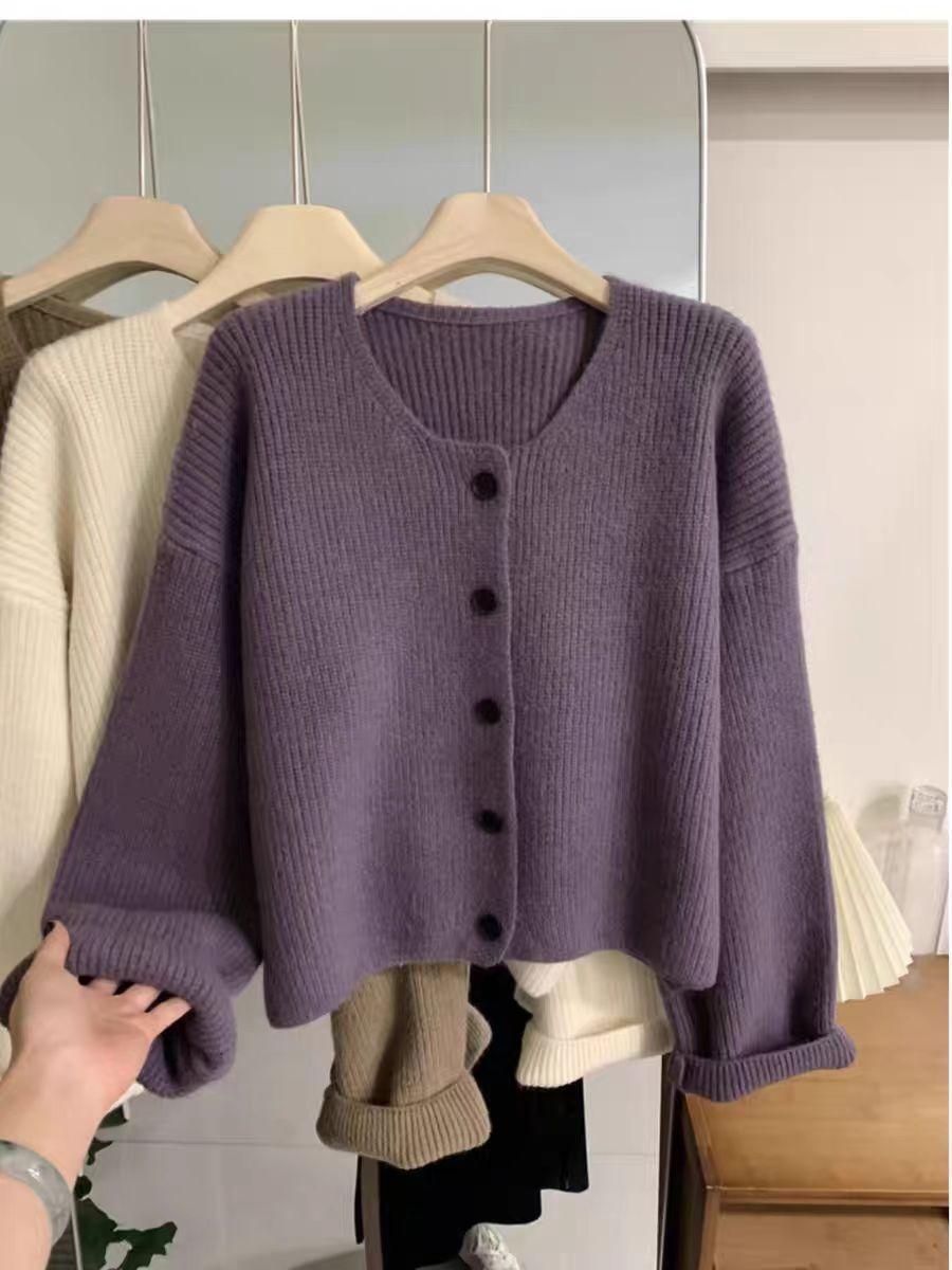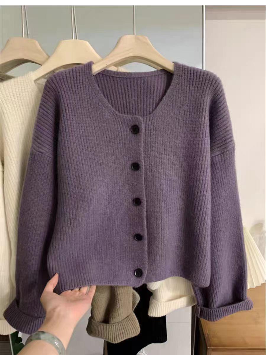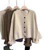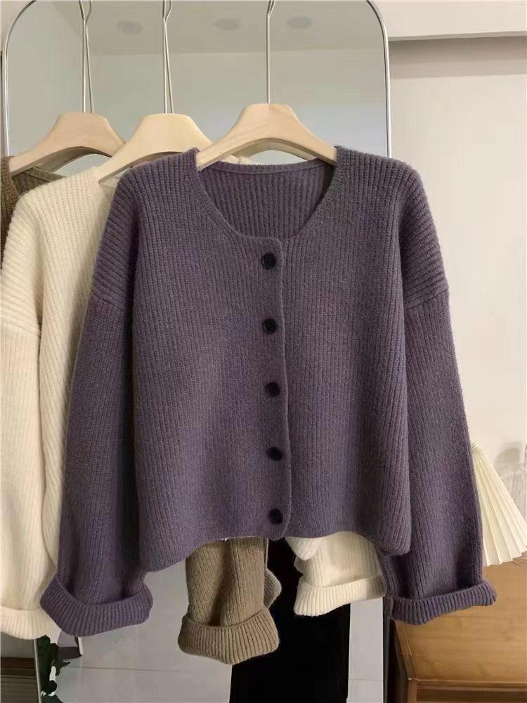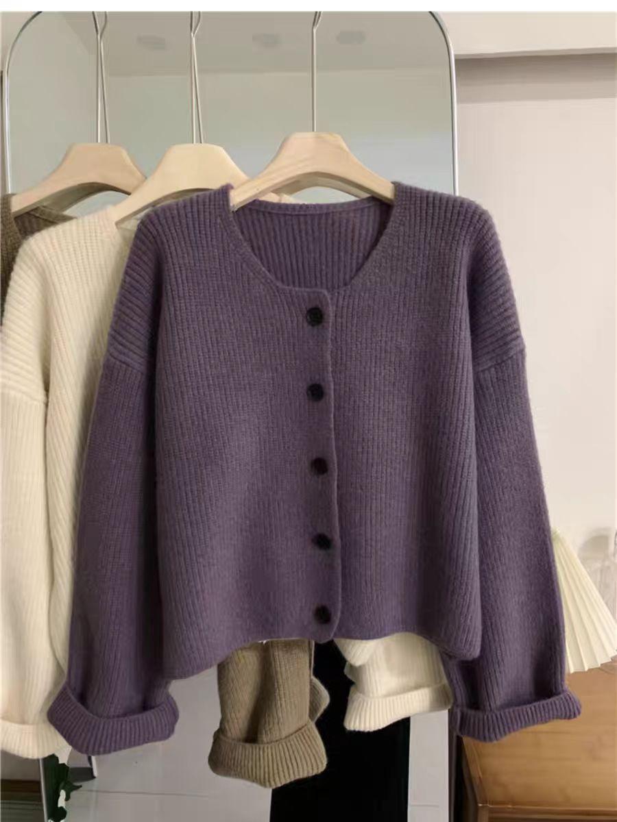 Suéter Cárdigan de Cuello Redondo para Mujer Tejido 2025 Otoño/Invierno Nuevo Estilo Coreano Estilo Lazy Holgado Manga Larga Top Exterior para Mujer