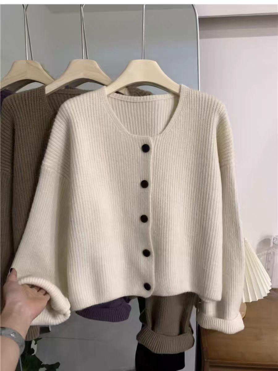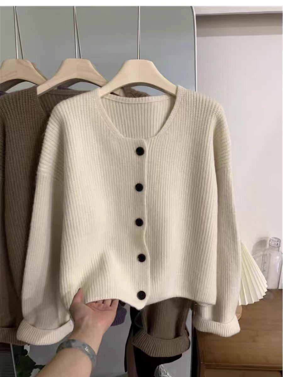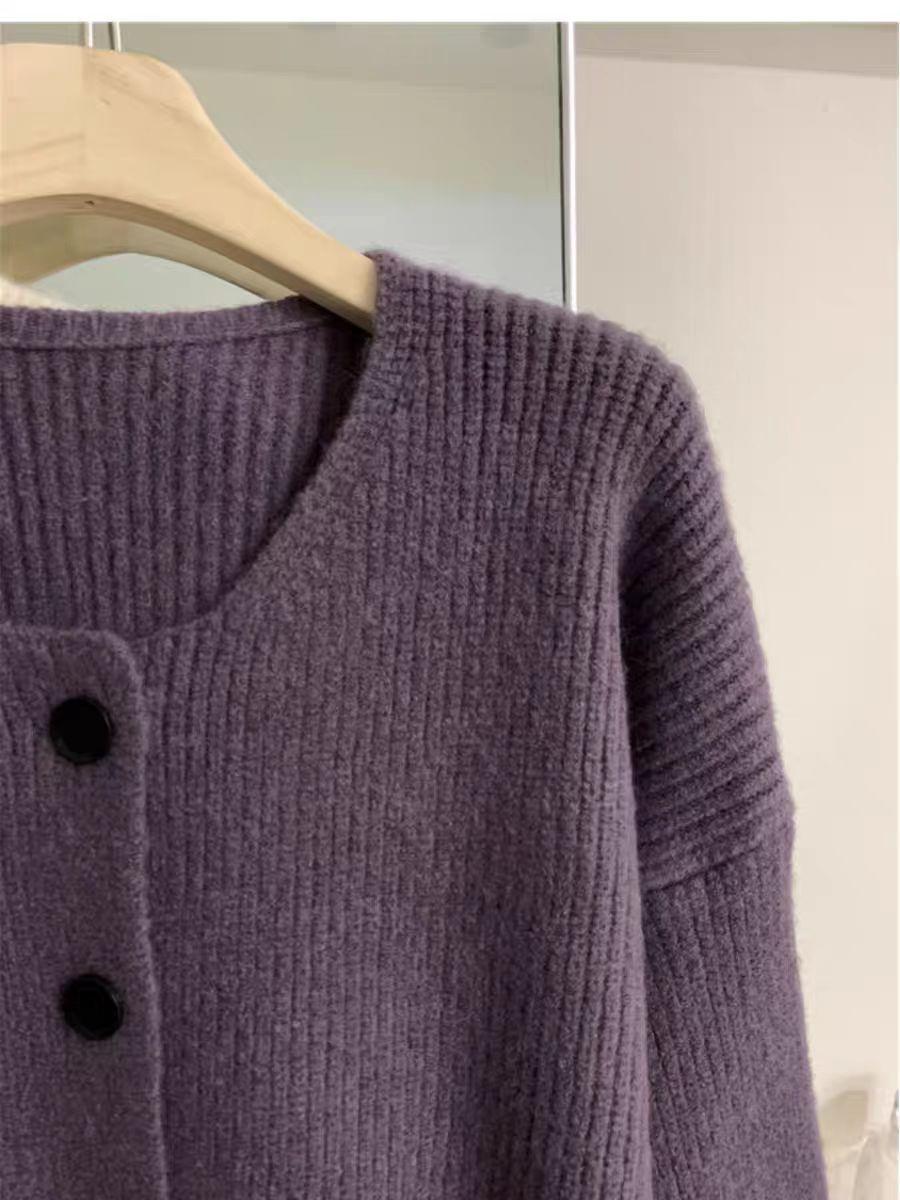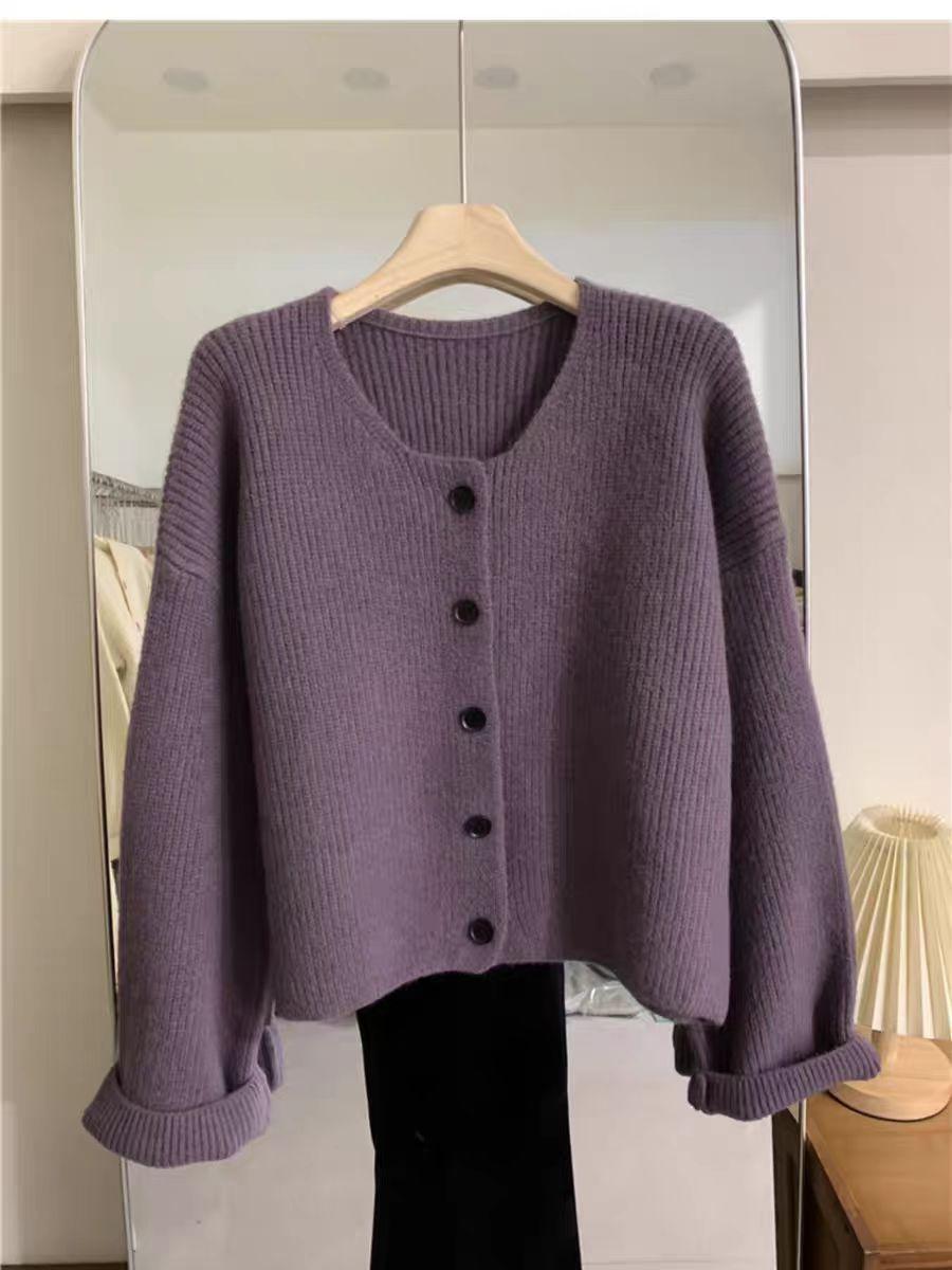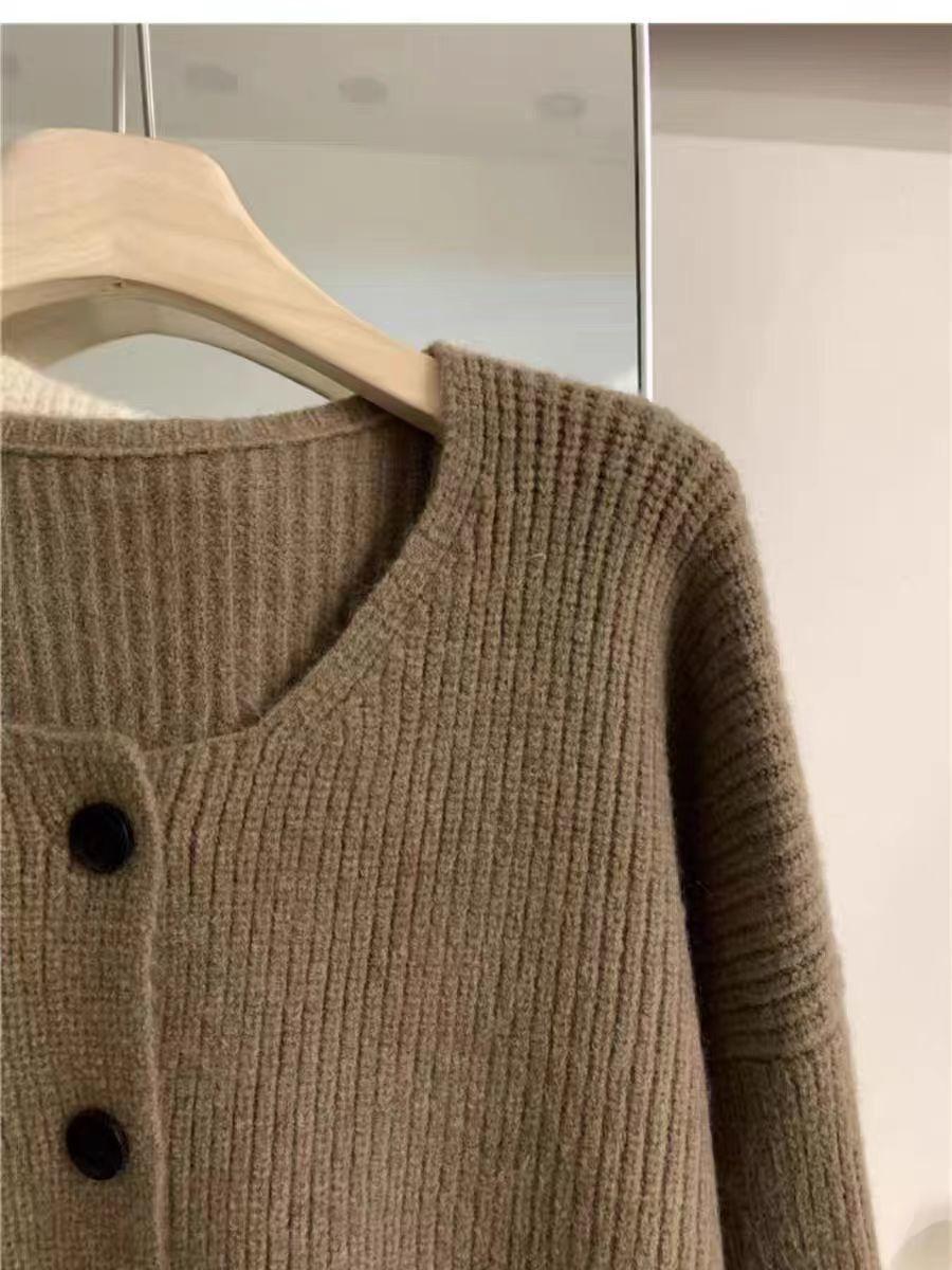 Suéter Cárdigan de Cuello Redondo para Mujer Tejido 2025 Otoño/Invierno Nuevo Estilo Coreano Estilo Lazy Holgado Manga Larga Top Exterior para Mujer