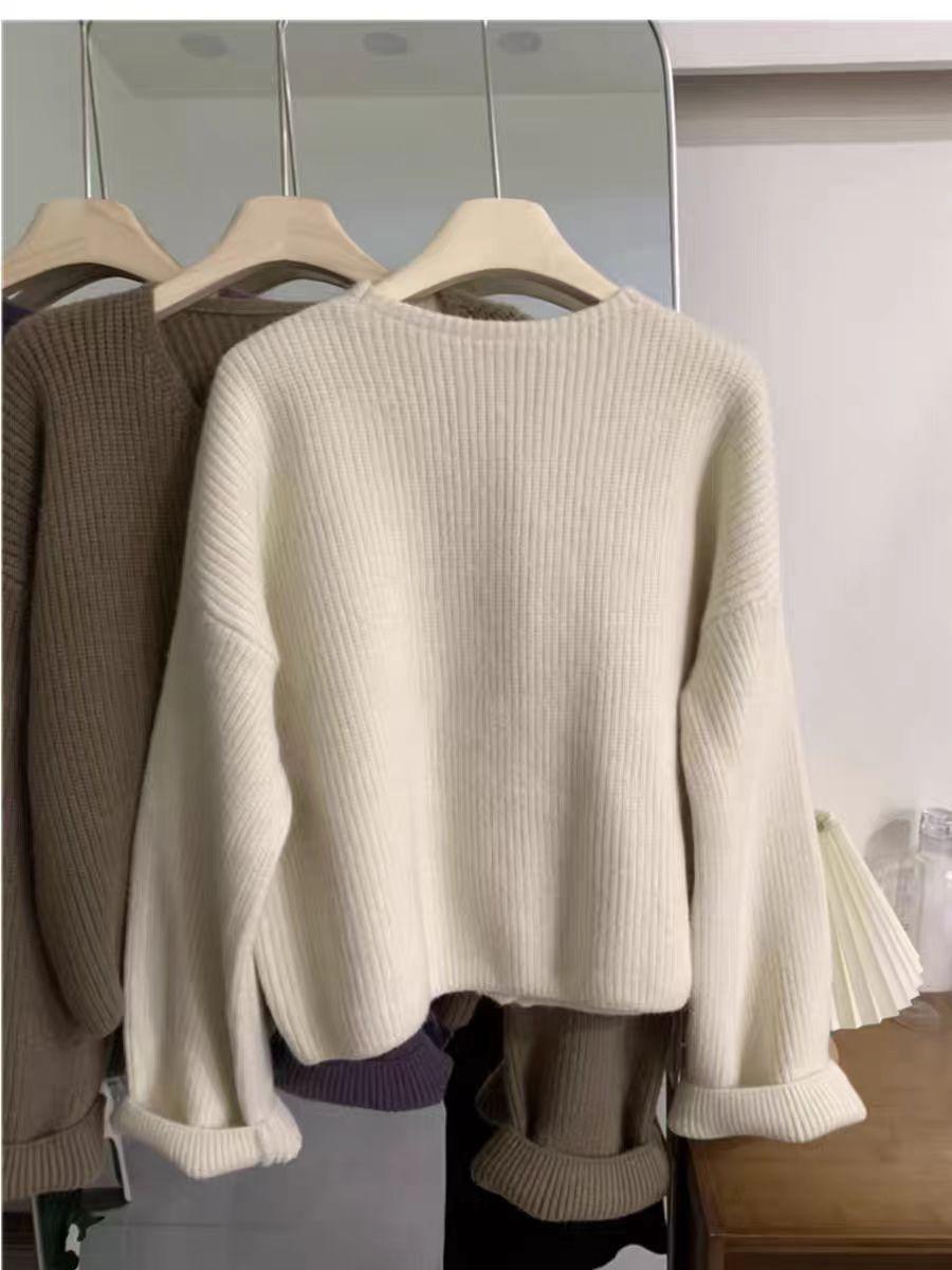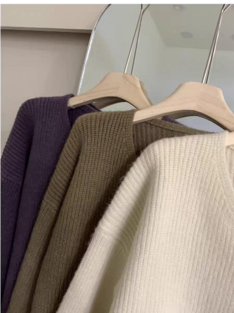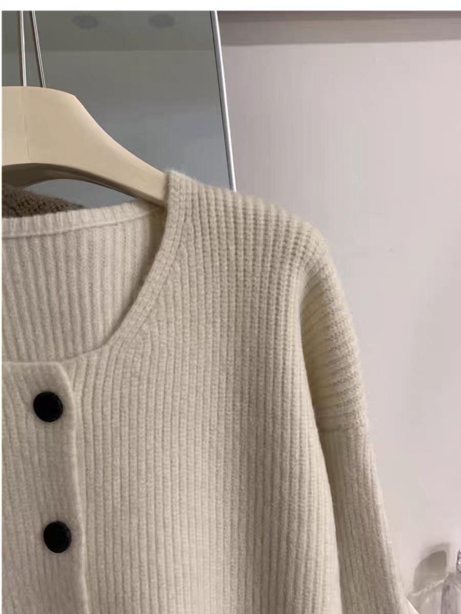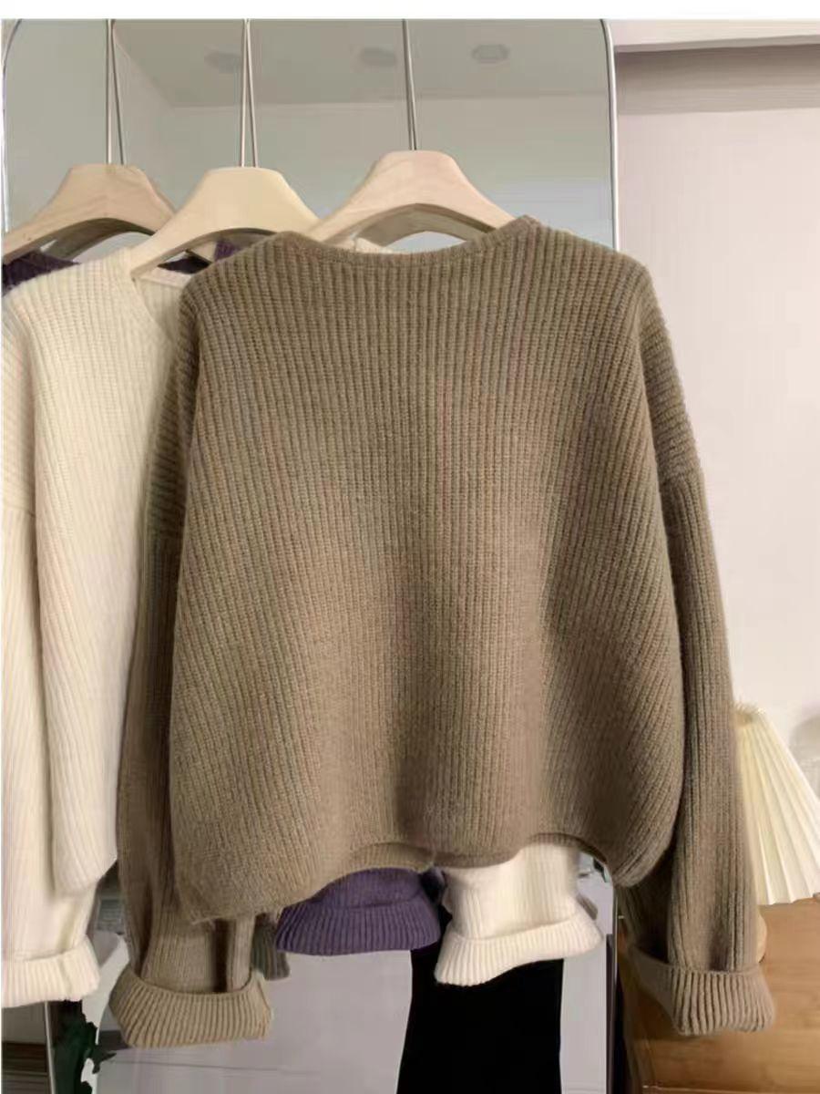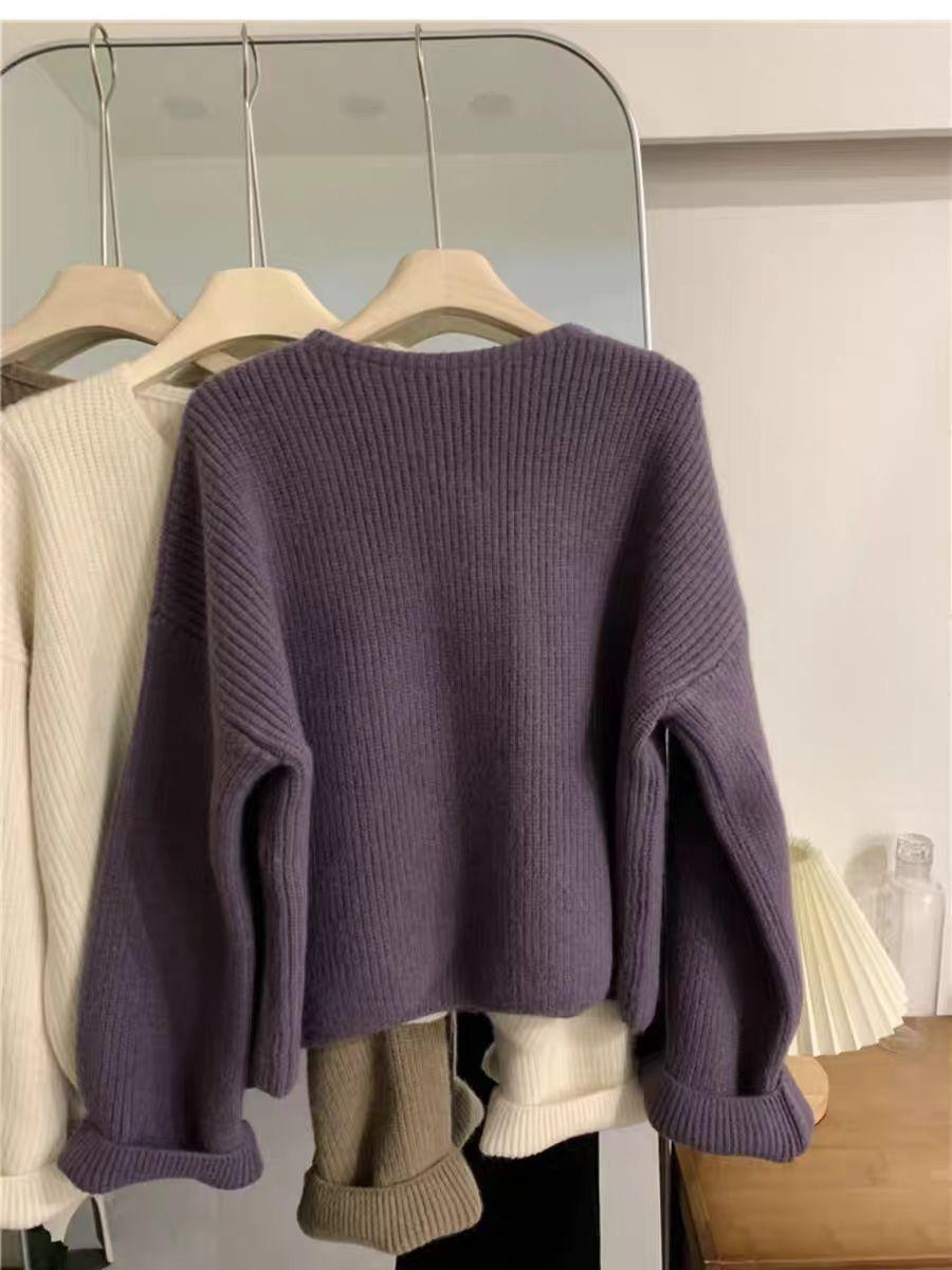 Suéter Cárdigan de Cuello Redondo para Mujer Tejido 2025 Otoño/Invierno Nuevo Estilo Coreano Estilo Lazy Holgado Manga Larga Top Exterior para Mujer