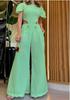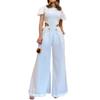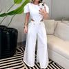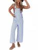 2024 Verano Moda europea y americana rasgado botón cremallera cintura hueco color sólido suelto pierna ancha mameluco