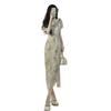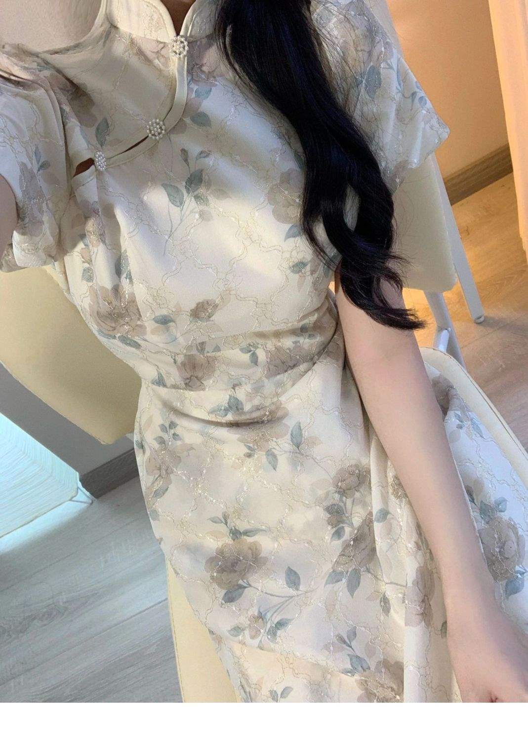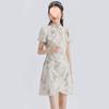 Nuevo Cheongsam Mejorado de Estilo Chino para Niña Vestido Nuevo Floral de Manga Abullonada Verano Mujeres