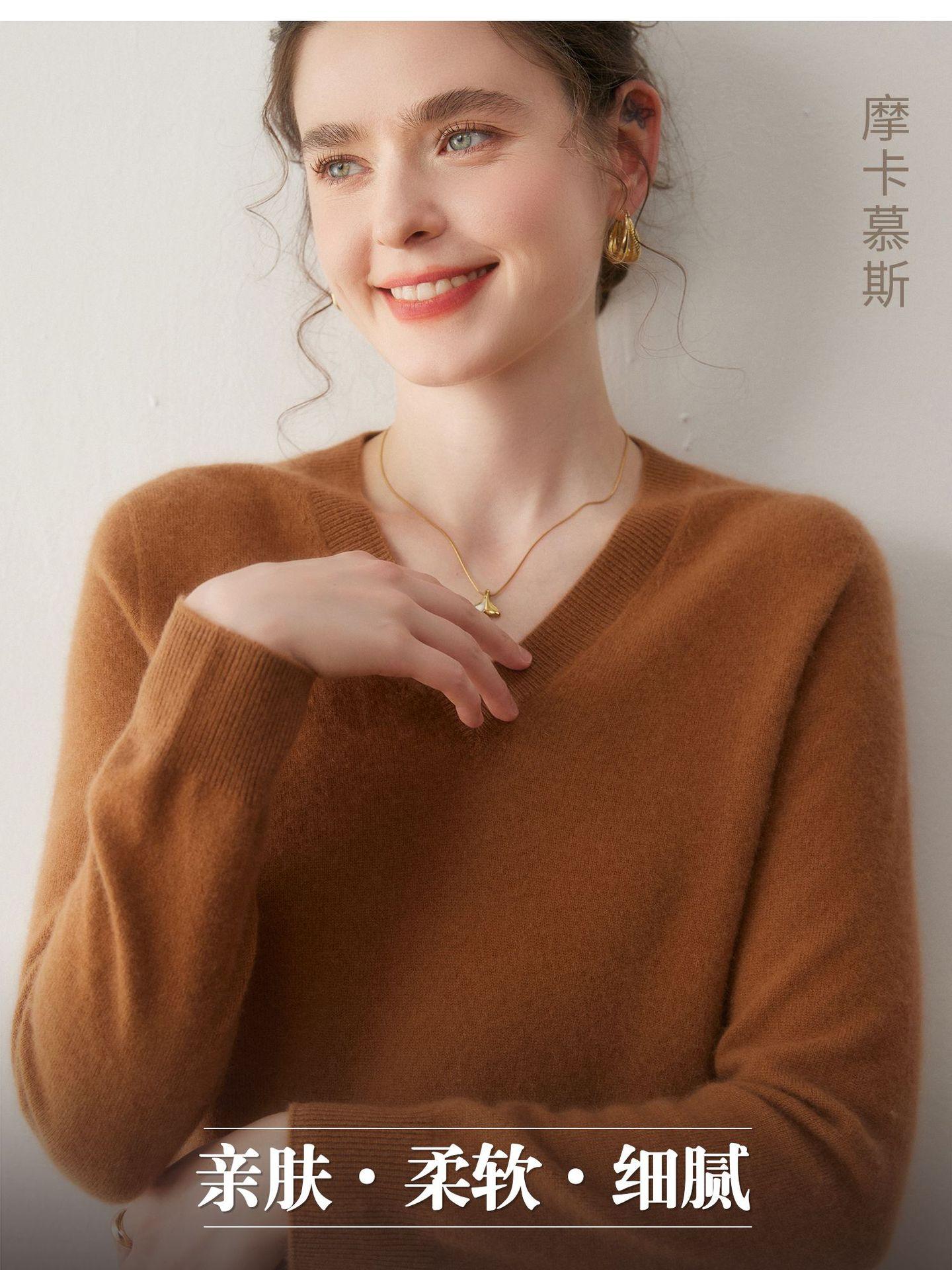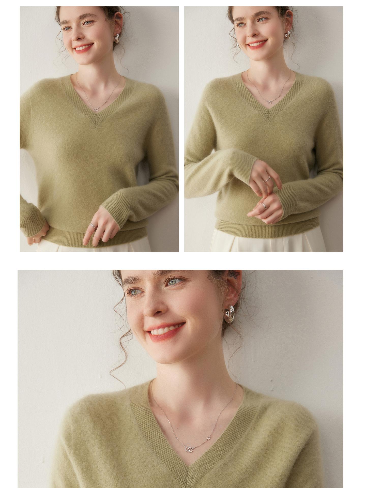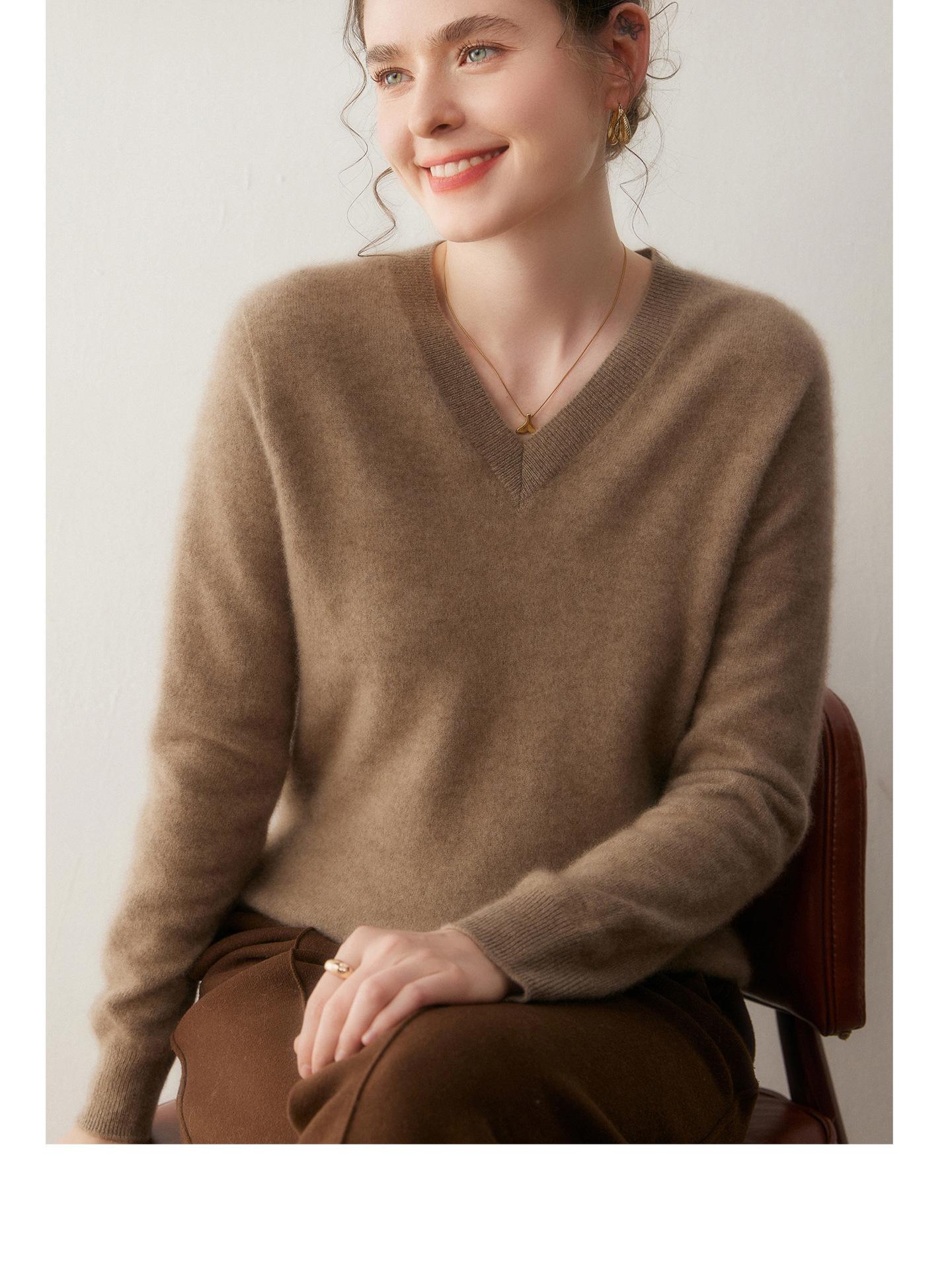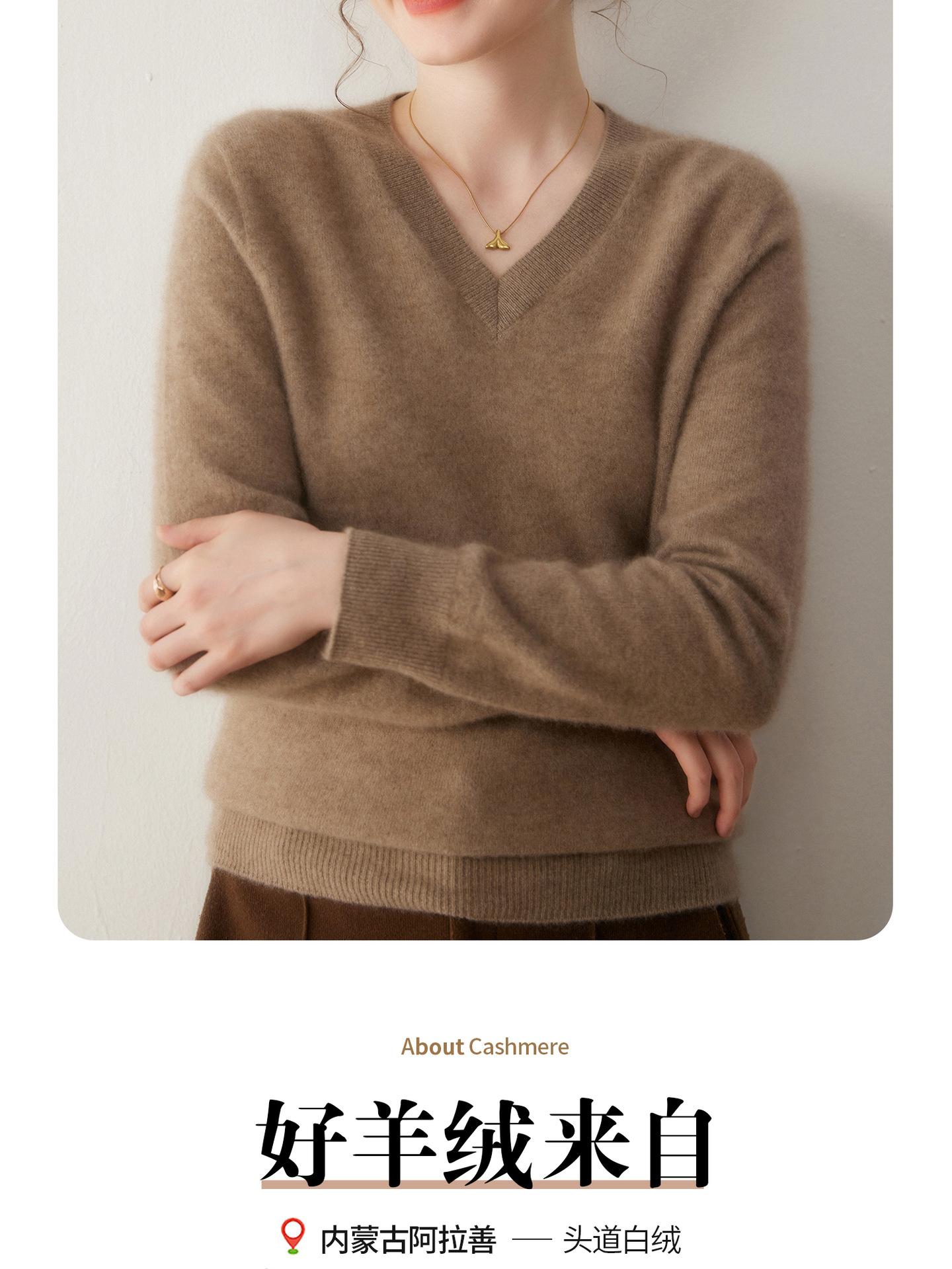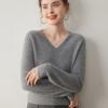 Suéter de Cachemira de Primera Línea Listo para Usar para Mujer con Cuello en V Otoño/Invierno 2025 Manga Larga Jersey de Punto de Lana Capa Base Suéter sin Costuras