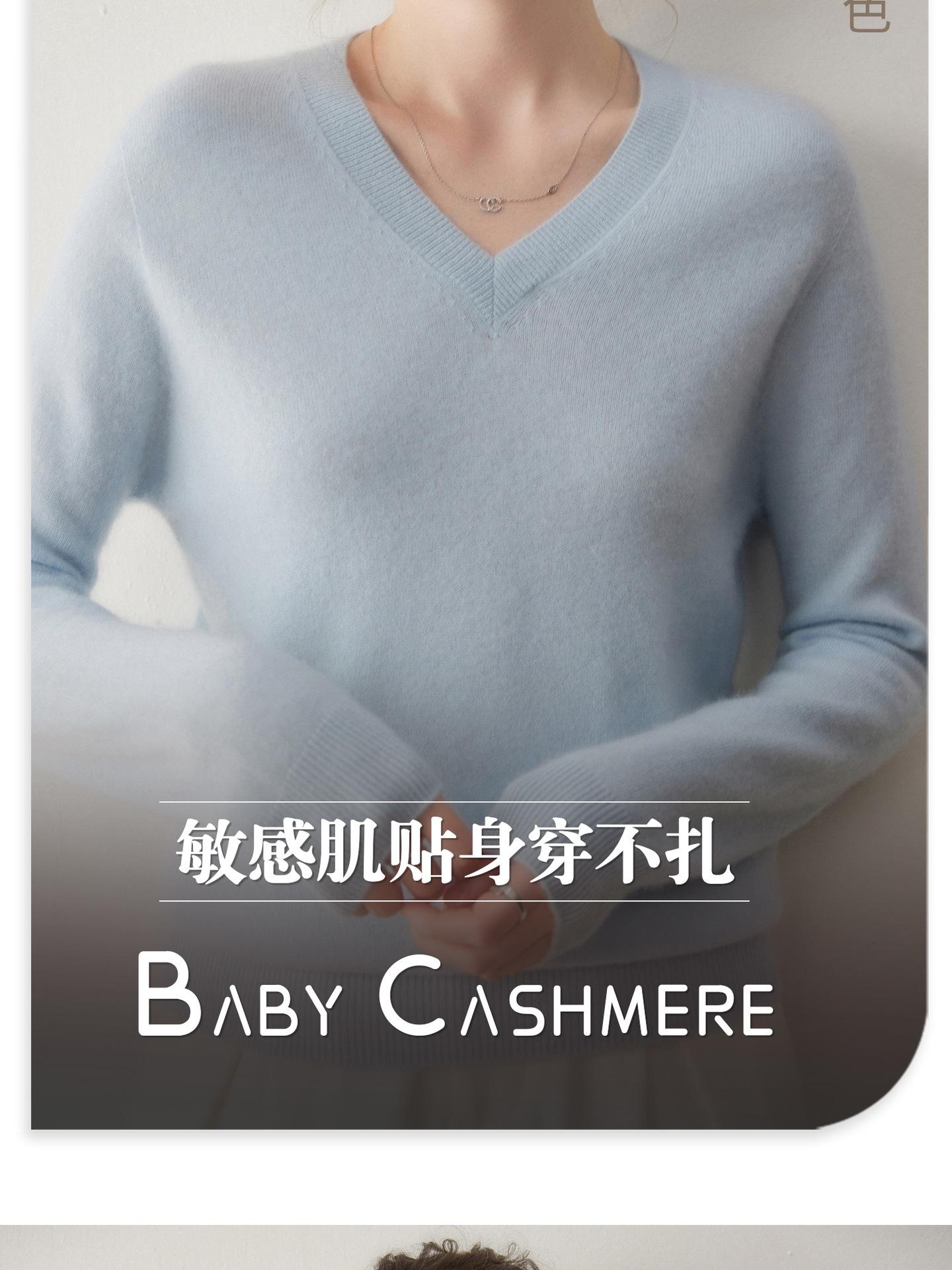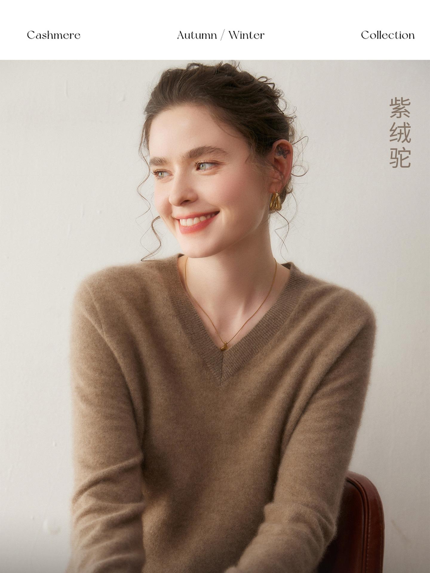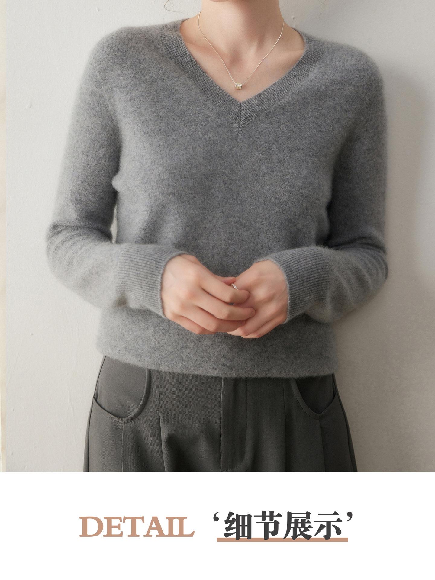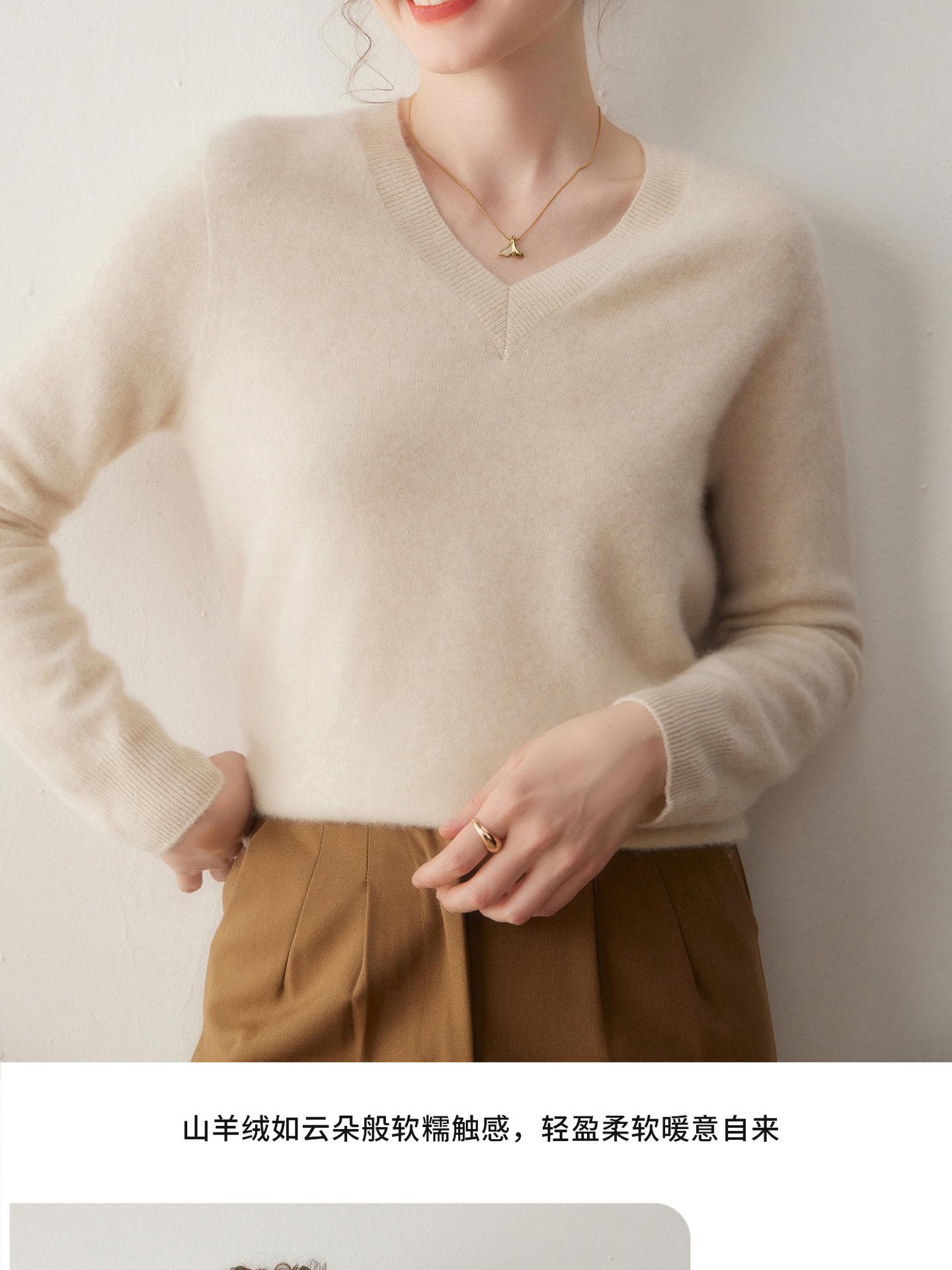 Suéter de Cachemira de Primera Línea Listo para Usar para Mujer con Cuello en V Otoño/Invierno 2025 Manga Larga Jersey de Punto de Lana Capa Base Suéter sin Costuras