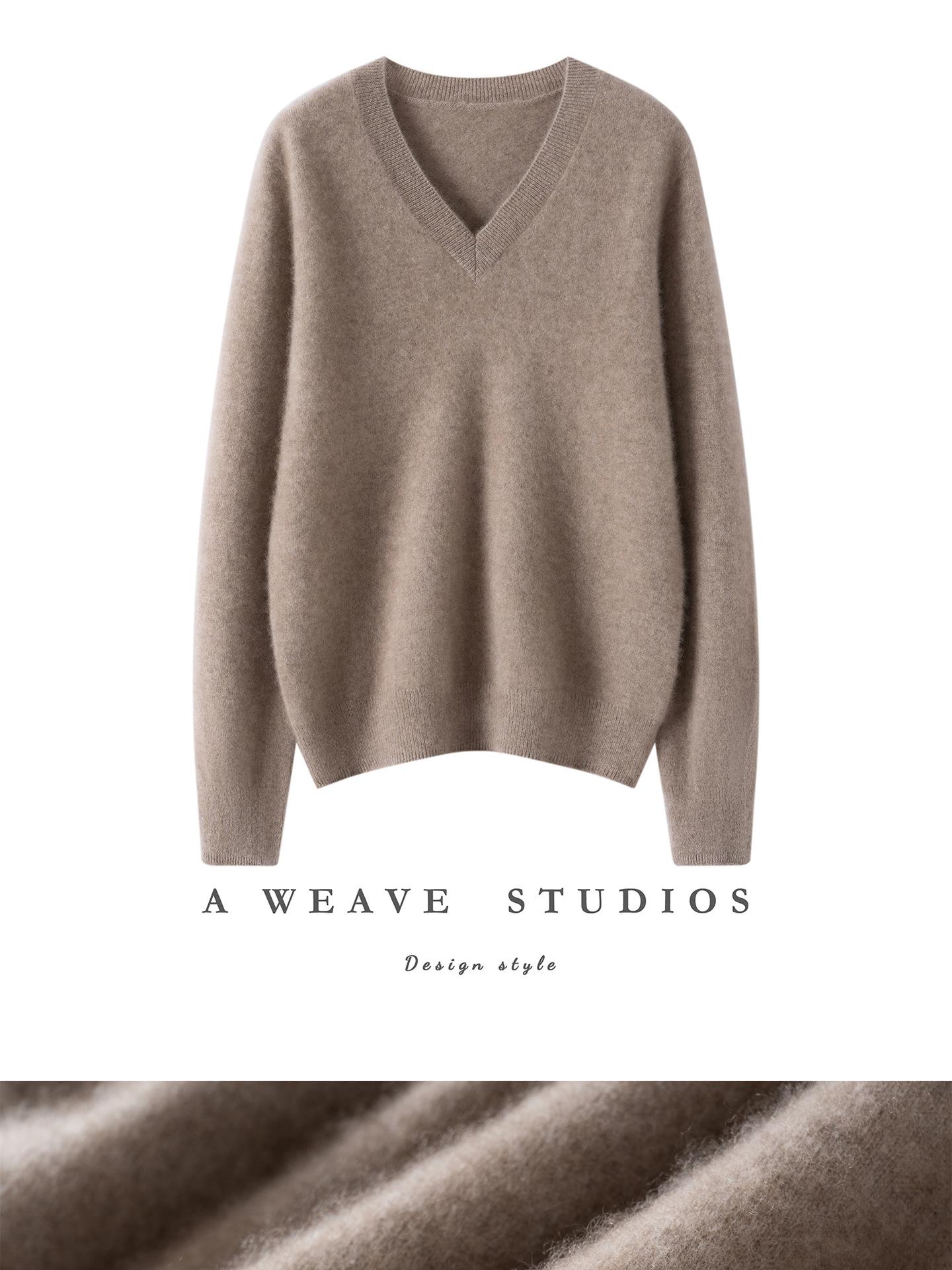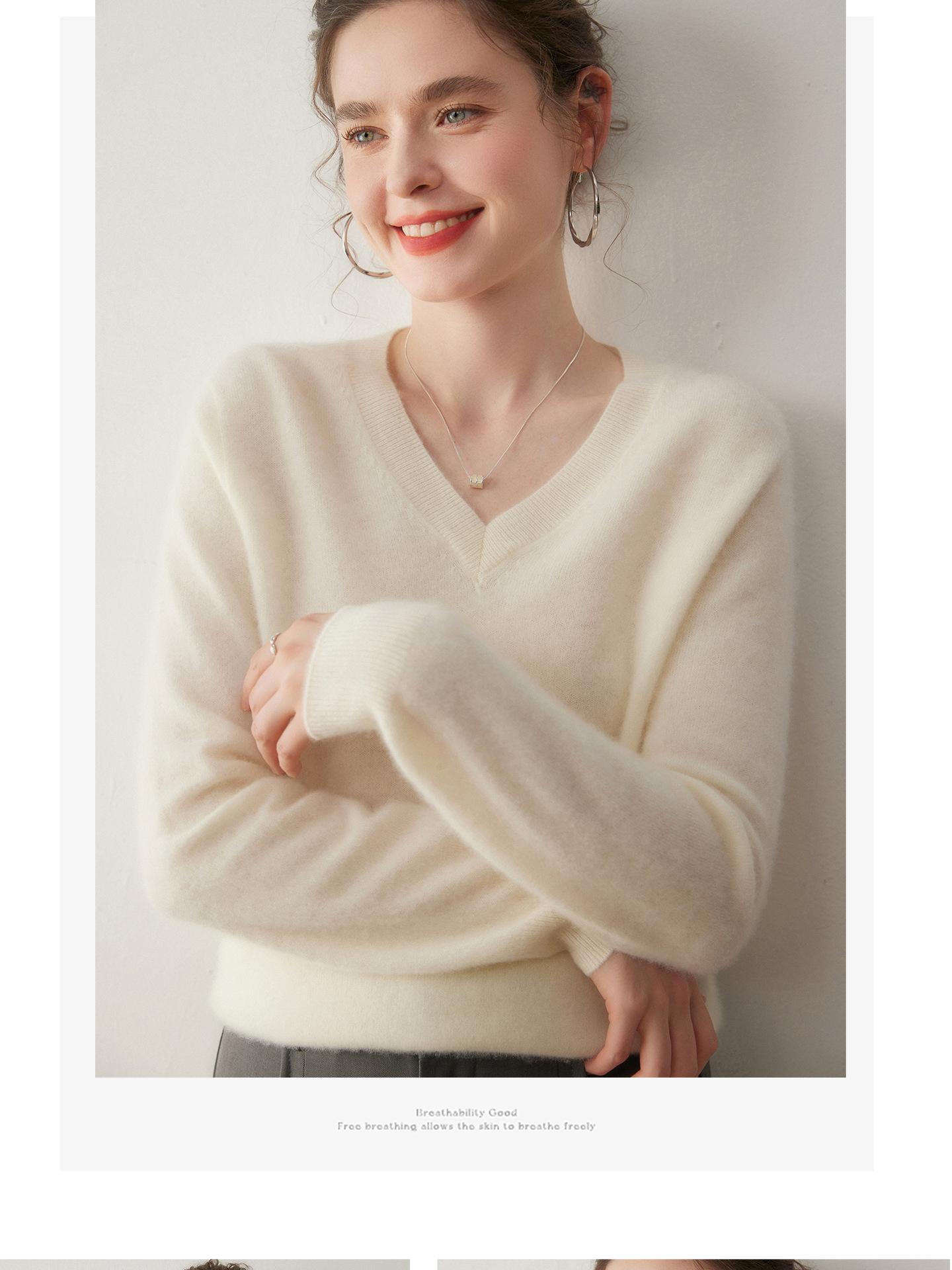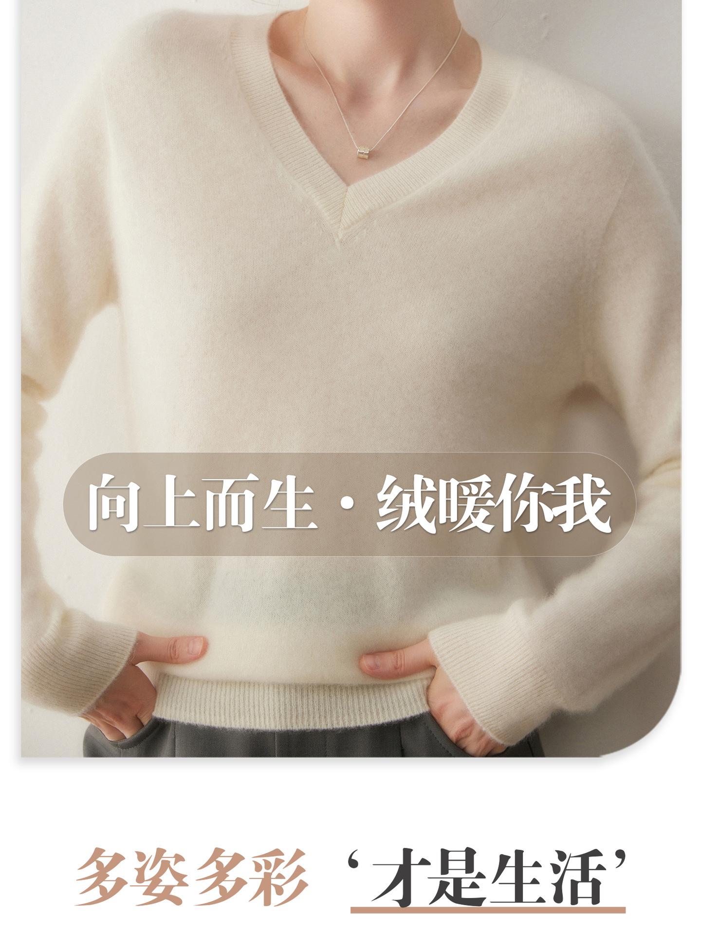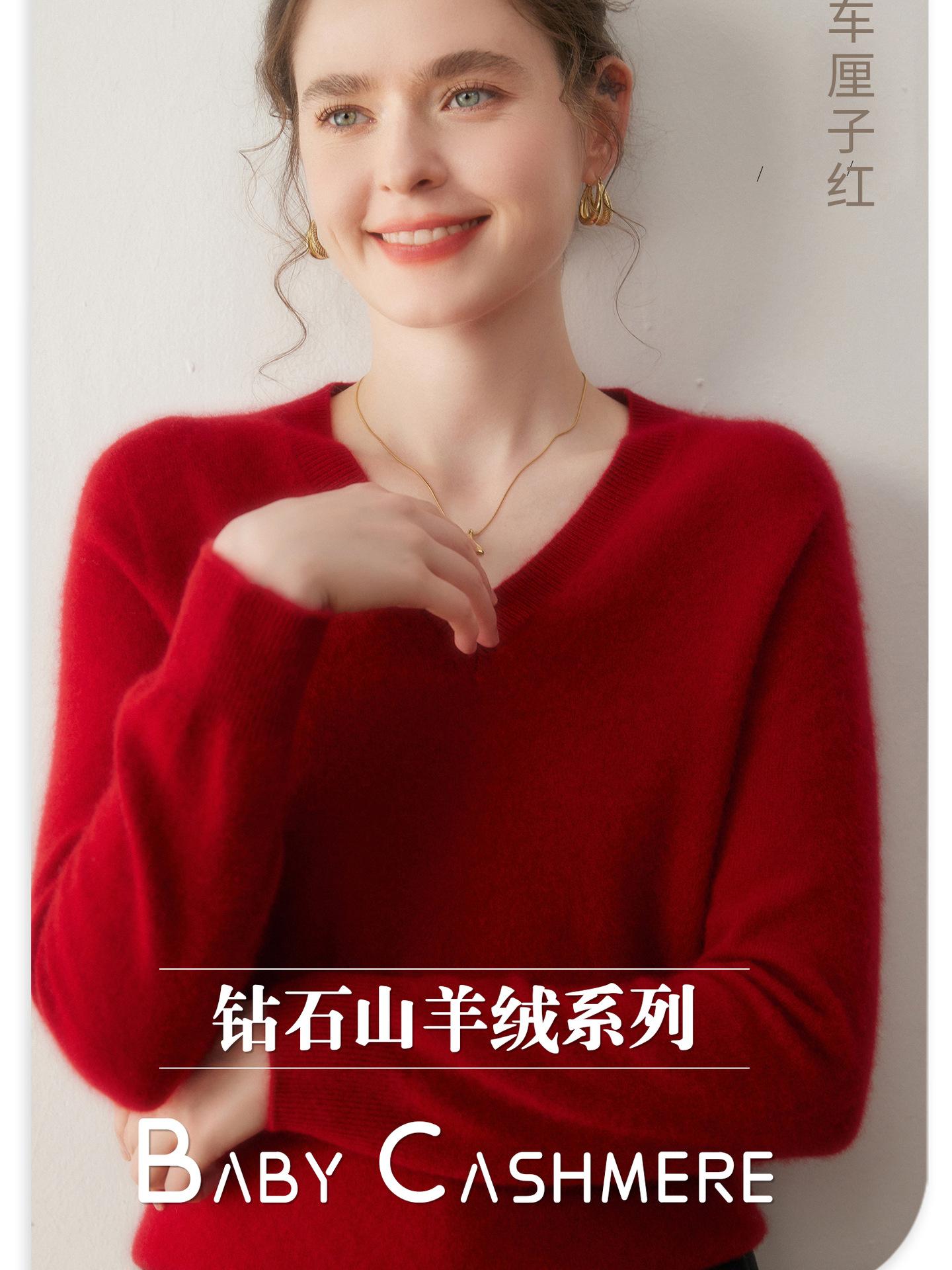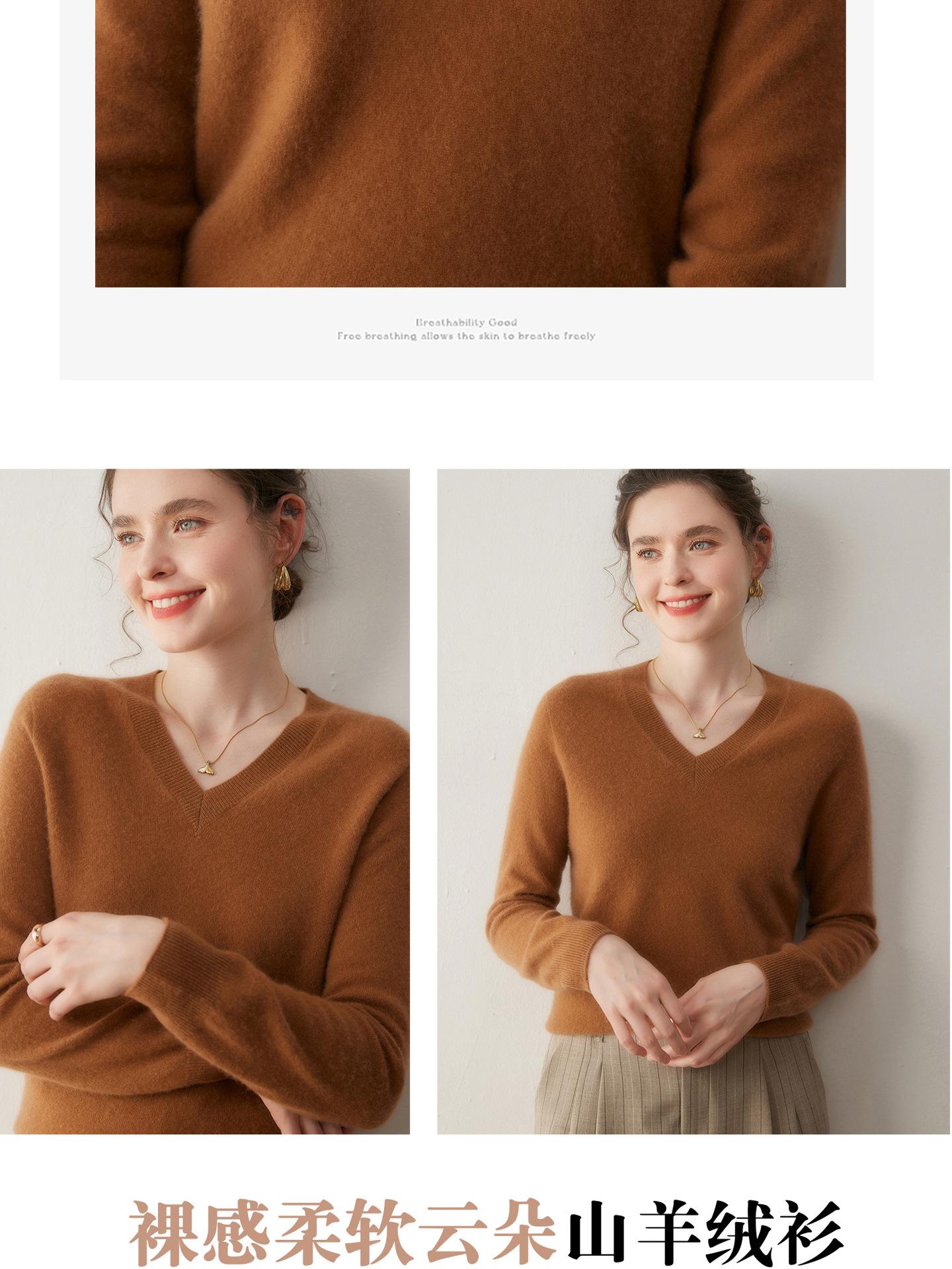 Suéter de Cachemira de Primera Línea Listo para Usar para Mujer con Cuello en V Otoño/Invierno 2025 Manga Larga Jersey de Punto de Lana Capa Base Suéter sin Costuras