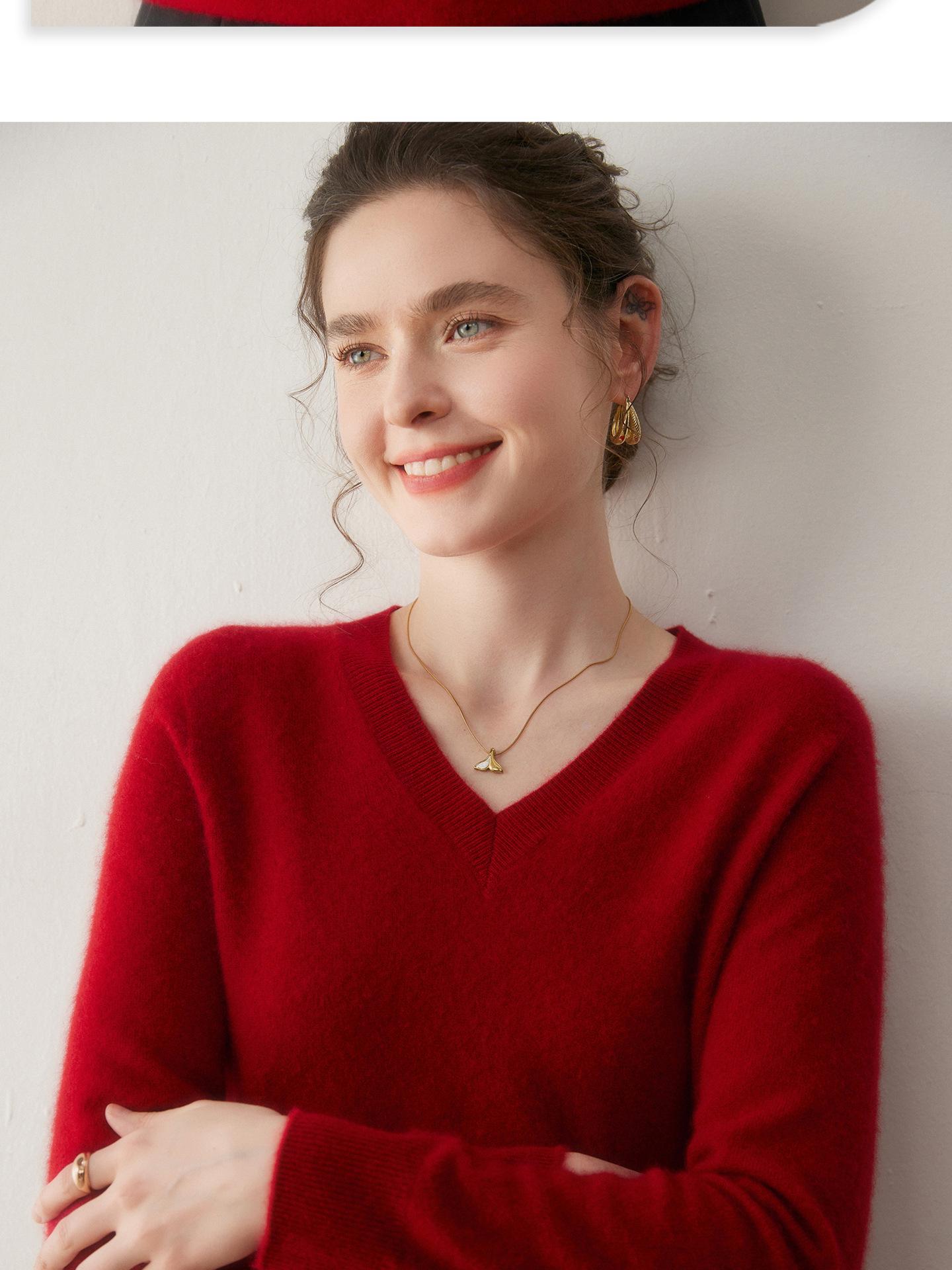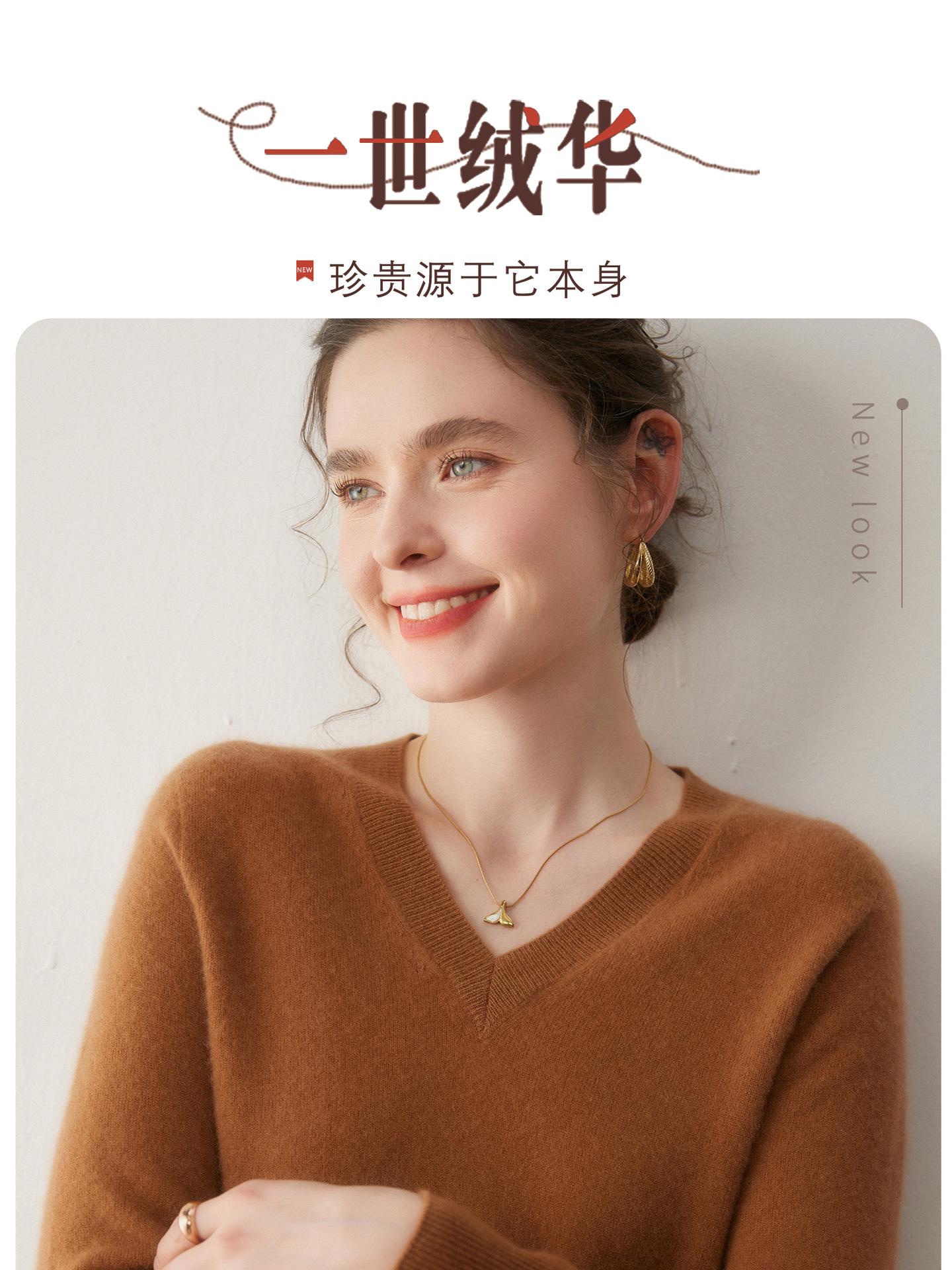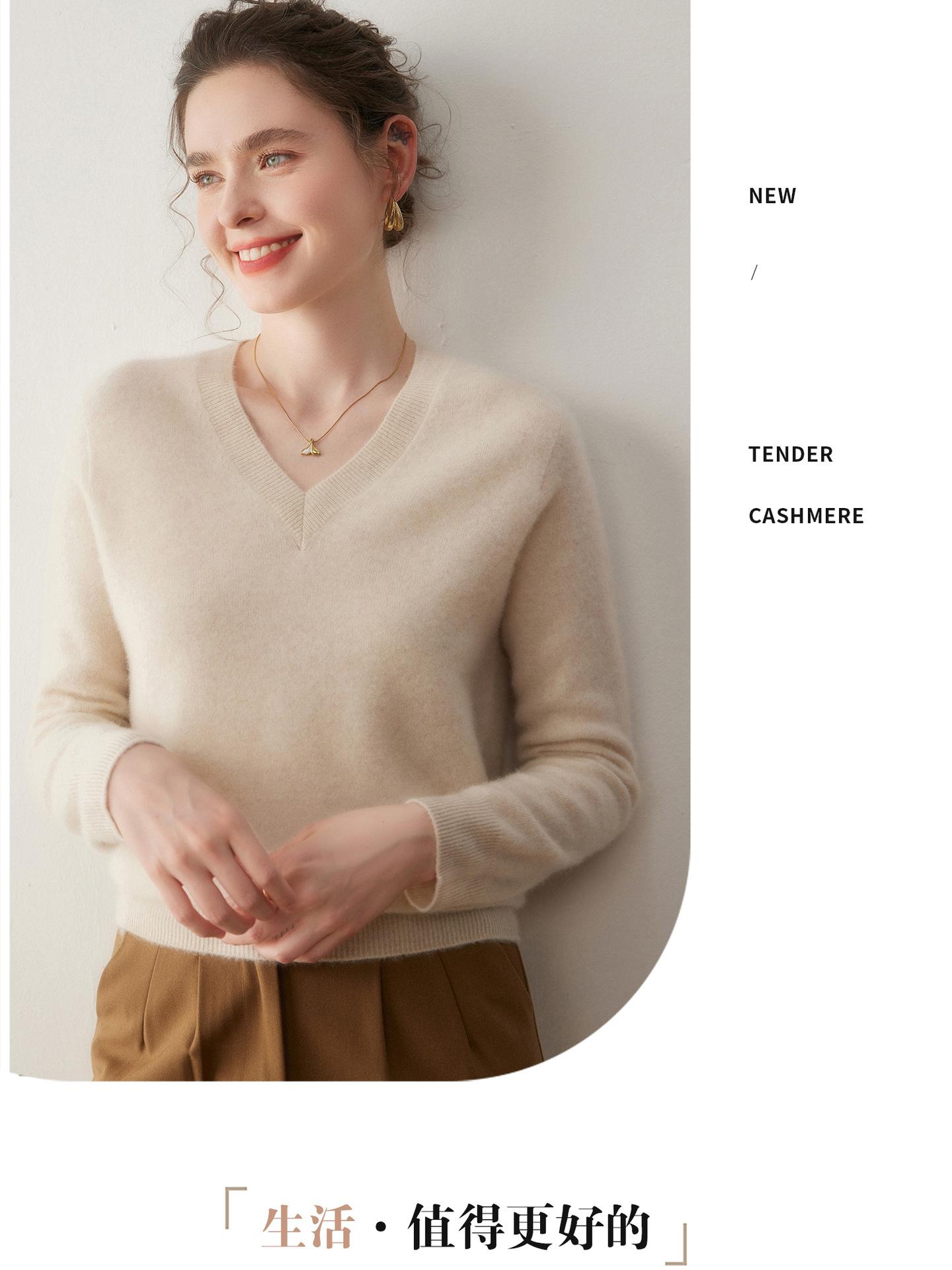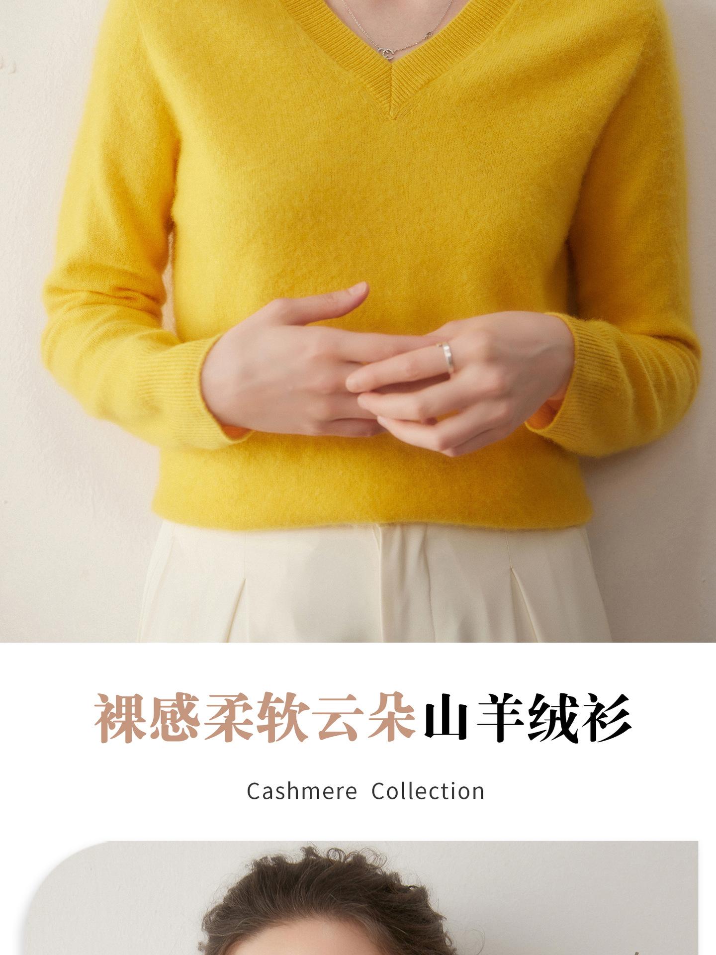 Suéter de Cachemira de Primera Línea Listo para Usar para Mujer con Cuello en V Otoño/Invierno 2025 Manga Larga Jersey de Punto de Lana Capa Base Suéter sin Costuras
