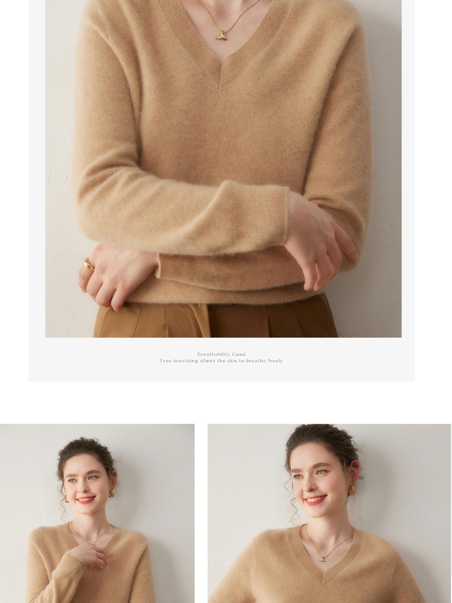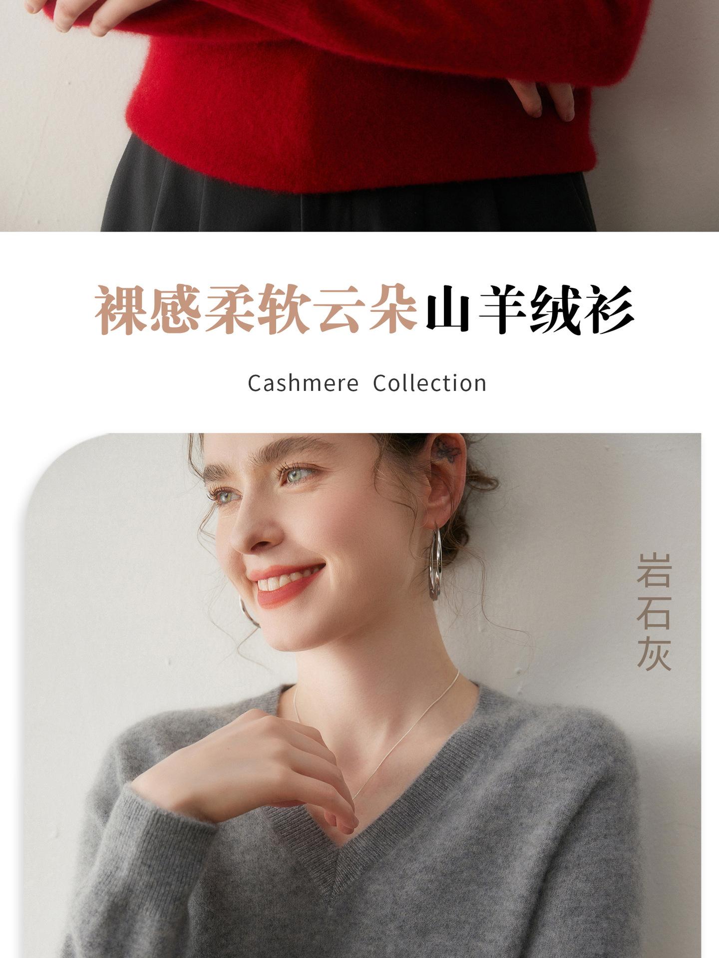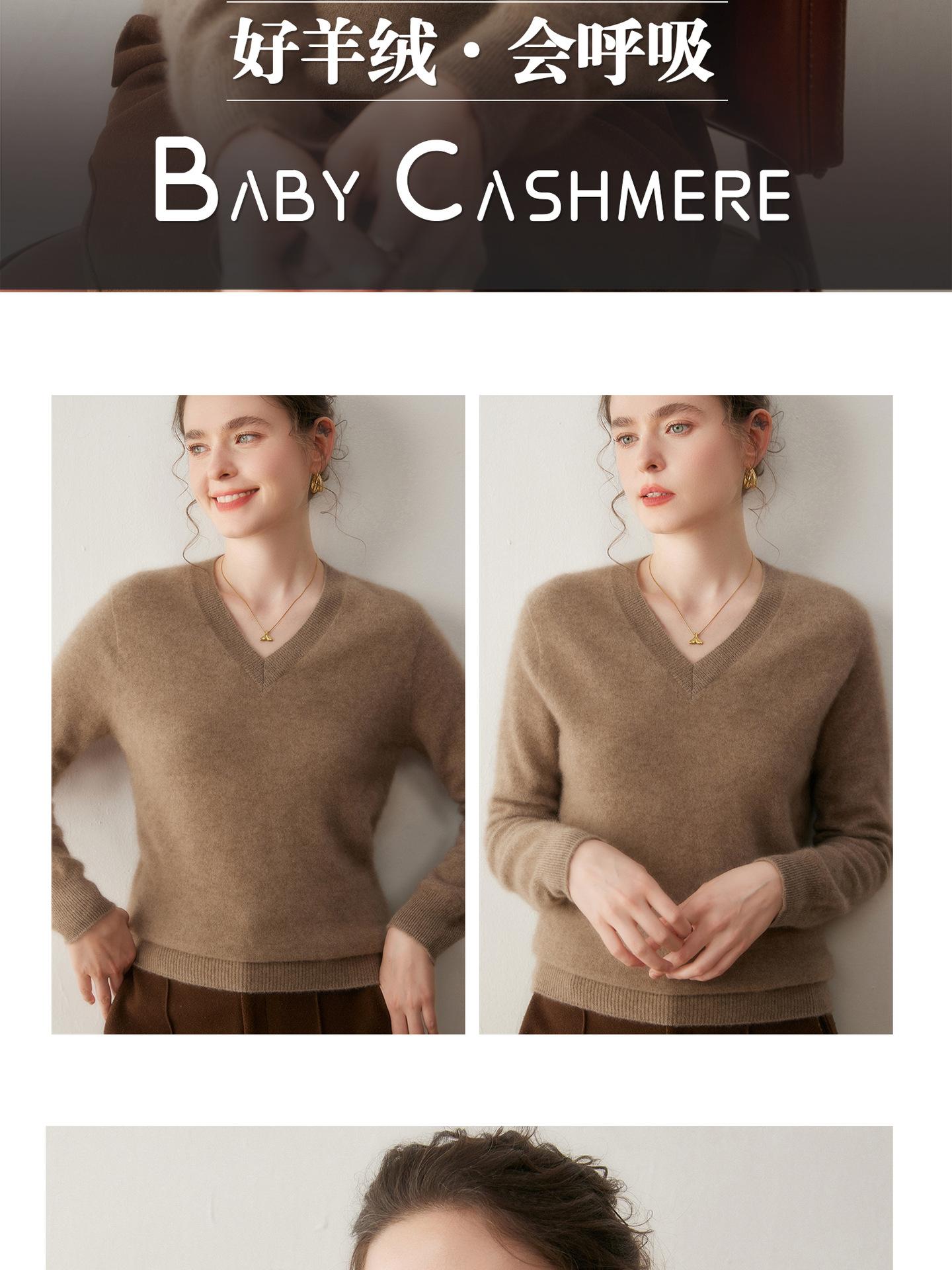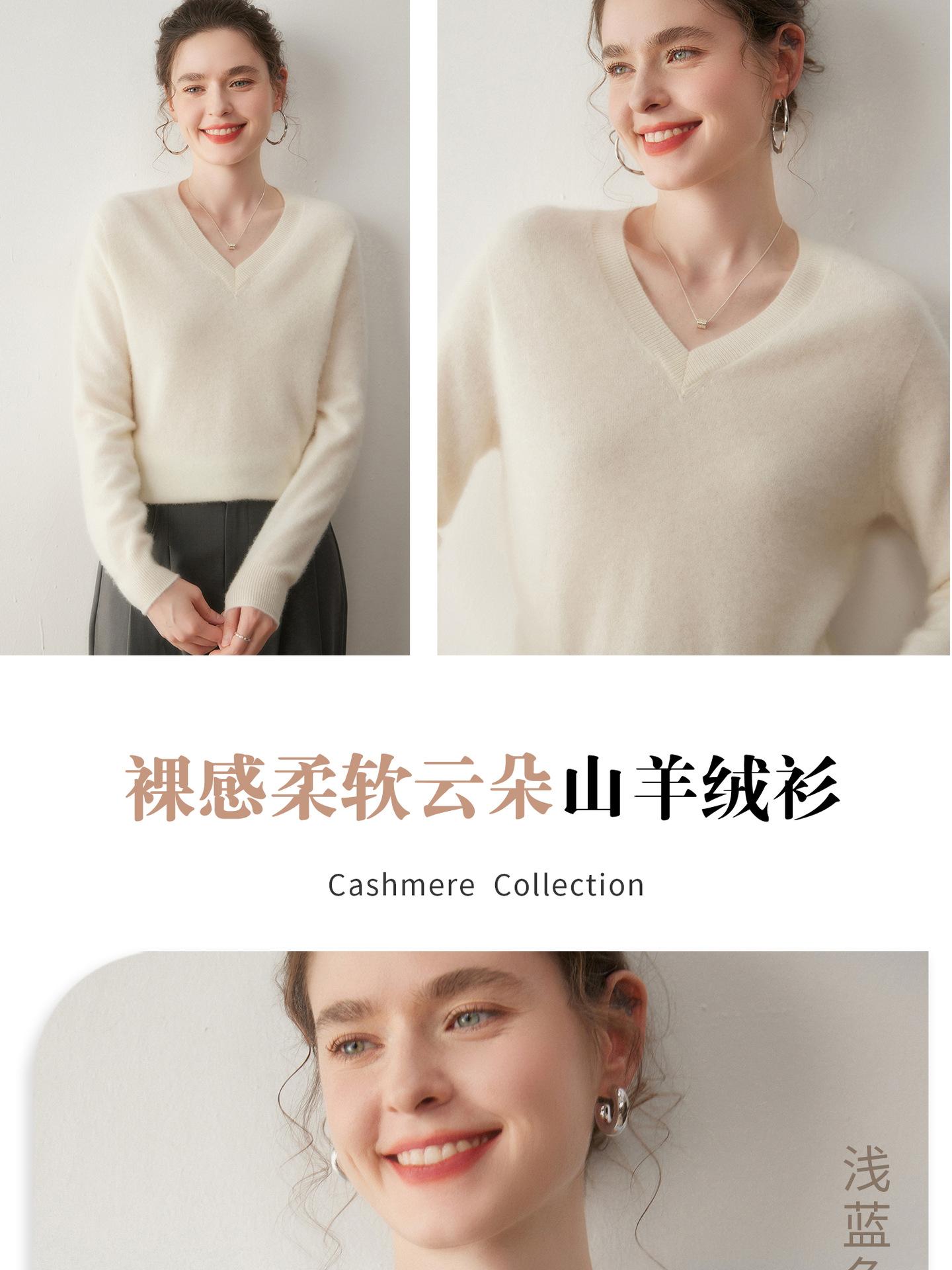 Suéter de Cachemira de Primera Línea Listo para Usar para Mujer con Cuello en V Otoño/Invierno 2025 Manga Larga Jersey de Punto de Lana Capa Base Suéter sin Costuras
