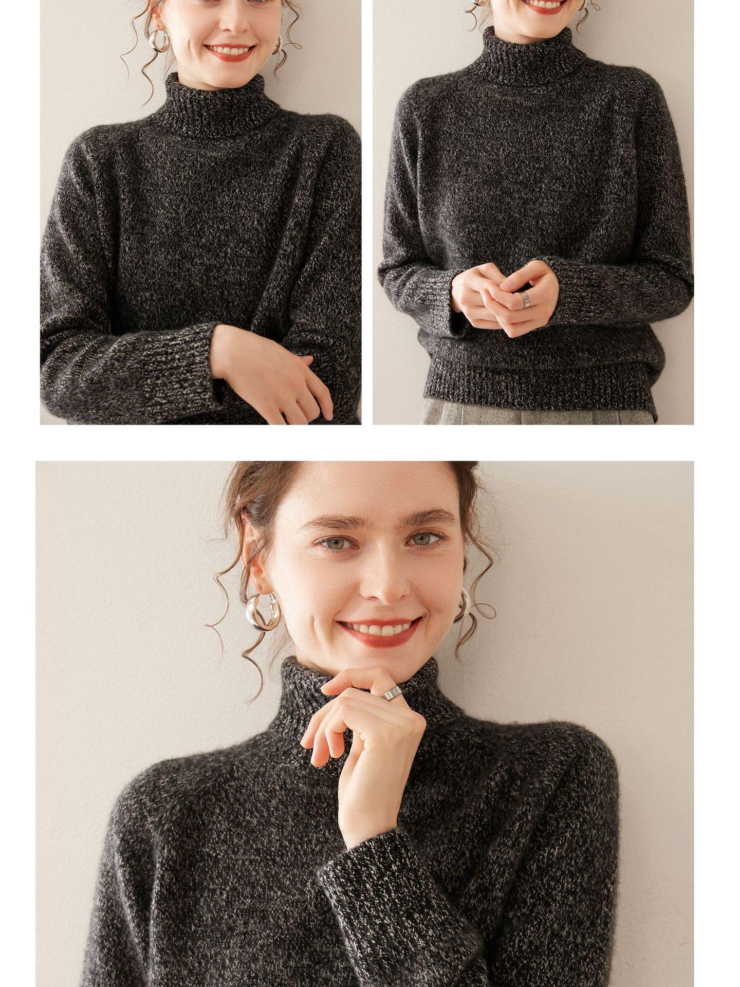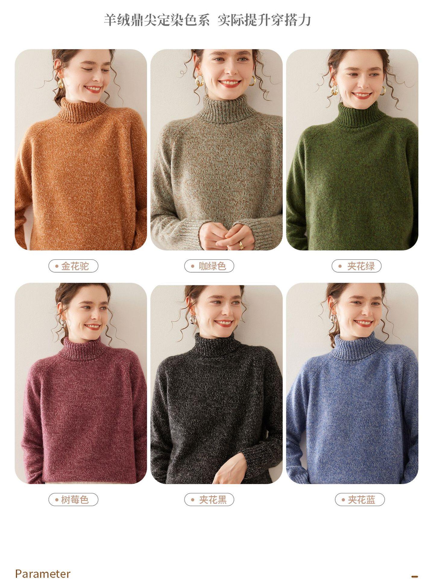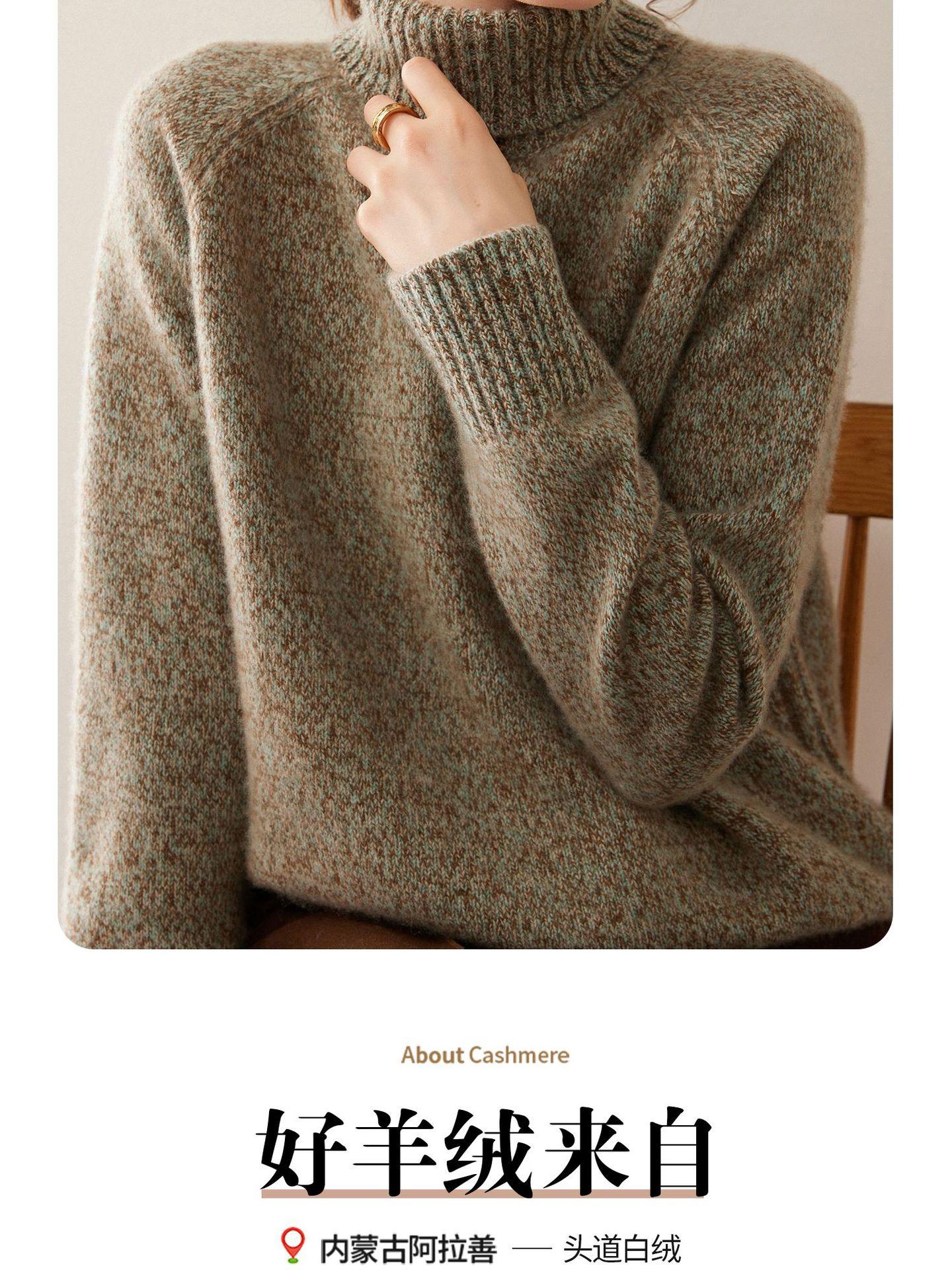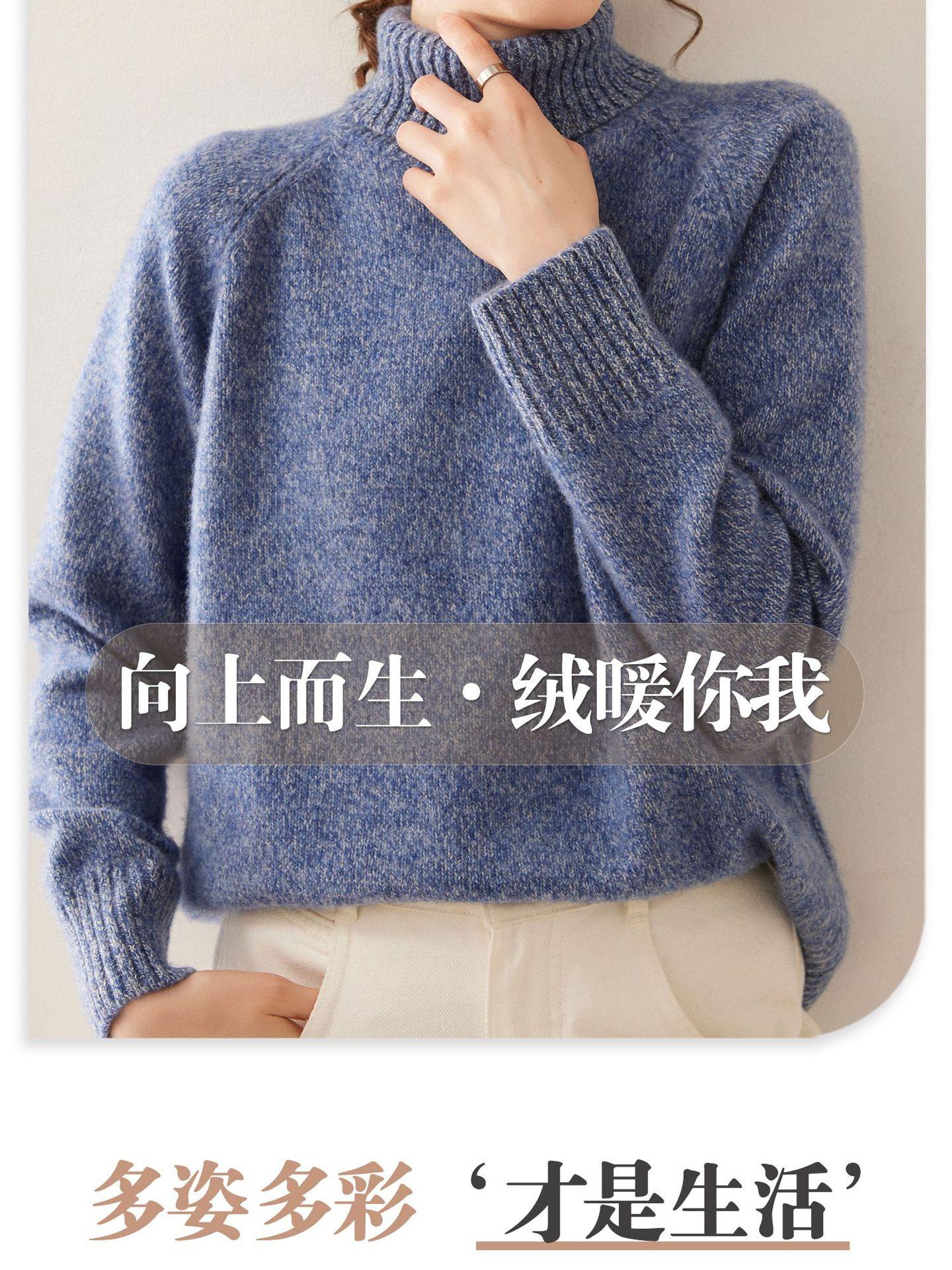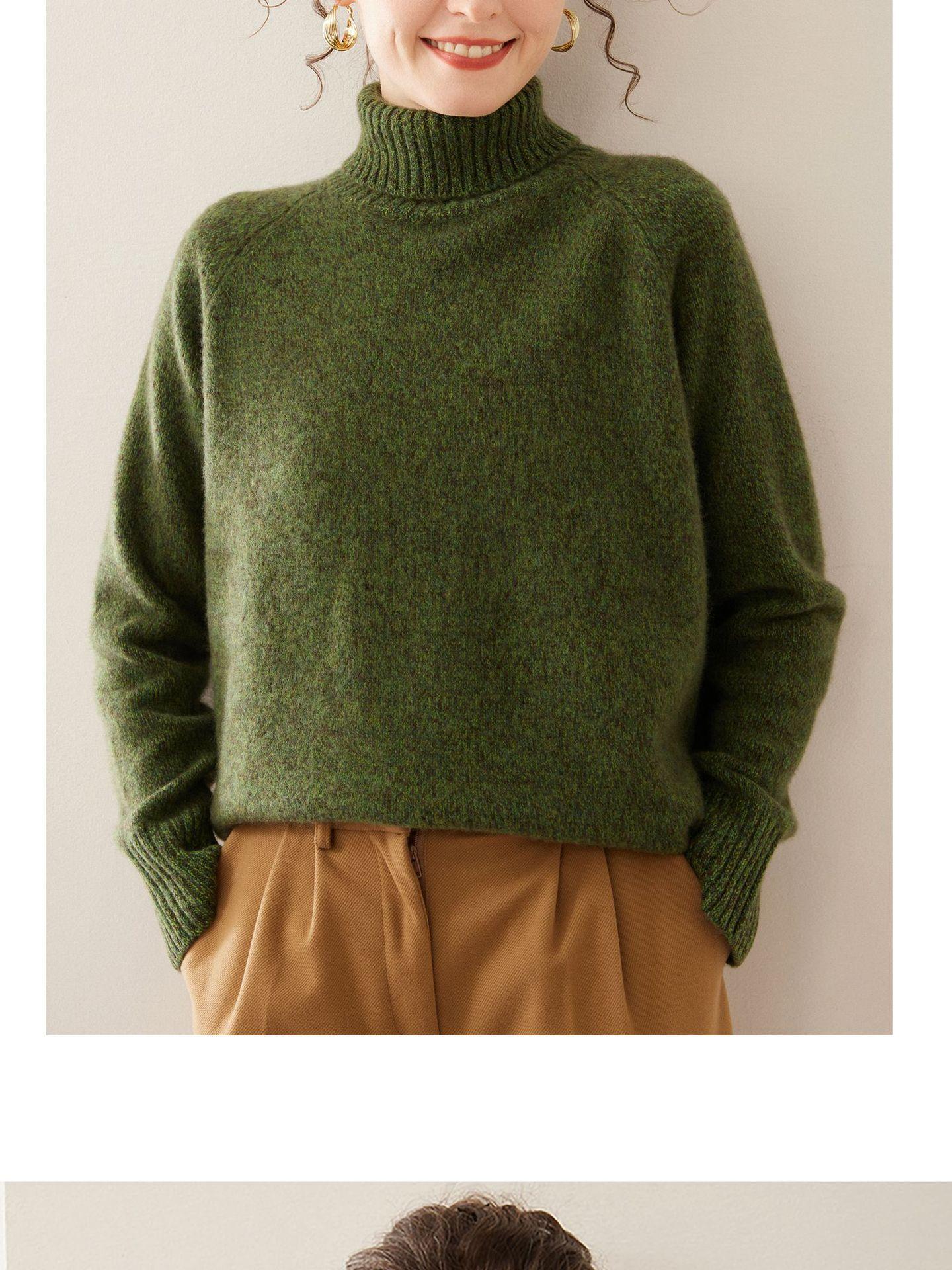 Hilo fantasía de tres hebras engrosado suéter de otoño e invierno tejido cuello alto suéter de cachemira mujer manga raglán suelto suéter base de cachemira mujer