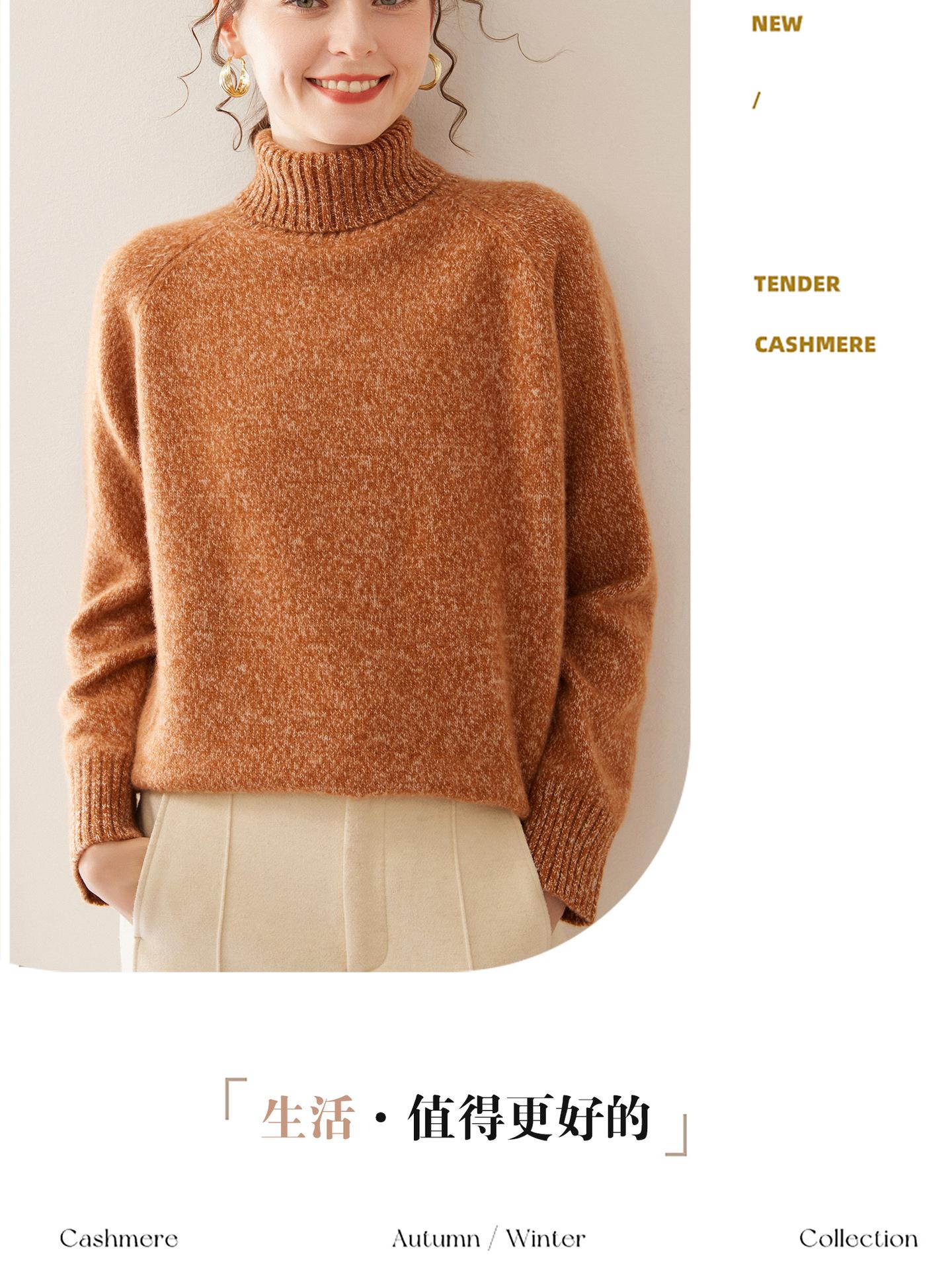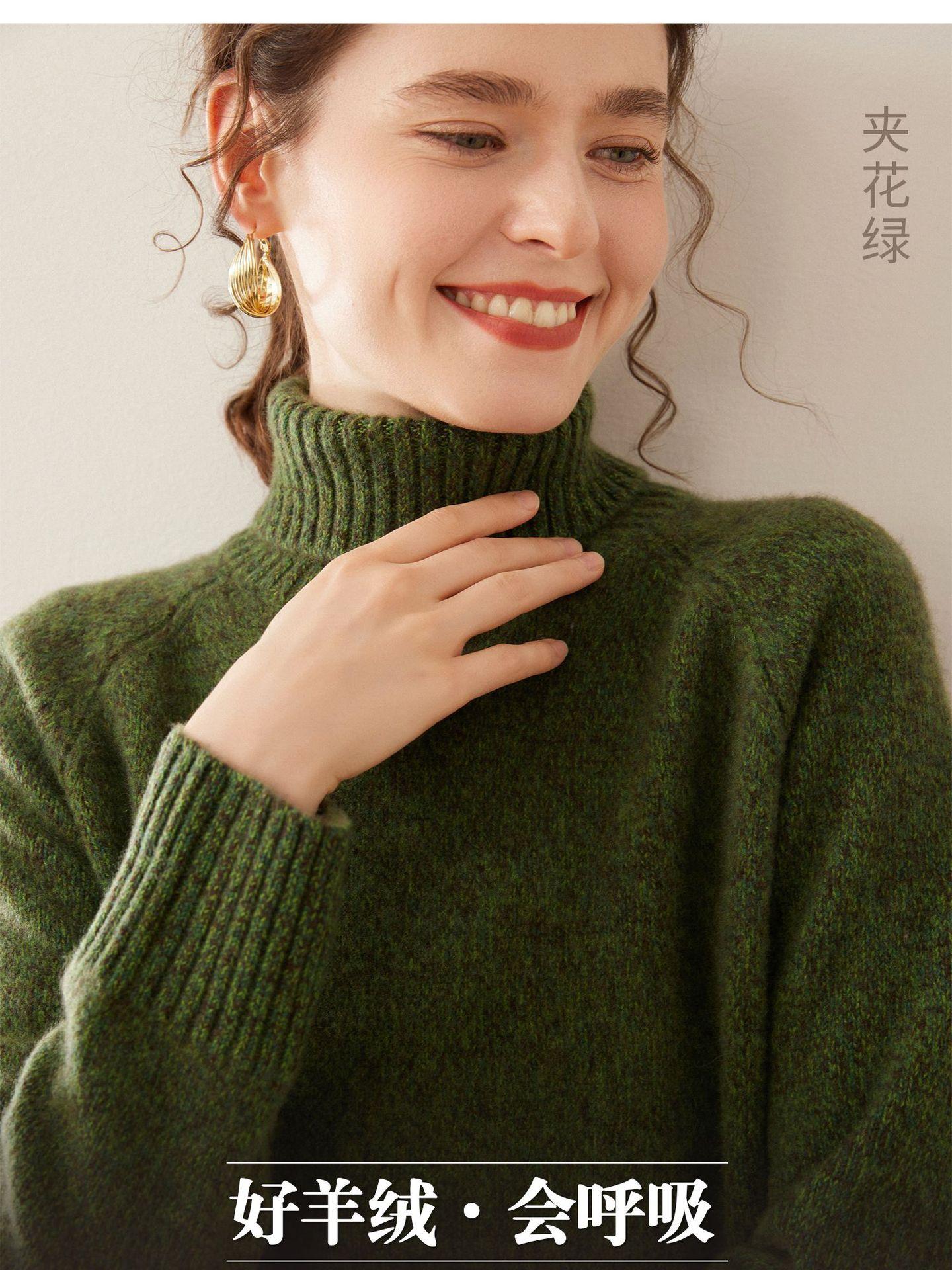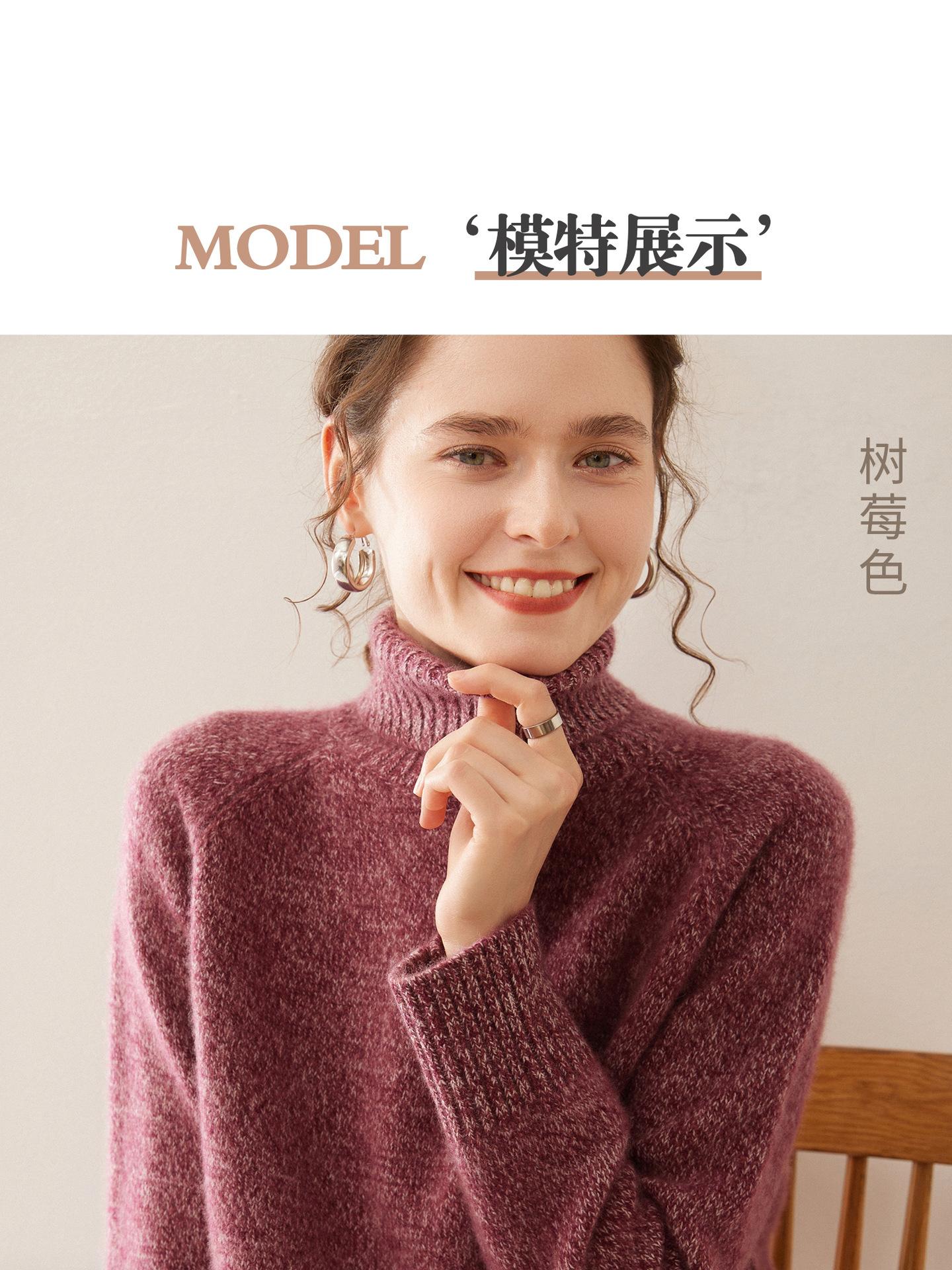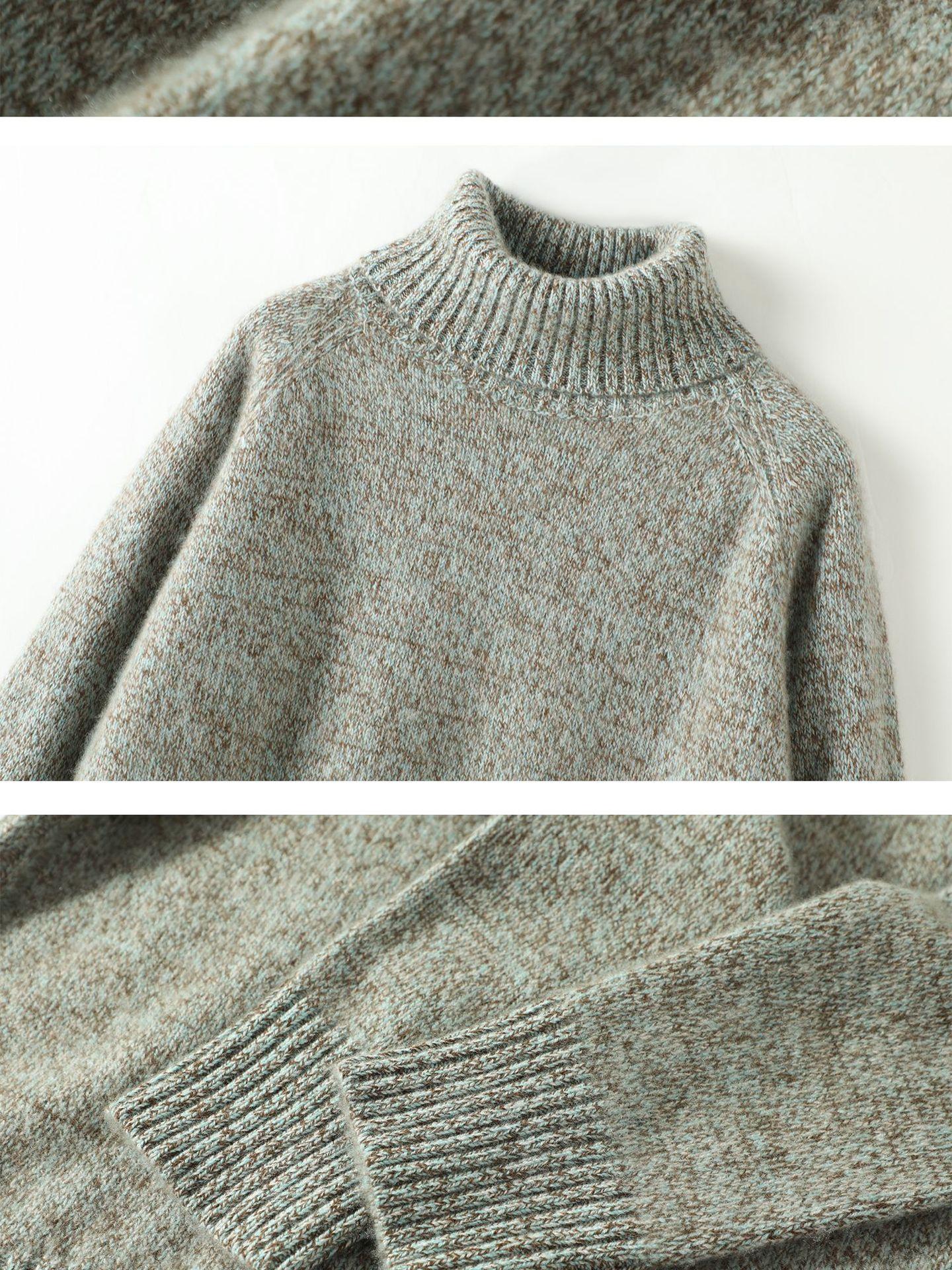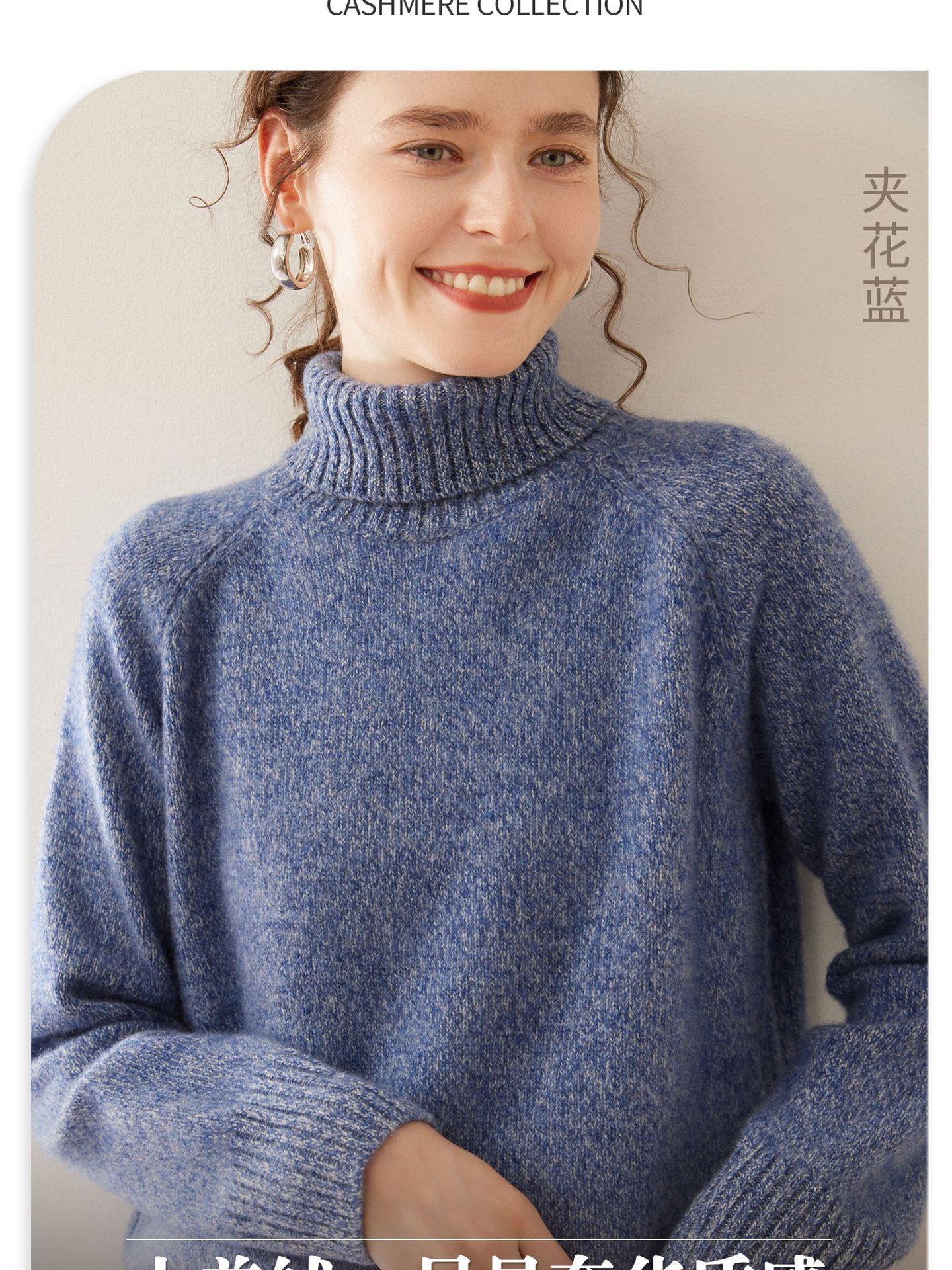 Hilo fantasía de tres hebras engrosado suéter de otoño e invierno tejido cuello alto suéter de cachemira mujer manga raglán suelto suéter base de cachemira mujer