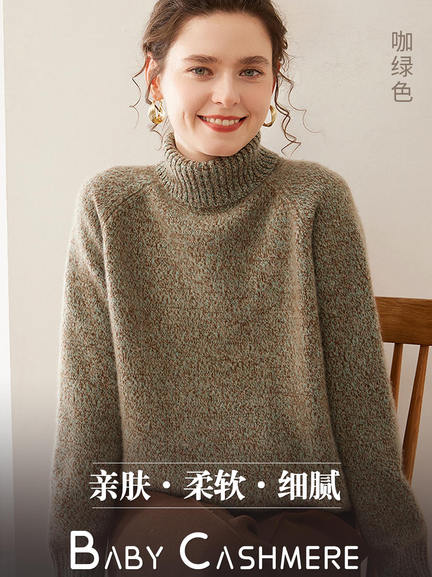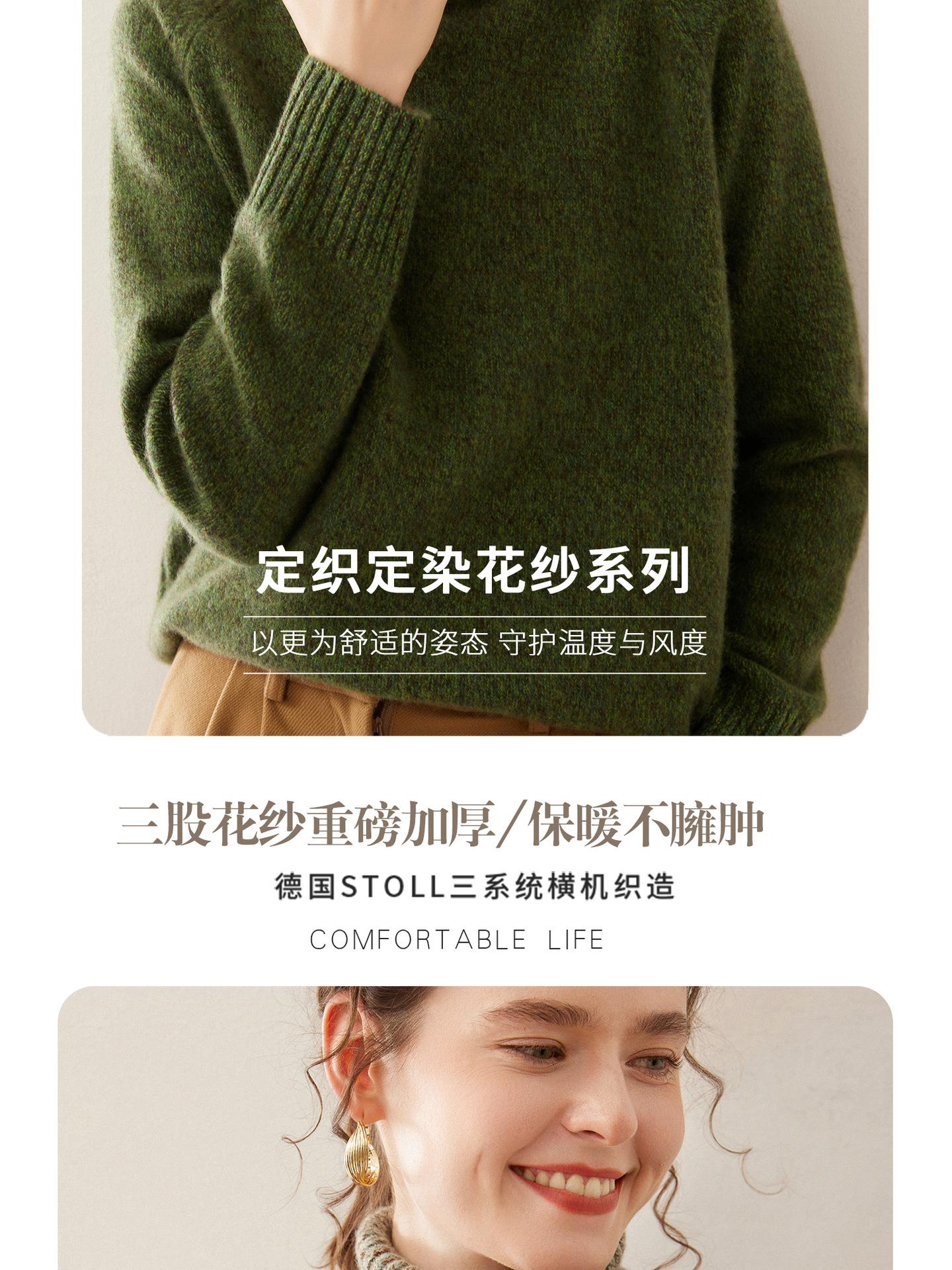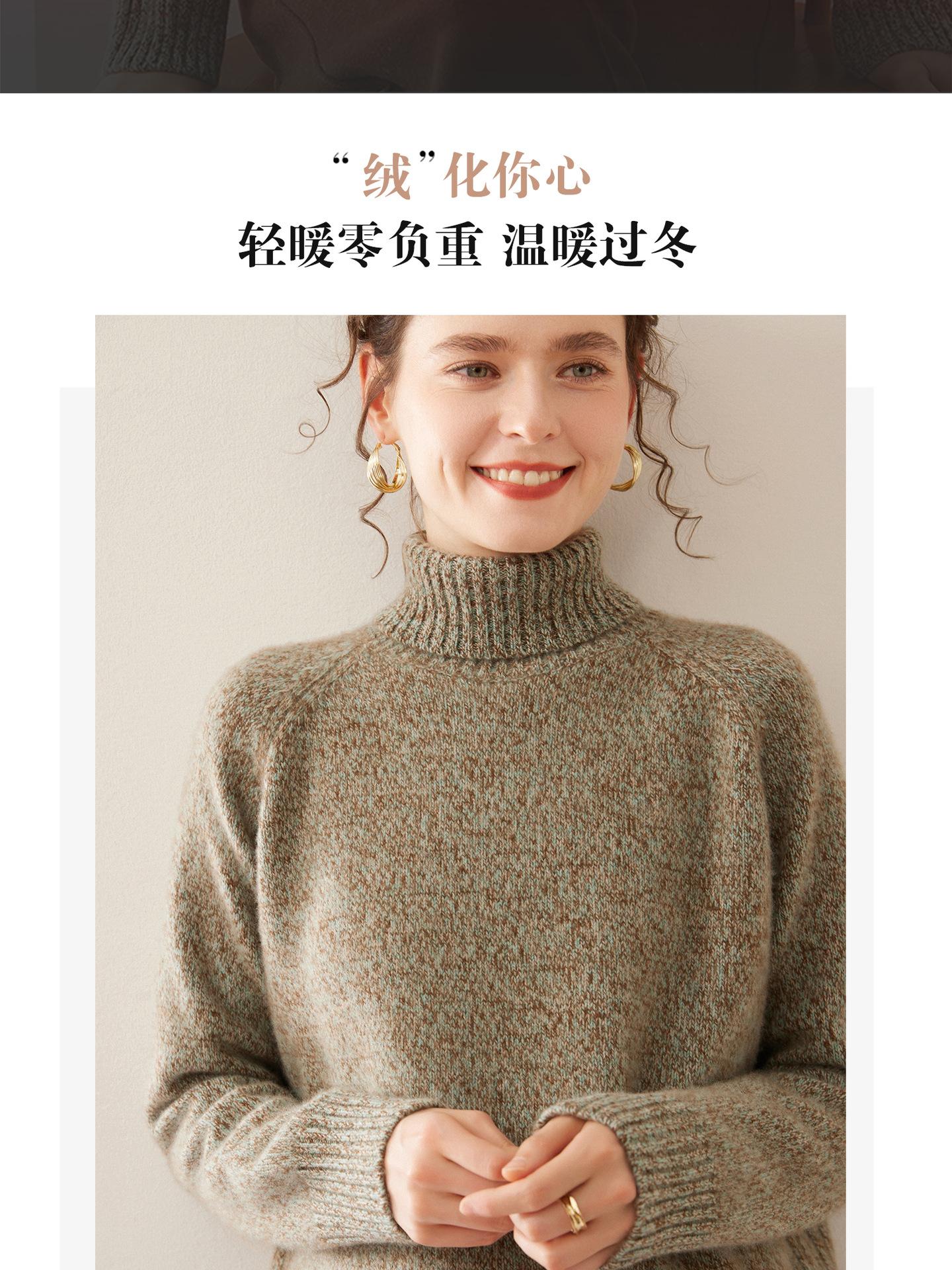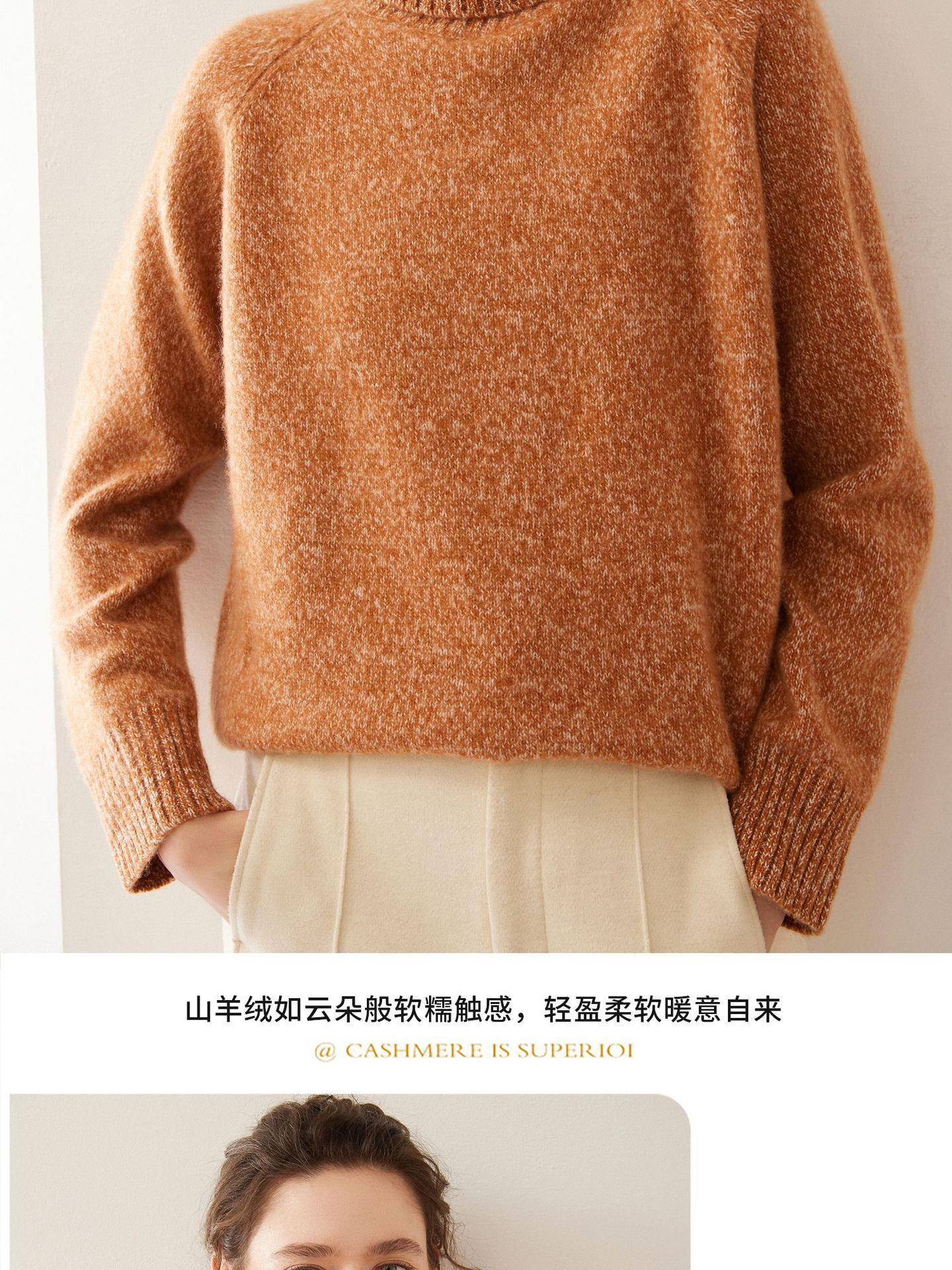 Hilo fantasía de tres hebras engrosado suéter de otoño e invierno tejido cuello alto suéter de cachemira mujer manga raglán suelto suéter base de cachemira mujer