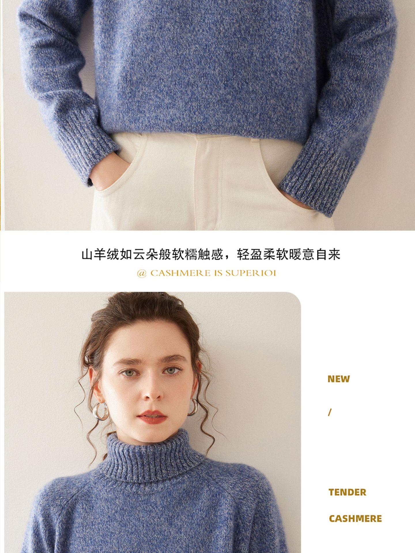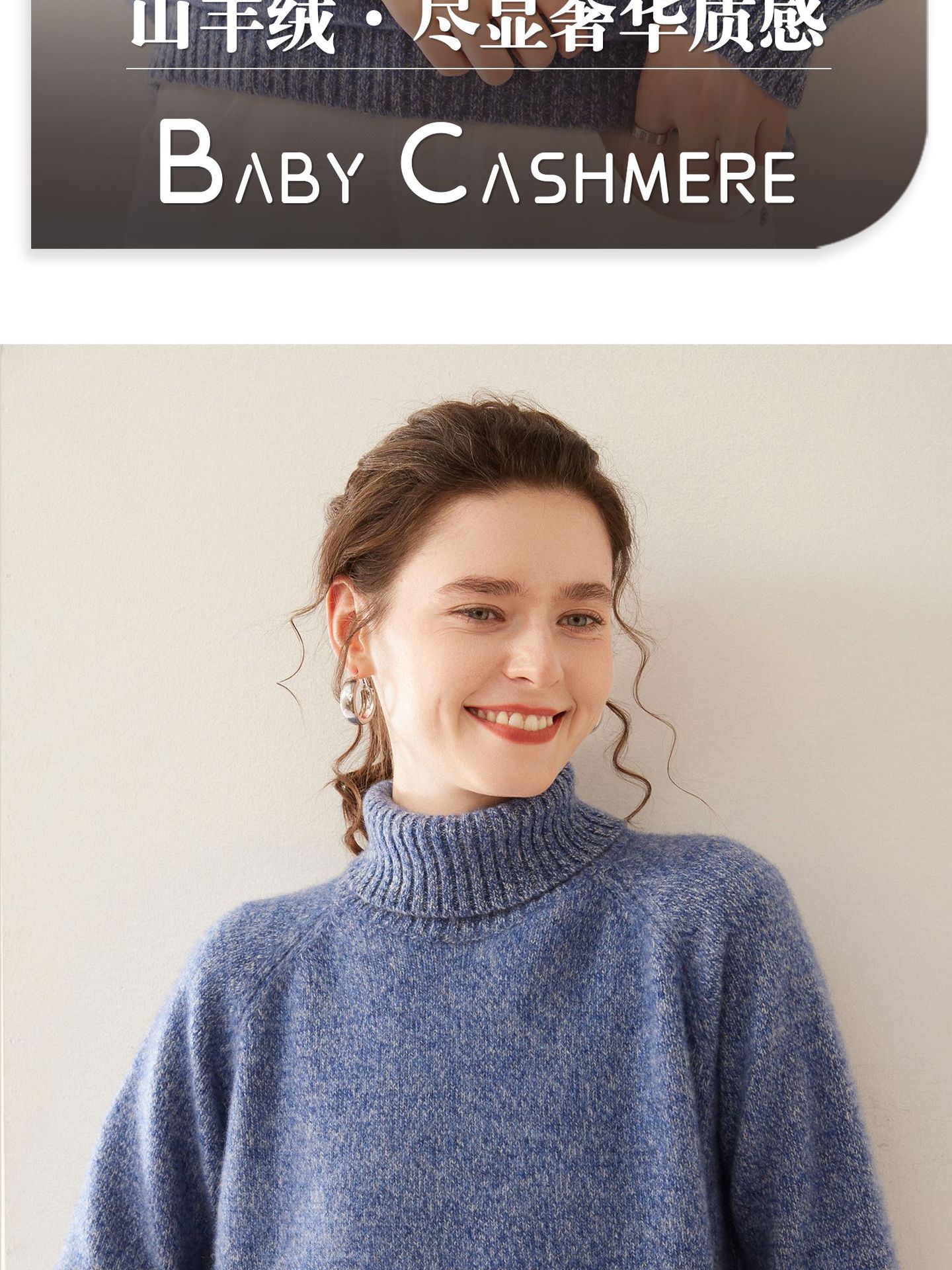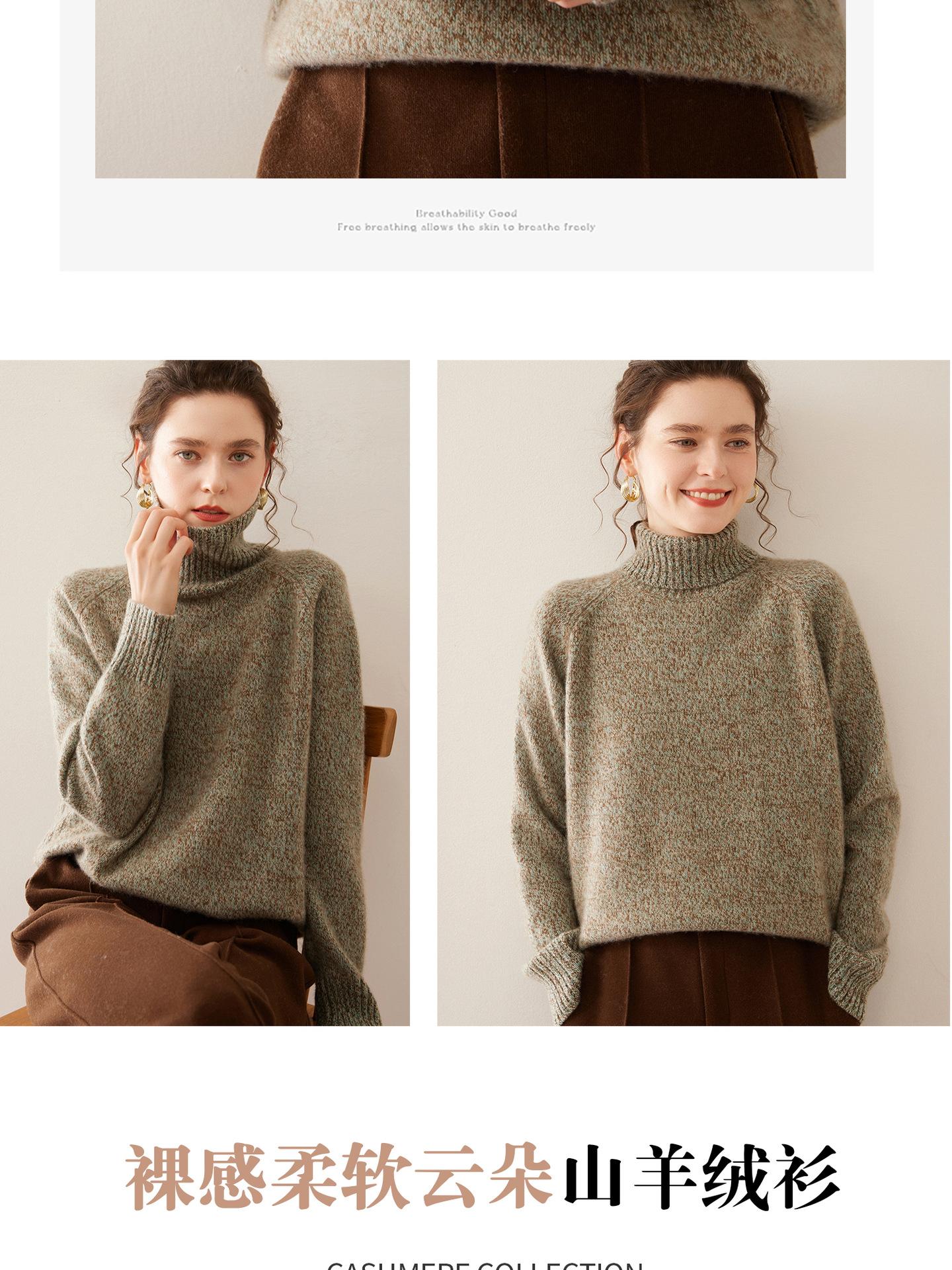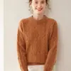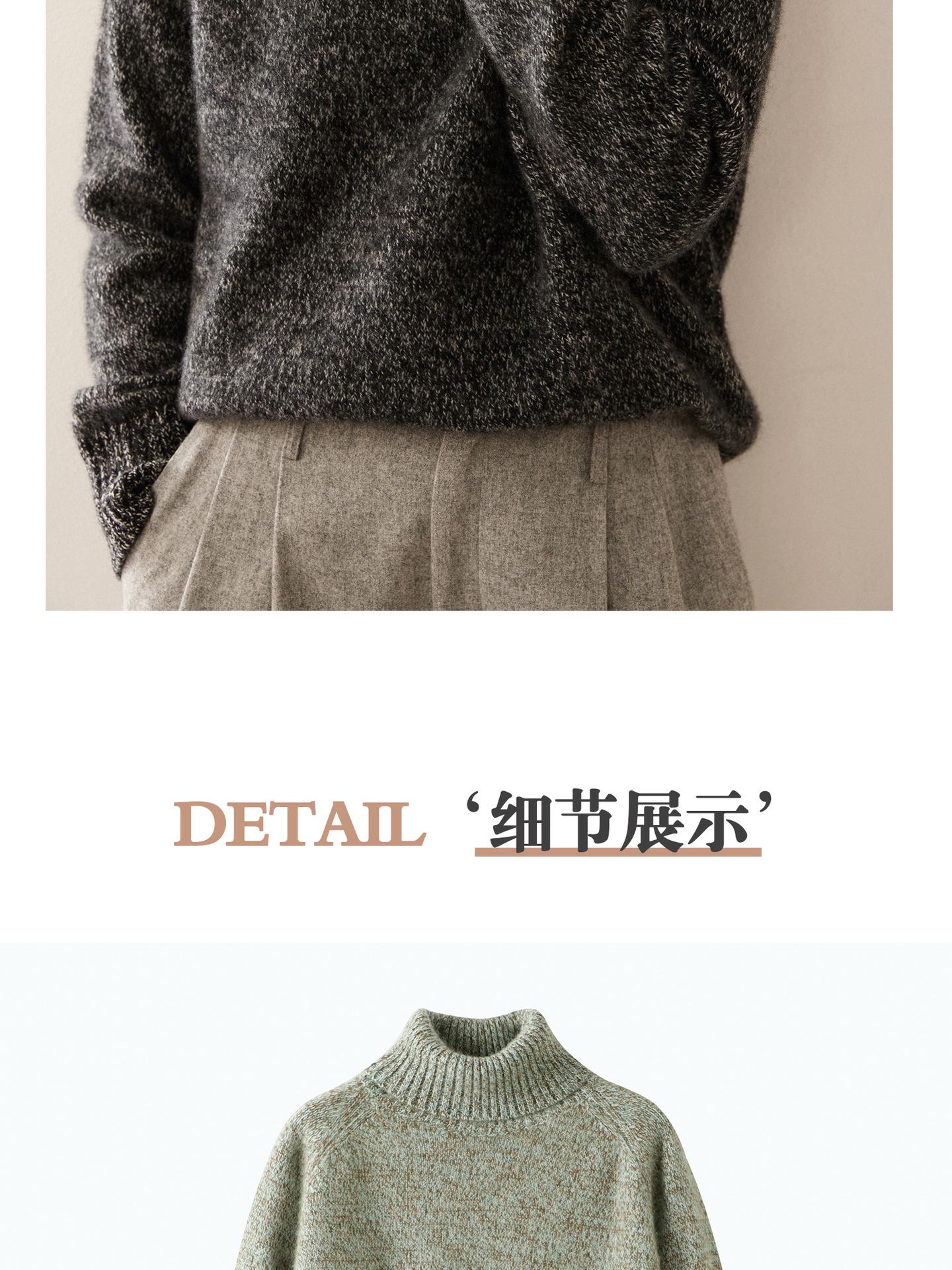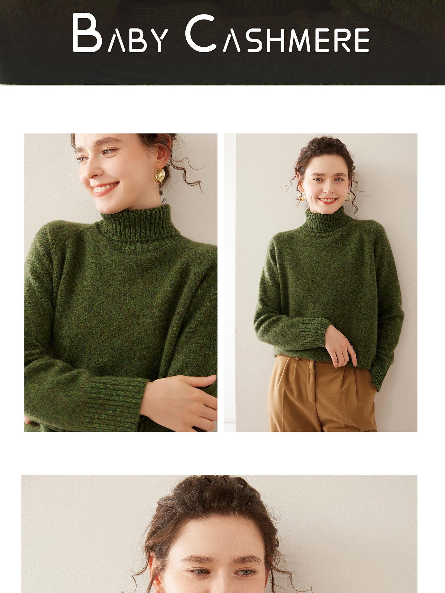 Hilo fantasía de tres hebras engrosado suéter de otoño e invierno tejido cuello alto suéter de cachemira mujer manga raglán suelto suéter base de cachemira mujer
