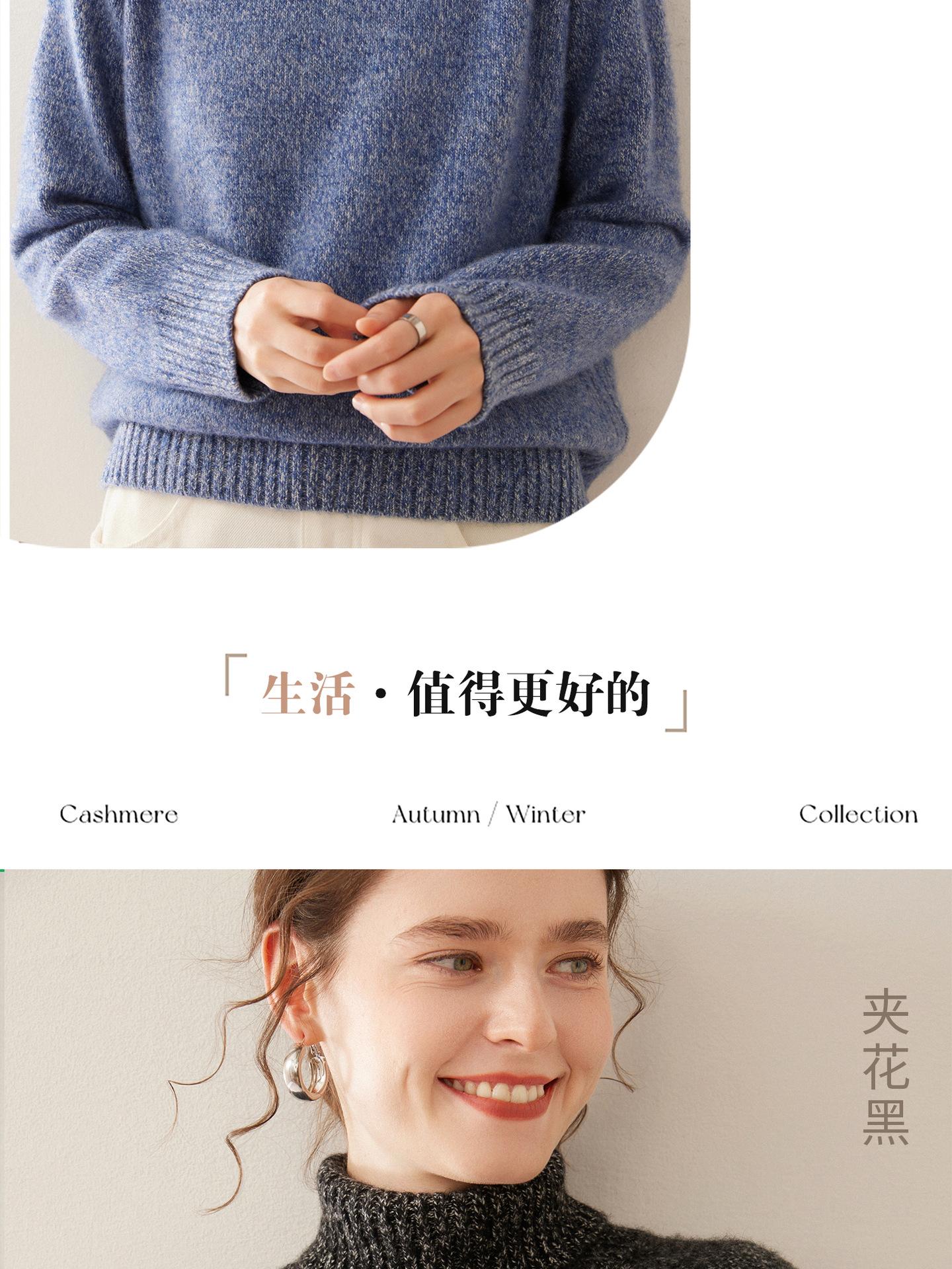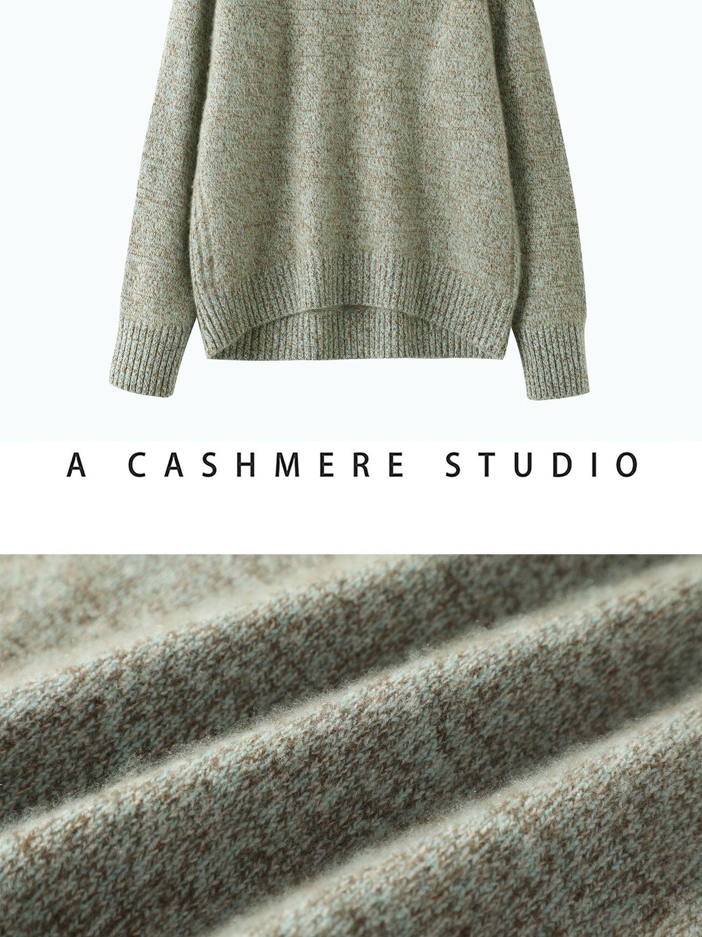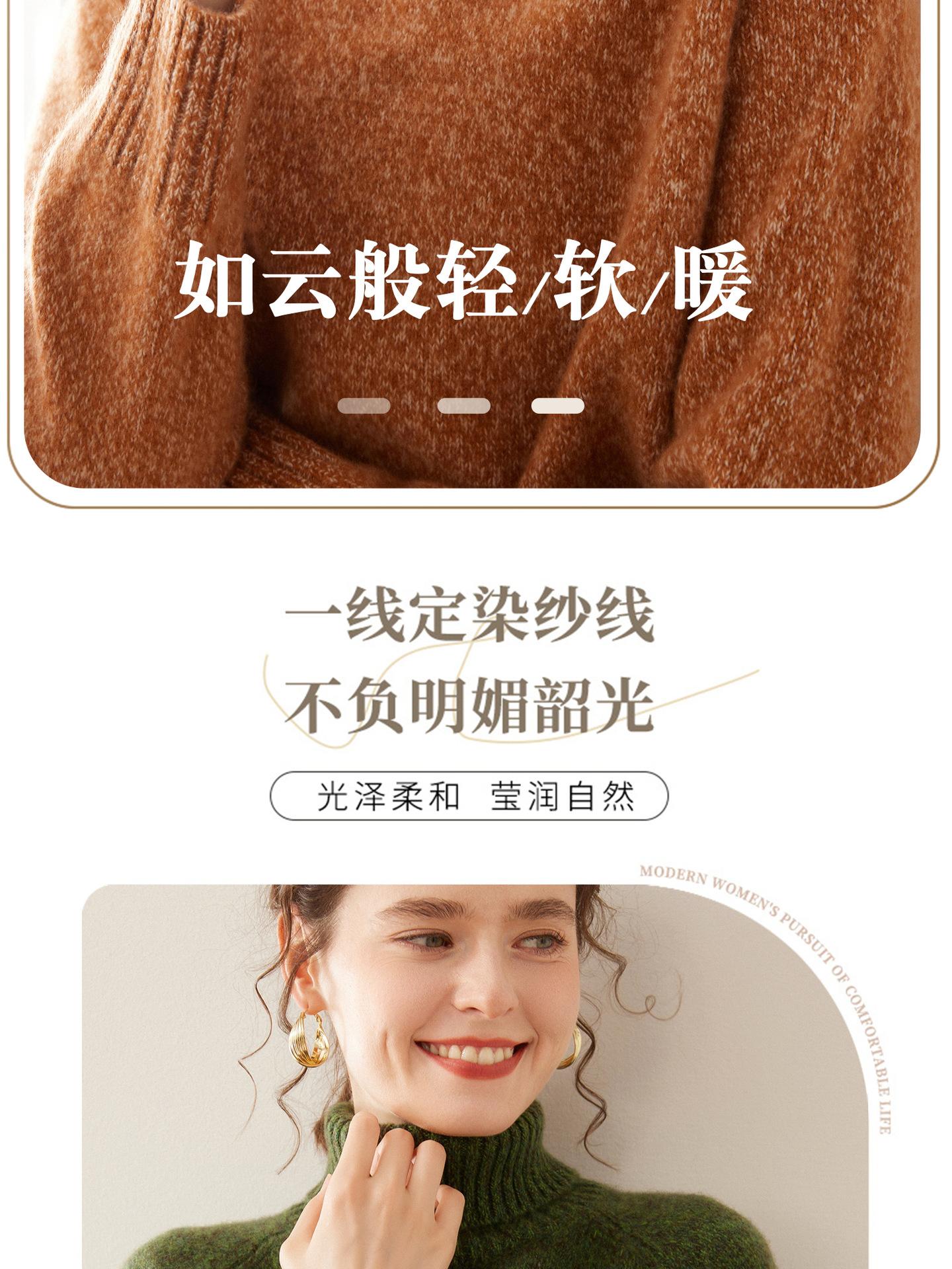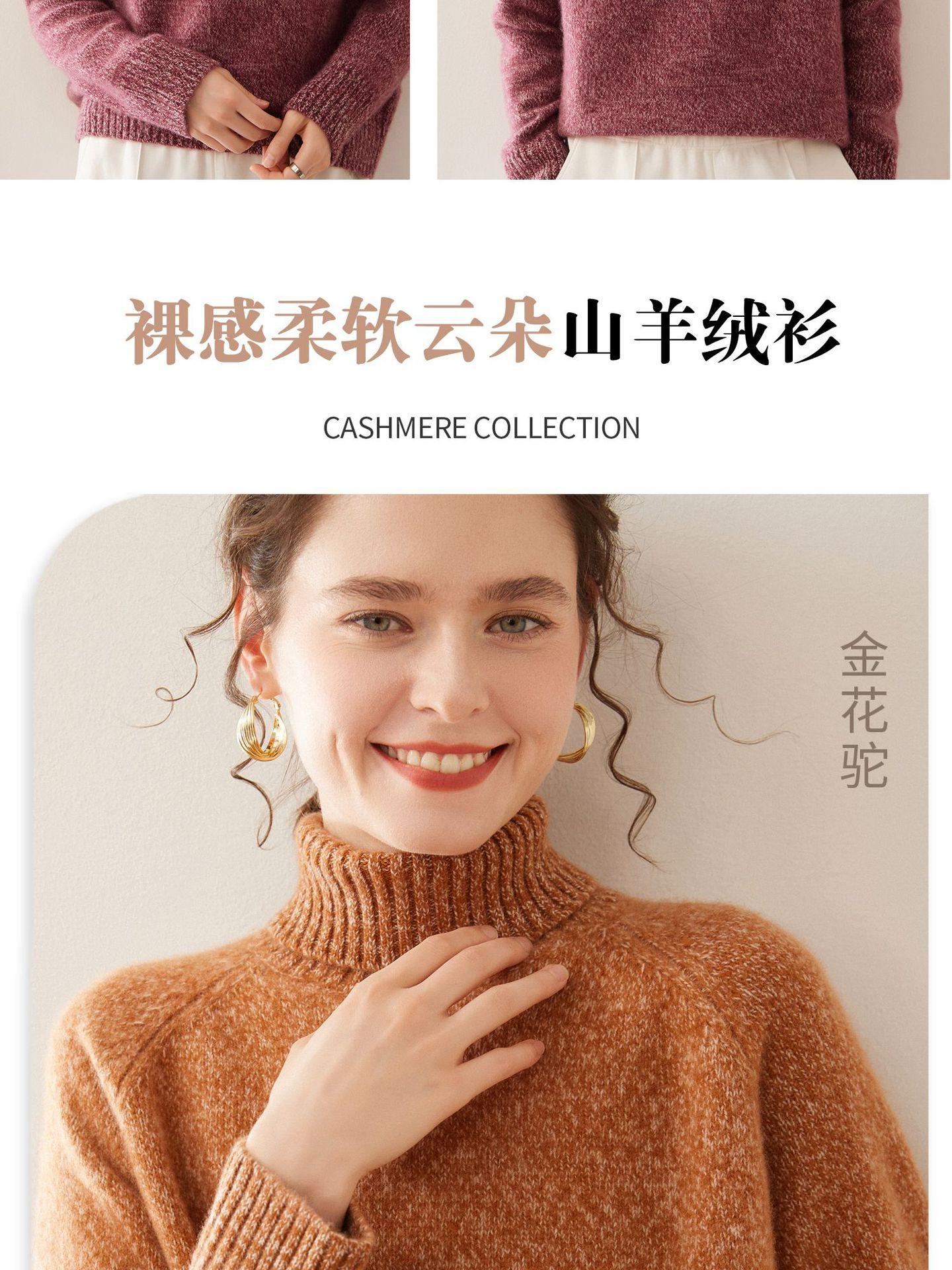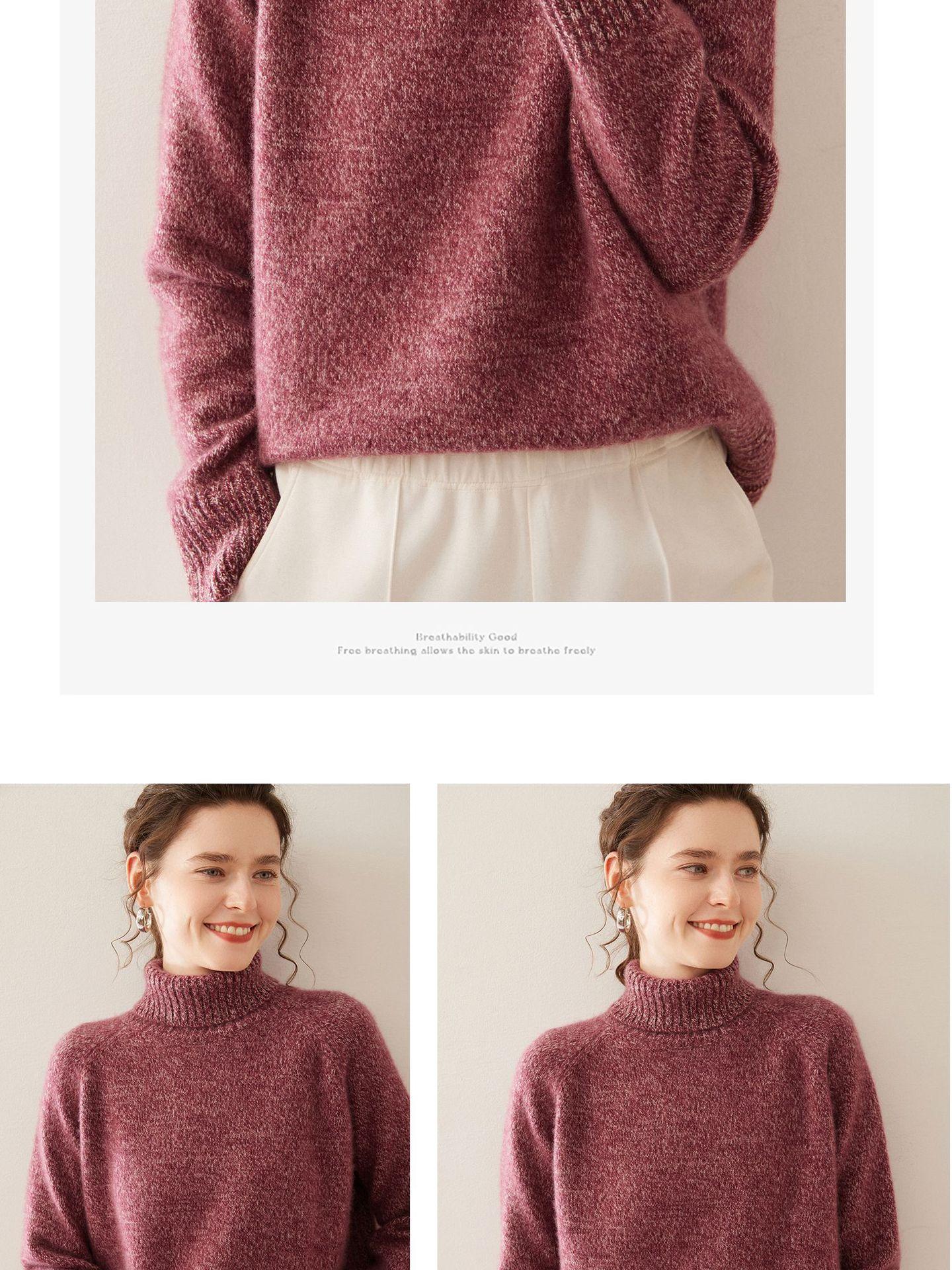 Hilo fantasía de tres hebras engrosado suéter de otoño e invierno tejido cuello alto suéter de cachemira mujer manga raglán suelto suéter base de cachemira mujer