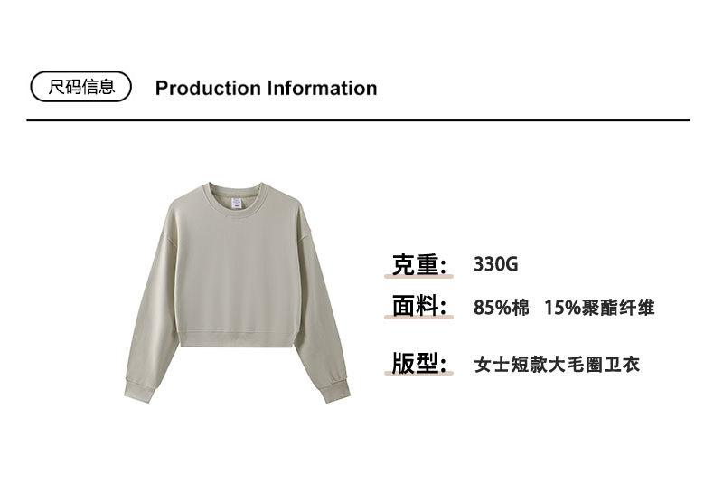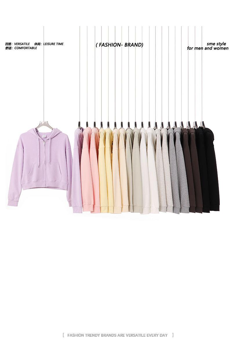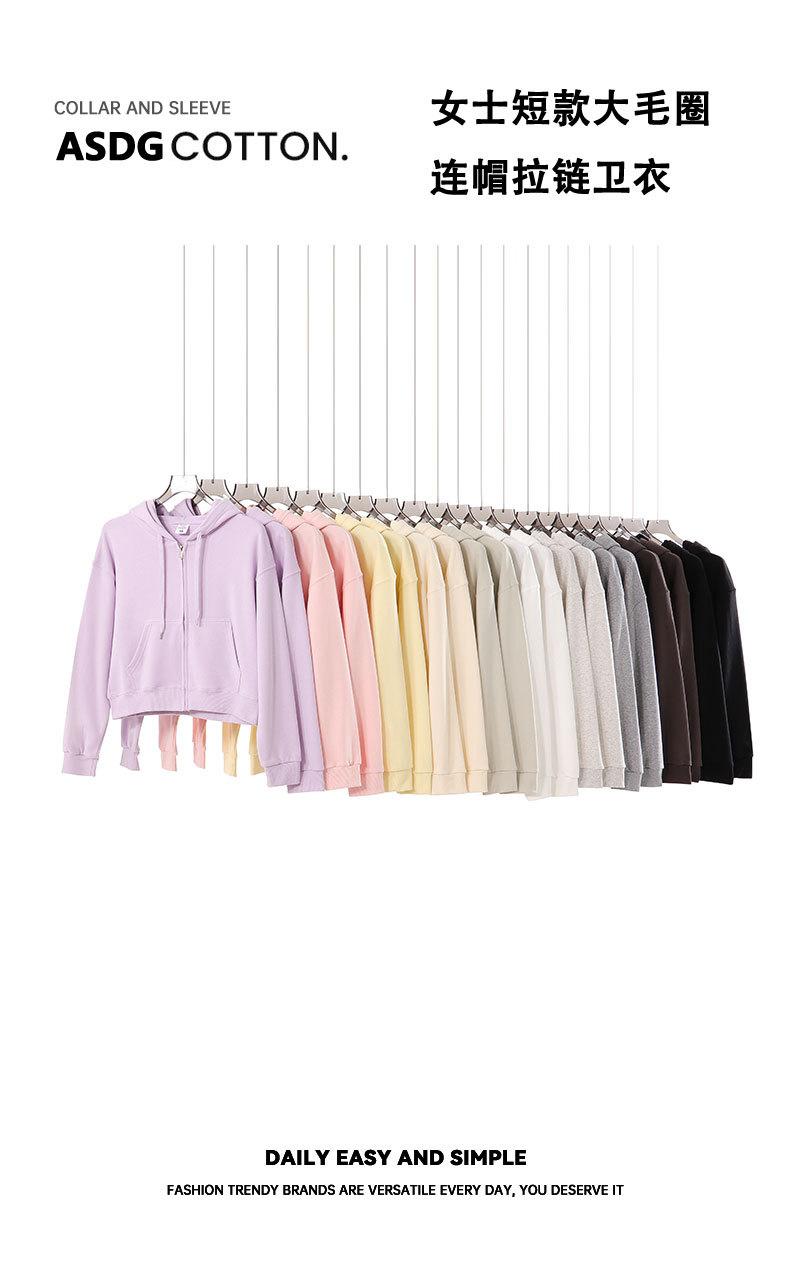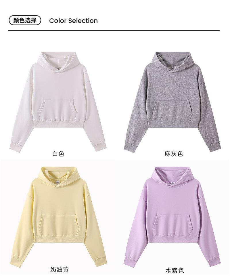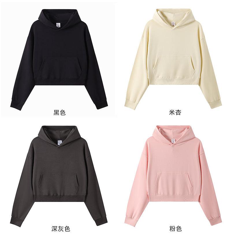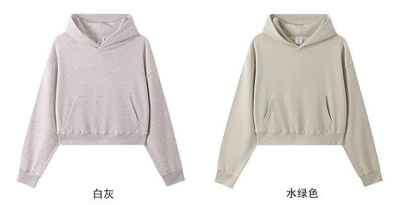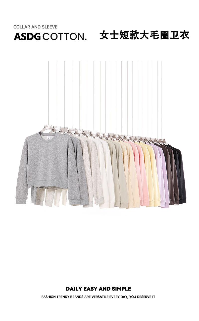 Estilo Otoño Temprano Peso Pesado 330G Felpa Grande Cuello Redondo Sudadera Corta para Mujer Marca de Moda Color Sólido Sudadera con Capucha y Cremallera al por Mayor