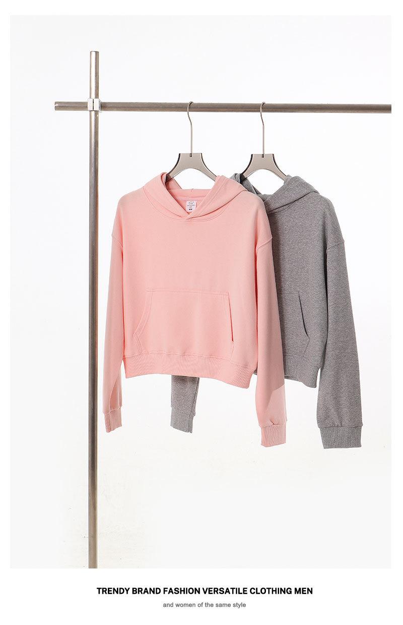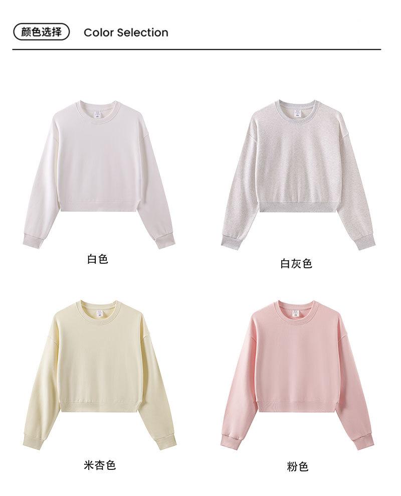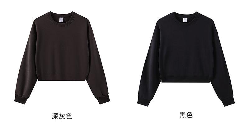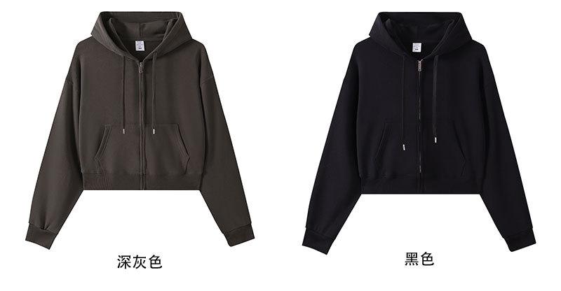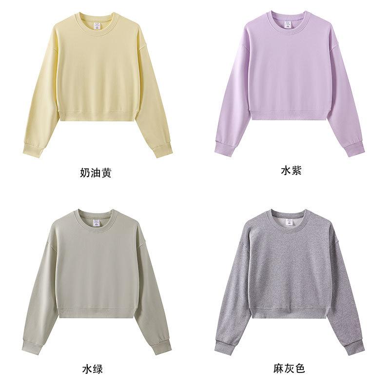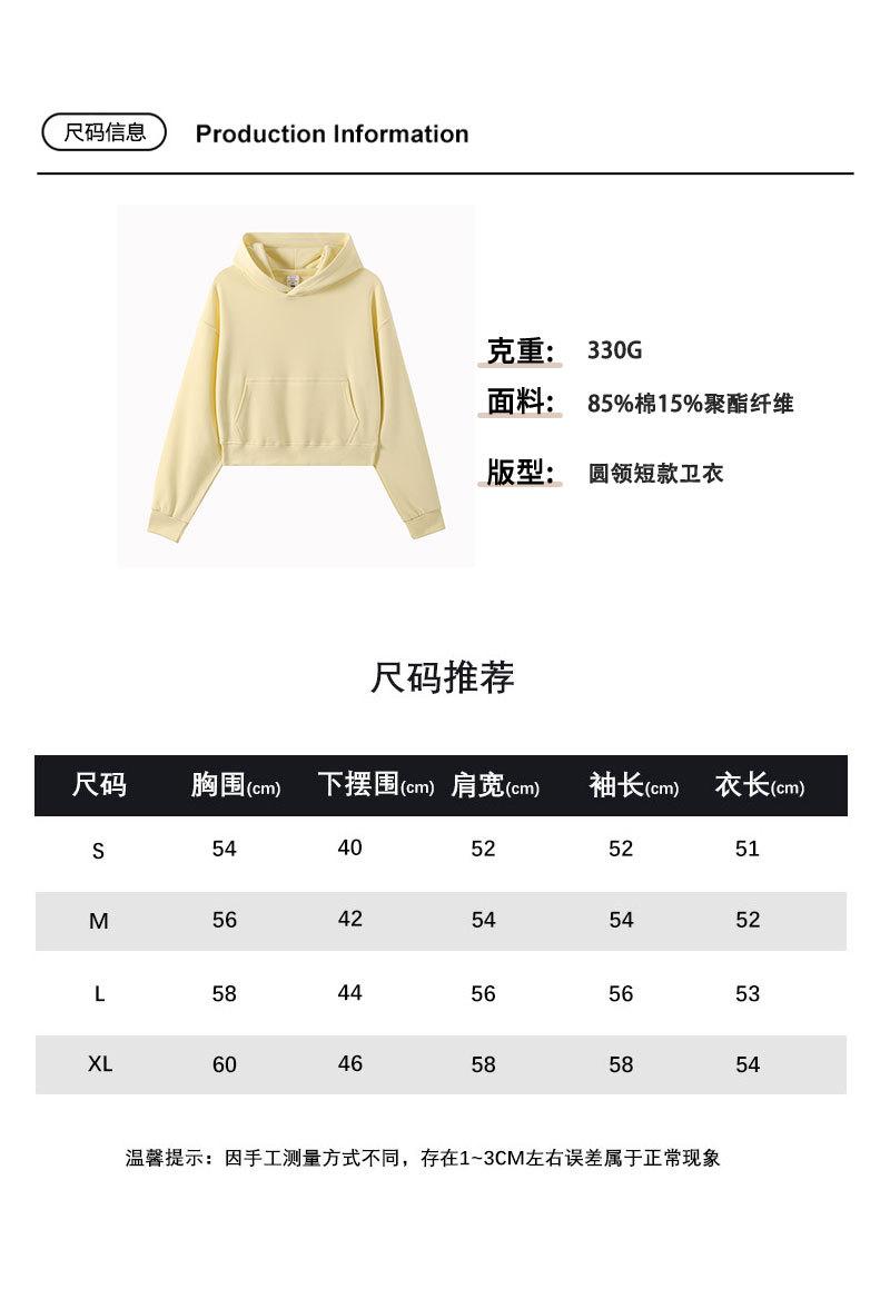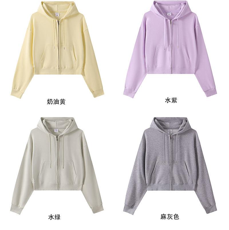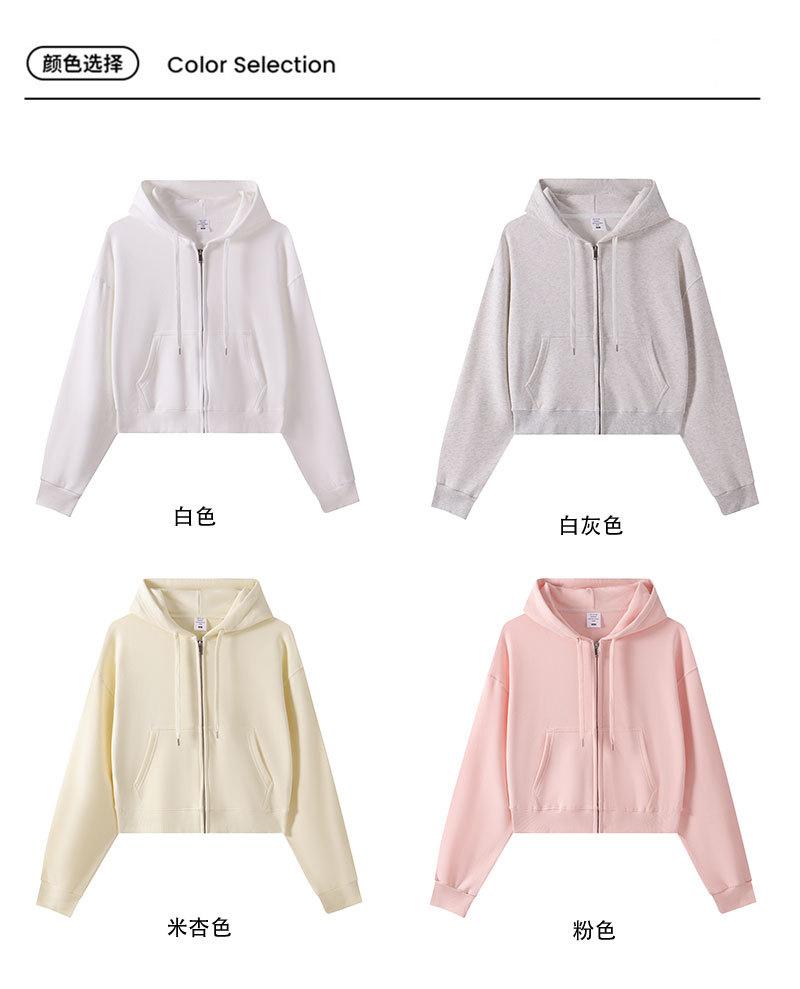 Estilo Otoño Temprano Peso Pesado 330G Felpa Grande Cuello Redondo Sudadera Corta para Mujer Marca de Moda Color Sólido Sudadera con Capucha y Cremallera al por Mayor