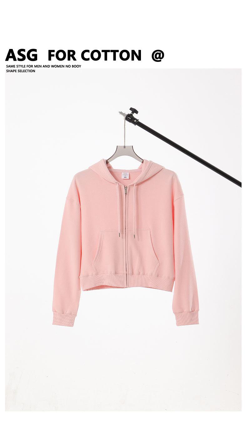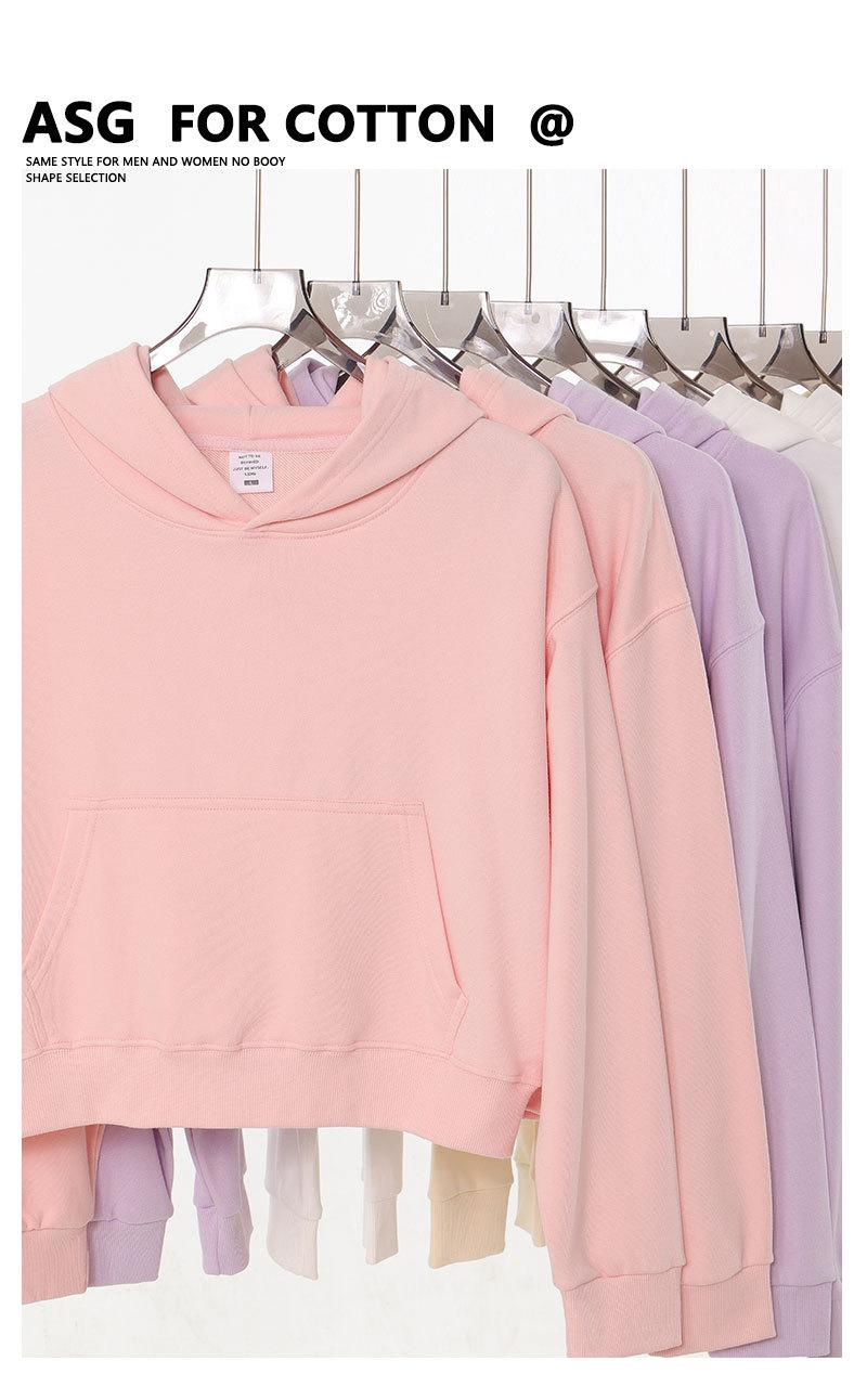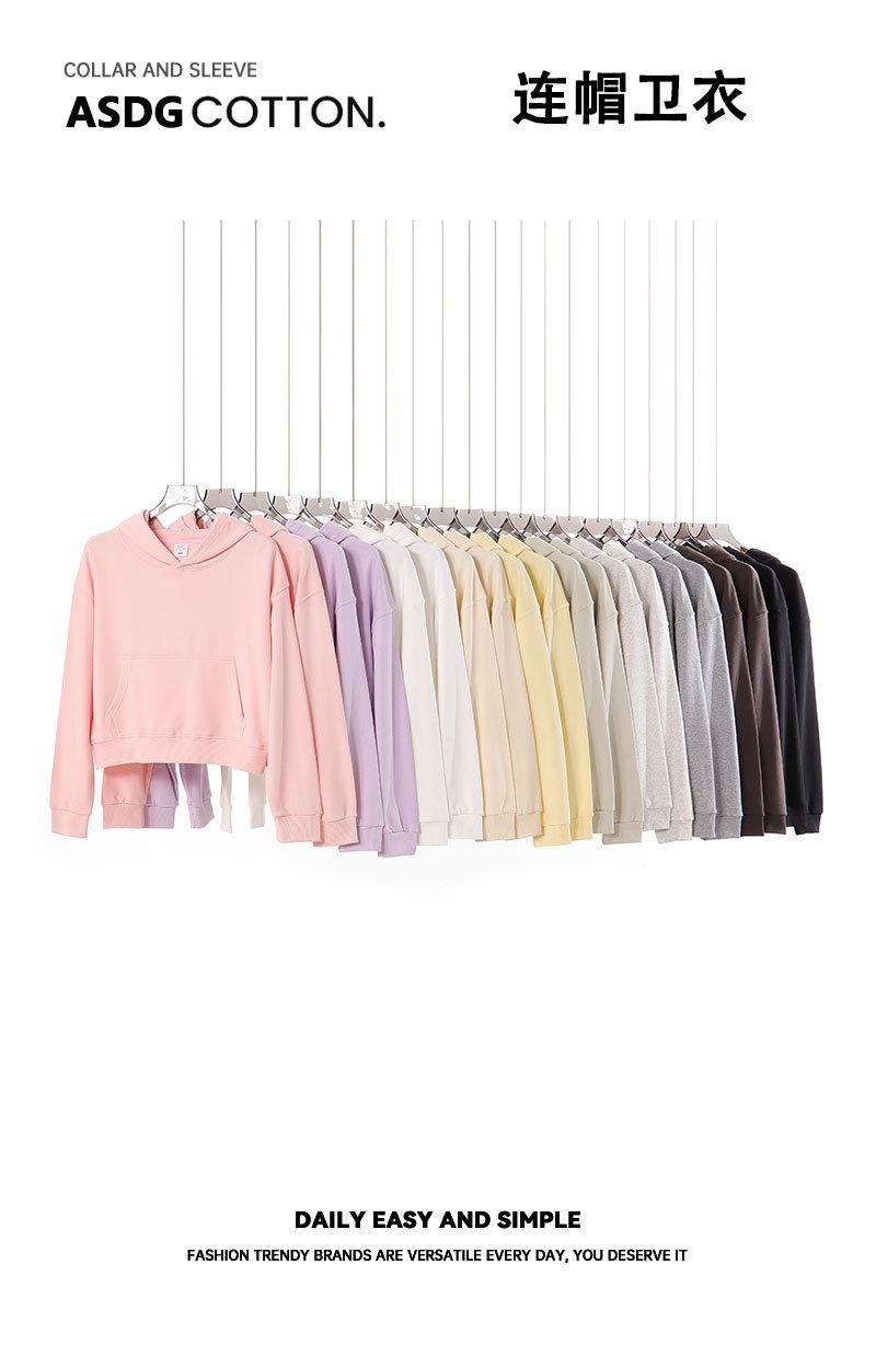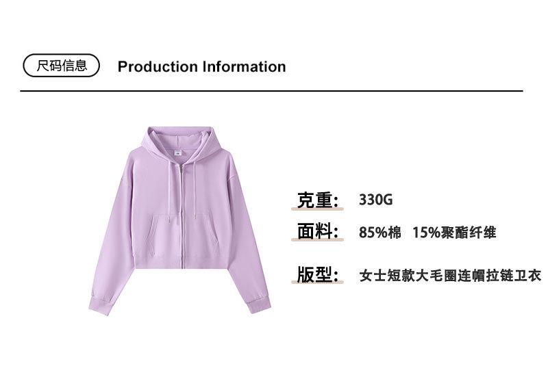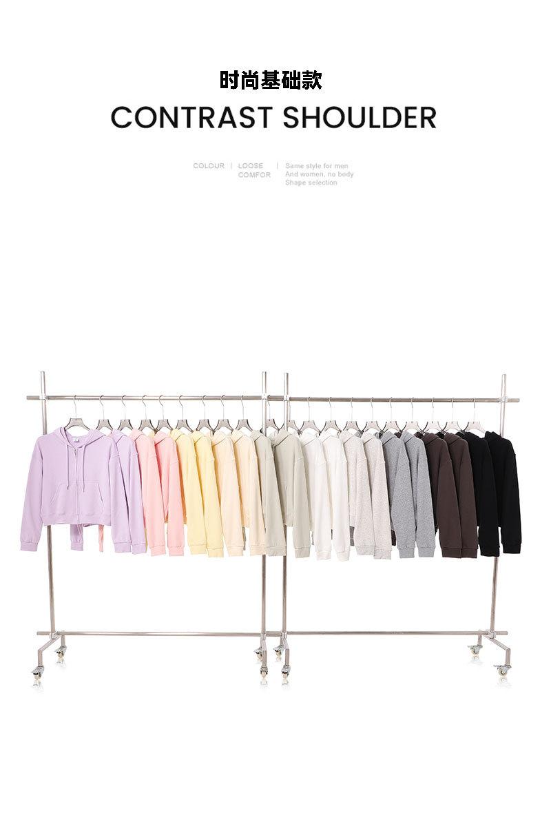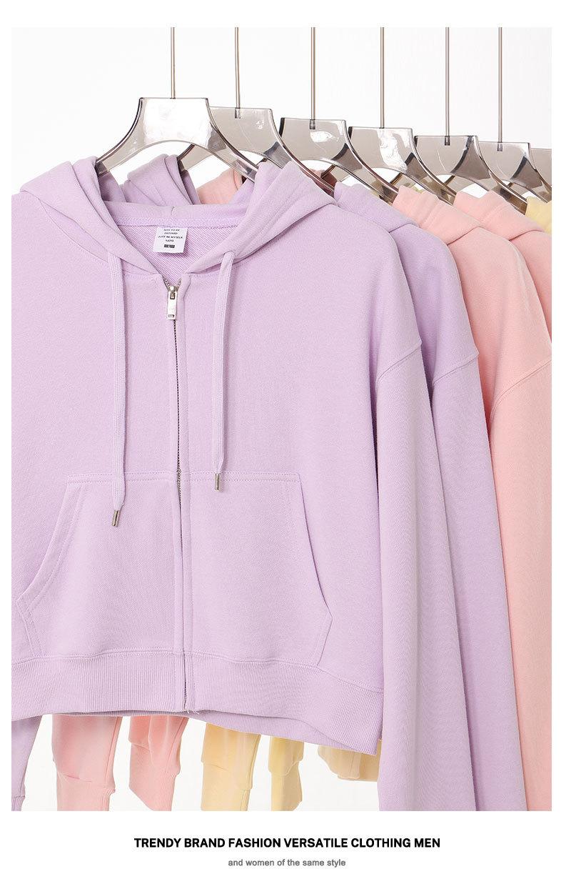 Estilo Otoño Temprano Peso Pesado 330G Felpa Grande Cuello Redondo Sudadera Corta para Mujer Marca de Moda Color Sólido Sudadera con Capucha y Cremallera al por Mayor