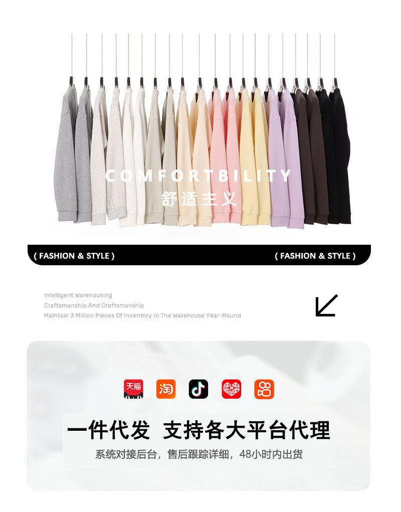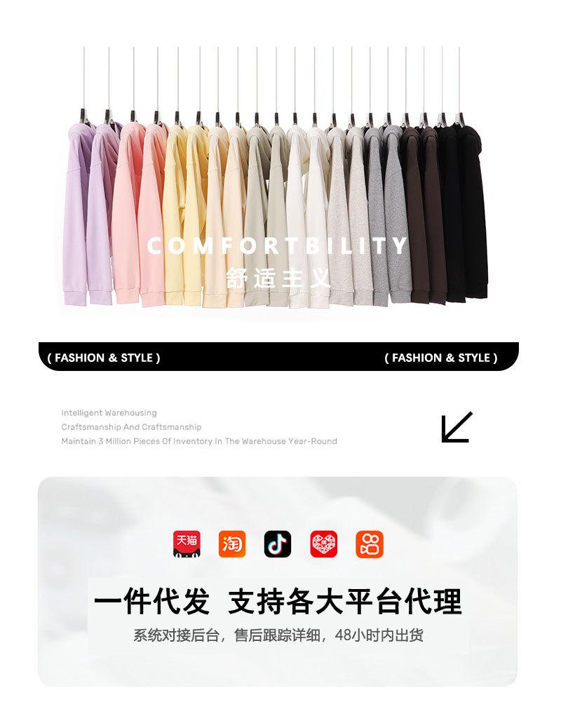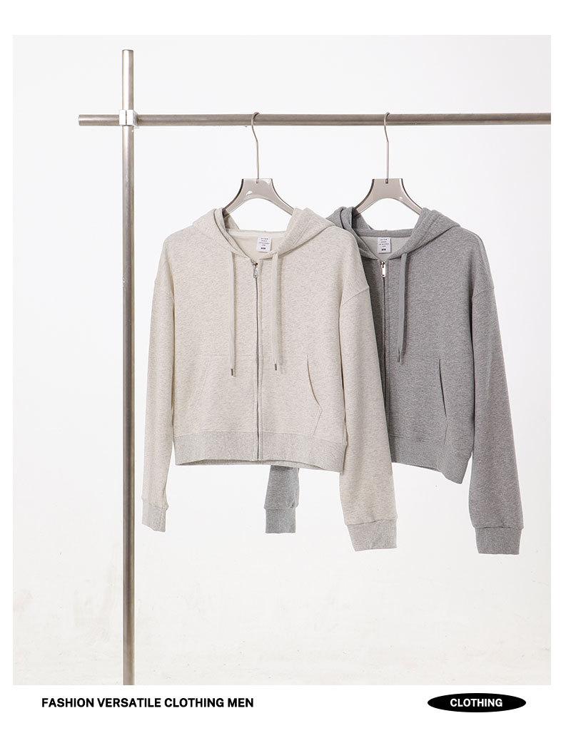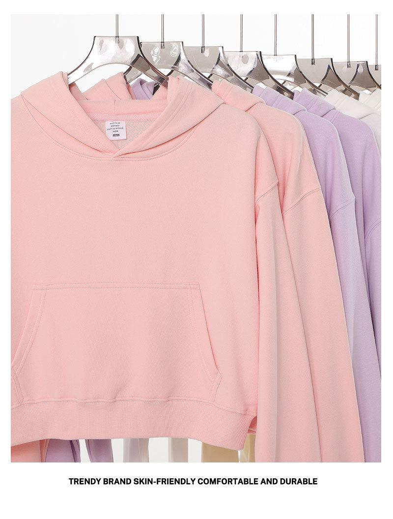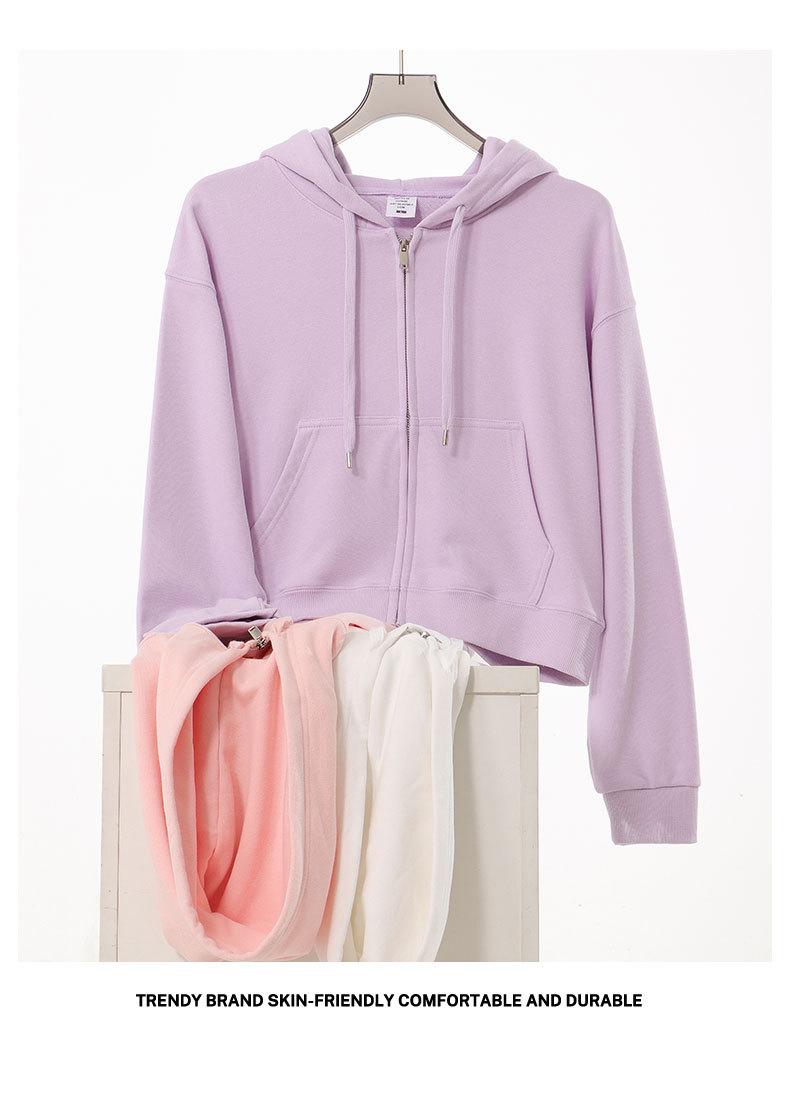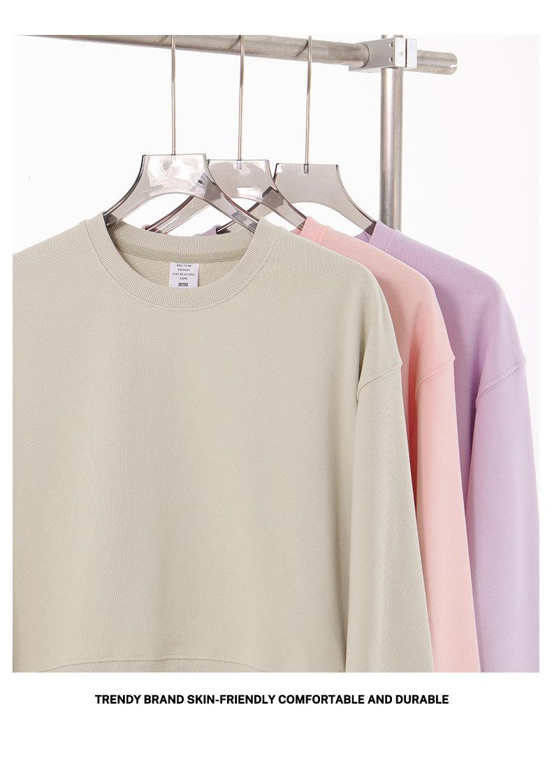 Estilo Otoño Temprano Peso Pesado 330G Felpa Grande Cuello Redondo Sudadera Corta para Mujer Marca de Moda Color Sólido Sudadera con Capucha y Cremallera al por Mayor