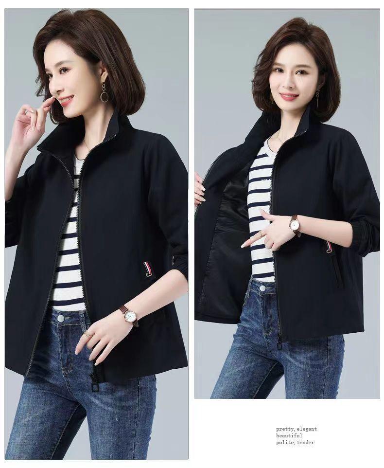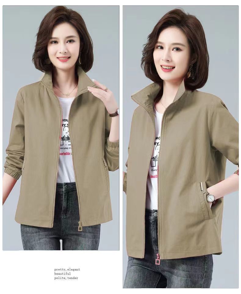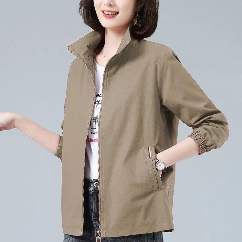 Chaqueta Corta Casual de Primavera y Otoño para Mujer 2025 Nueva Talla Grande Holgada Ropa de Madre de Mediana Edad Cuello Mao Chaqueta Adelgazante Top Gabardina