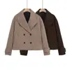 Moda femenina europea y americana transfronteriza AliExpress INS estilo caliente casual versátil minimalista abrigo corto de lana de doble botonadura