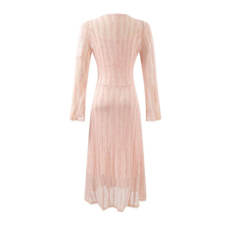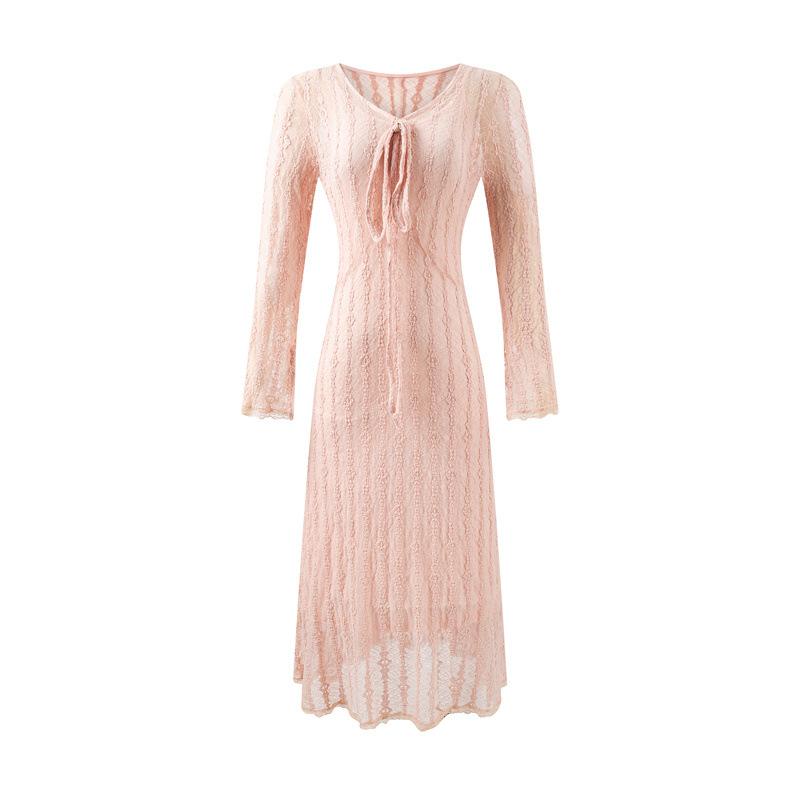Vestido Midi Elegante y Adelgazante de Malla Jacquard Dulce Francés de Manga Larga Otoño 2025 Nuevo Temperamento