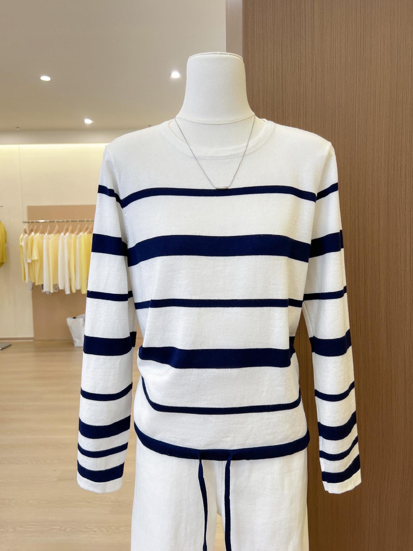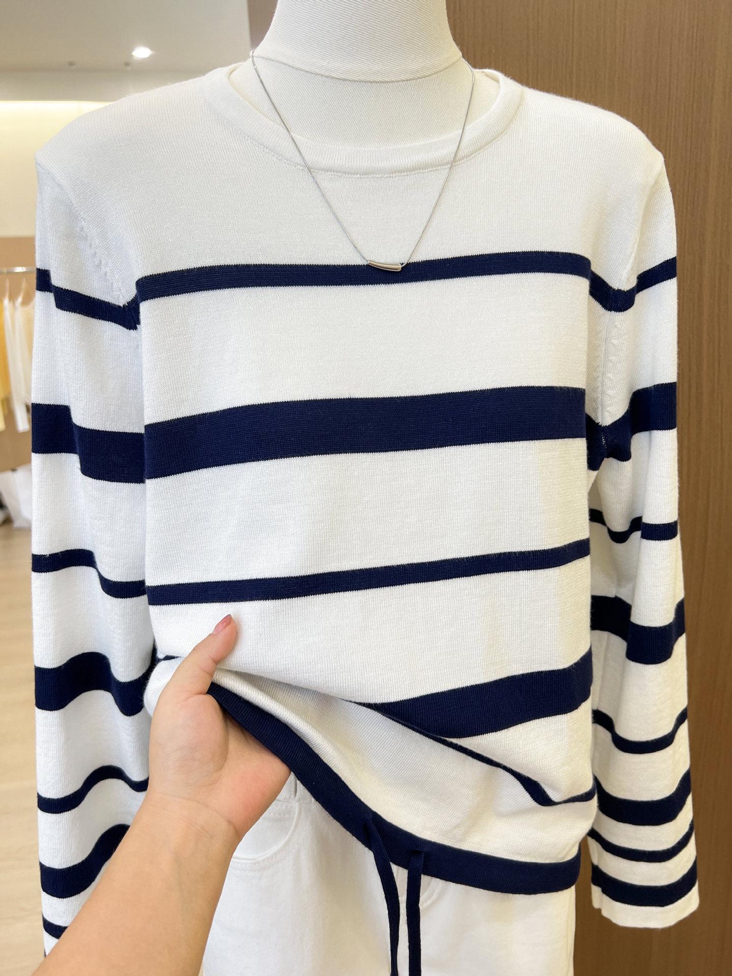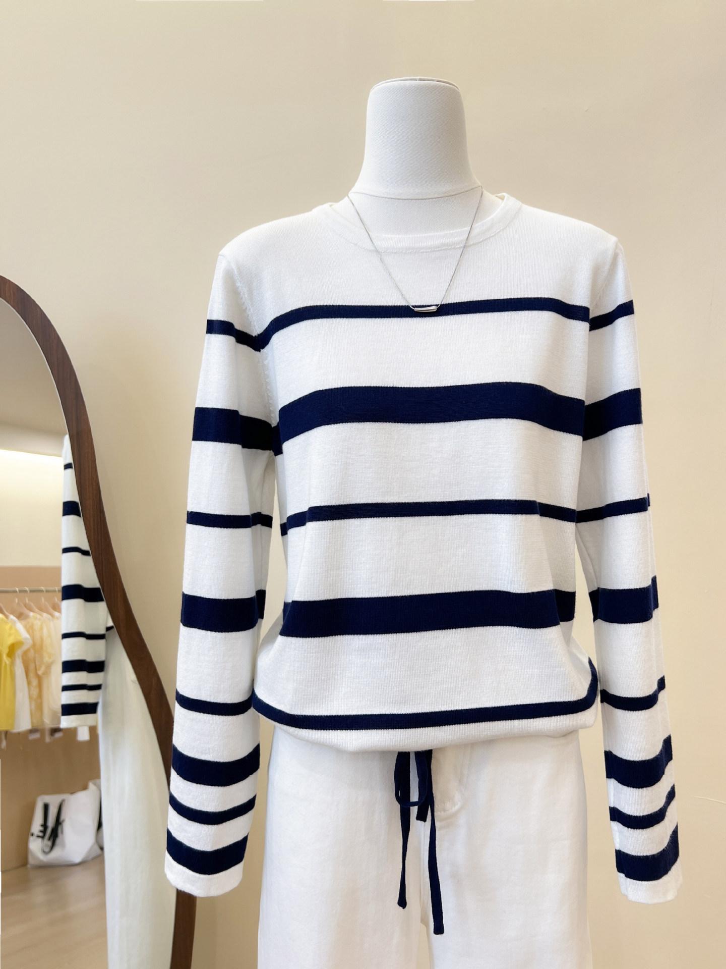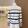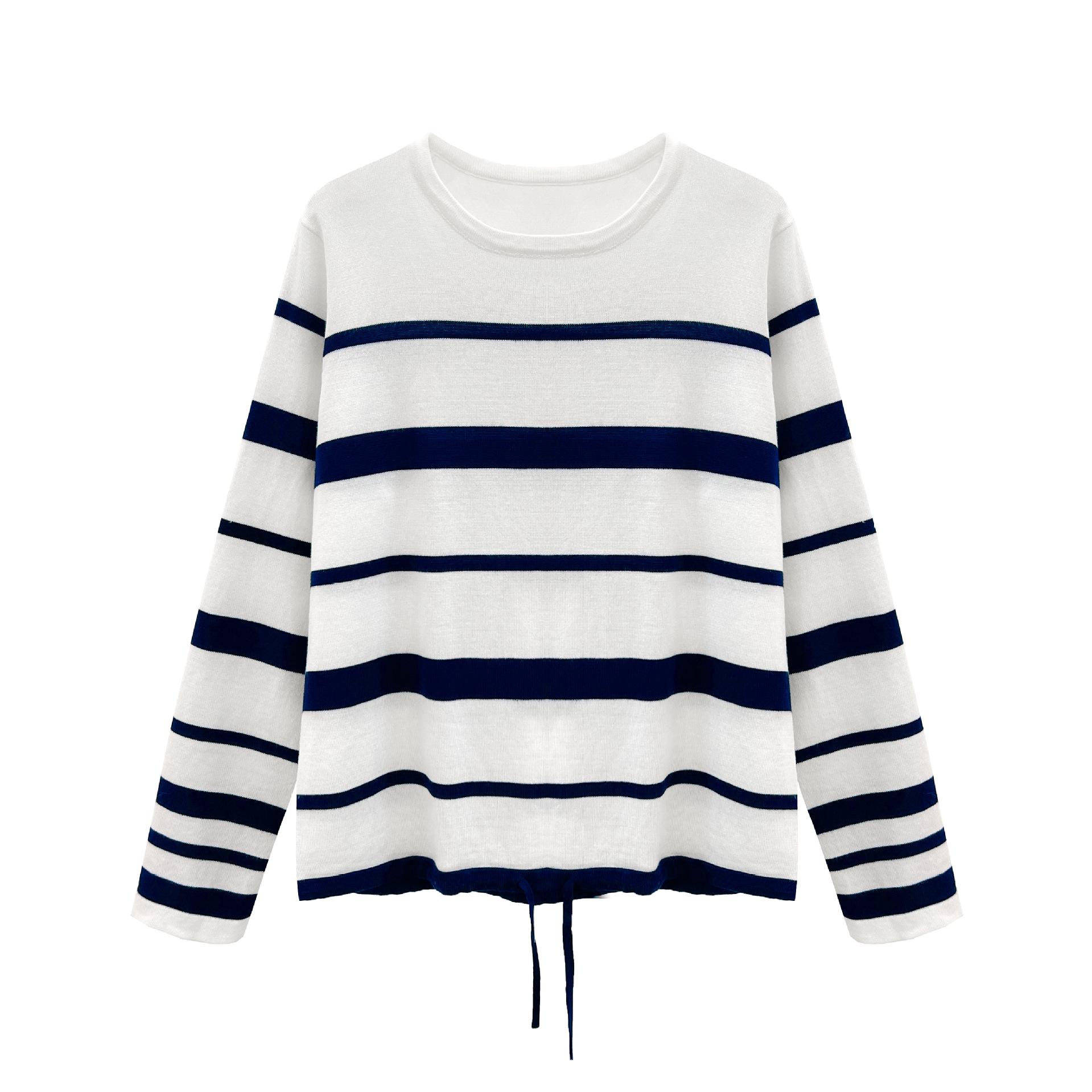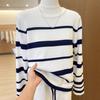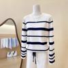 Artículo popular de alta calidad de Guangzhou Shisanhang~Otoño 2025 para usar solo top de rayas azul marino camiseta chic de manga larga para mujer