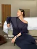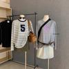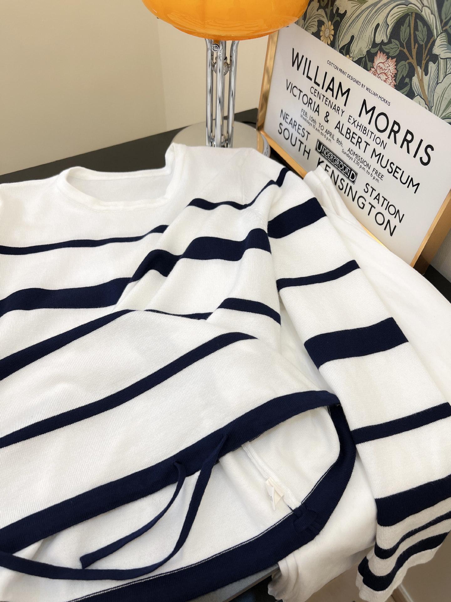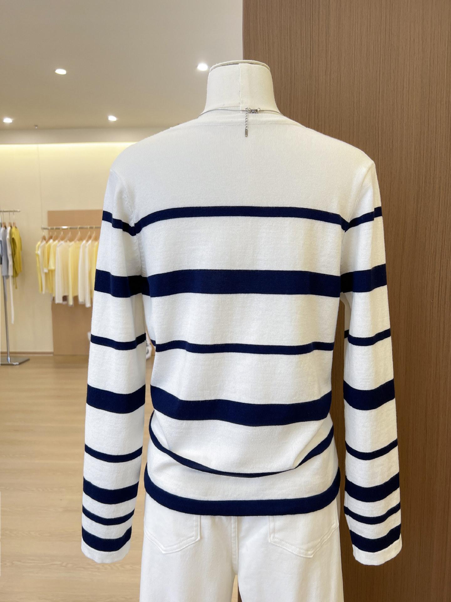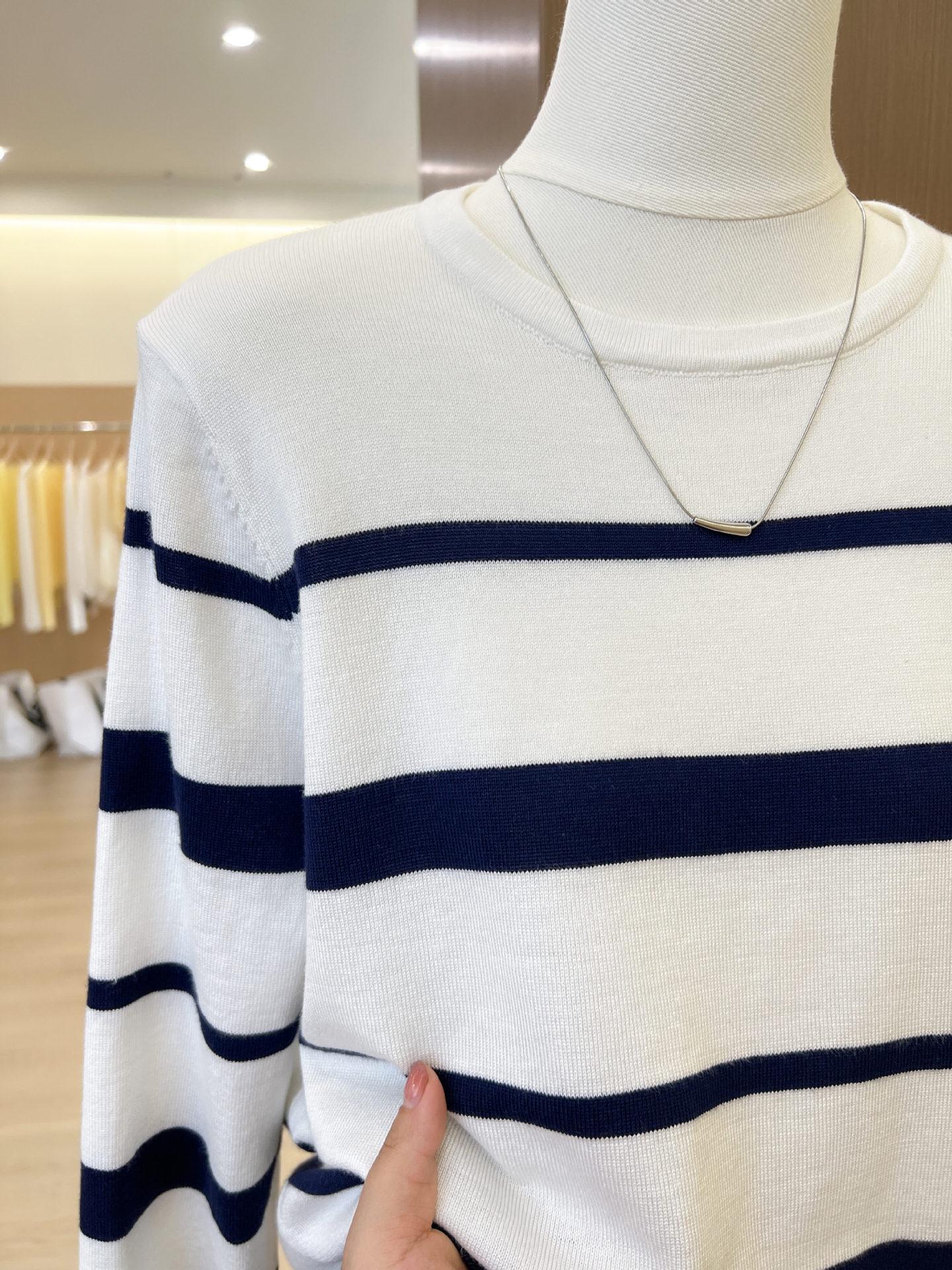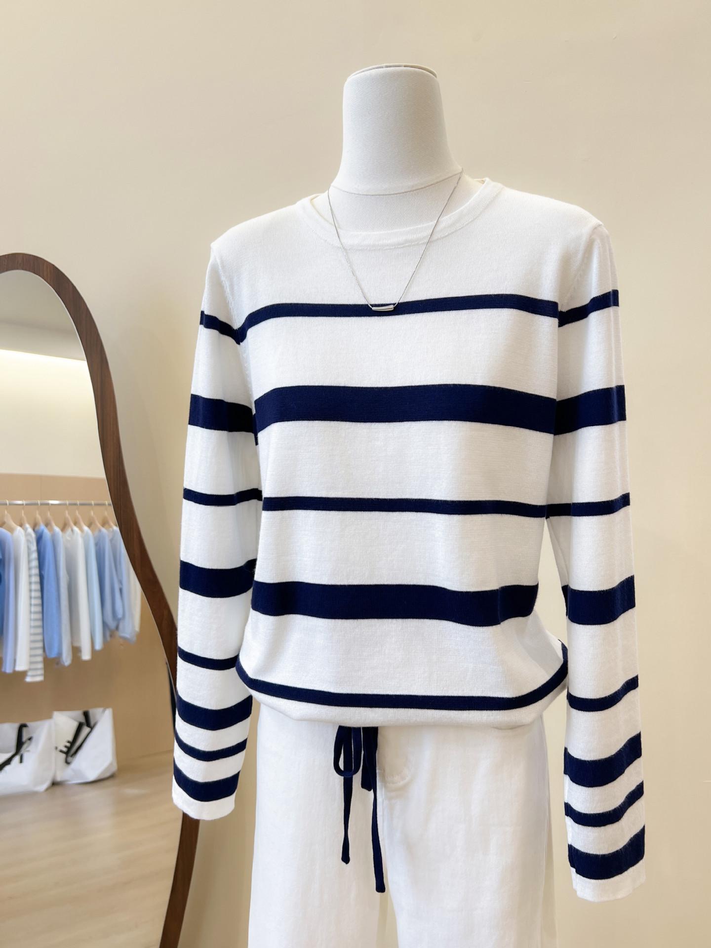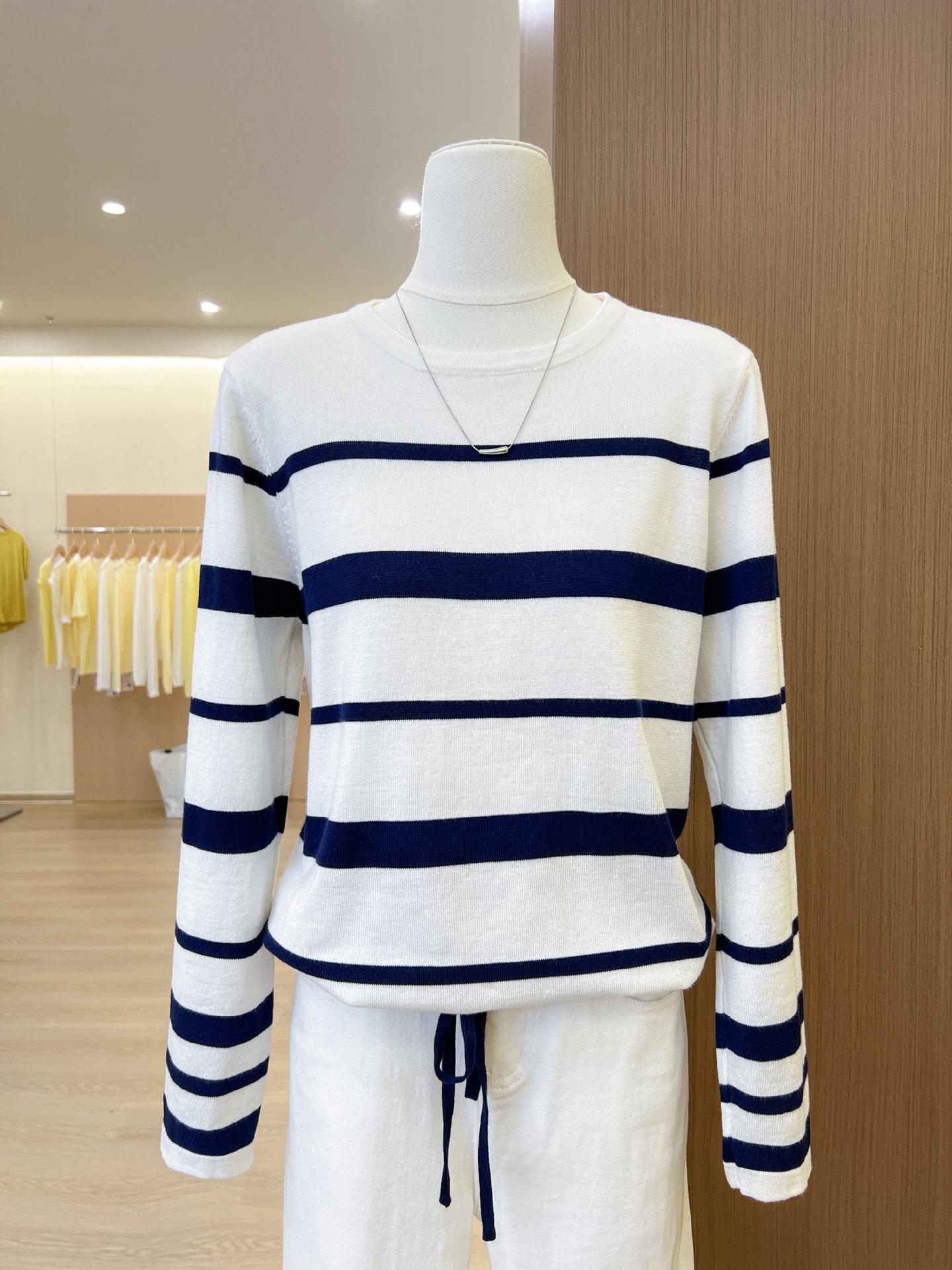Artículo popular de alta calidad de Guangzhou Shisanhang~Otoño 2025 para usar solo top de rayas azul marino camiseta chic de manga larga para mujer