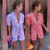 2024 Europeo y Americano Transfronterizo de Verano Sexy Encaje con Cordones Estampado Tirantes Pantalones Cortos Mono