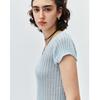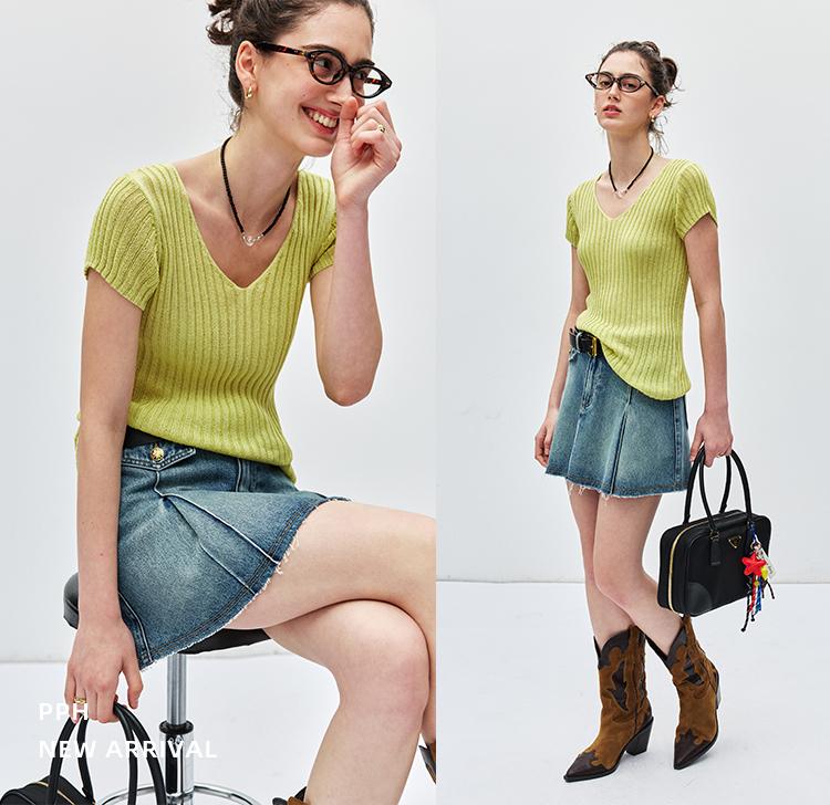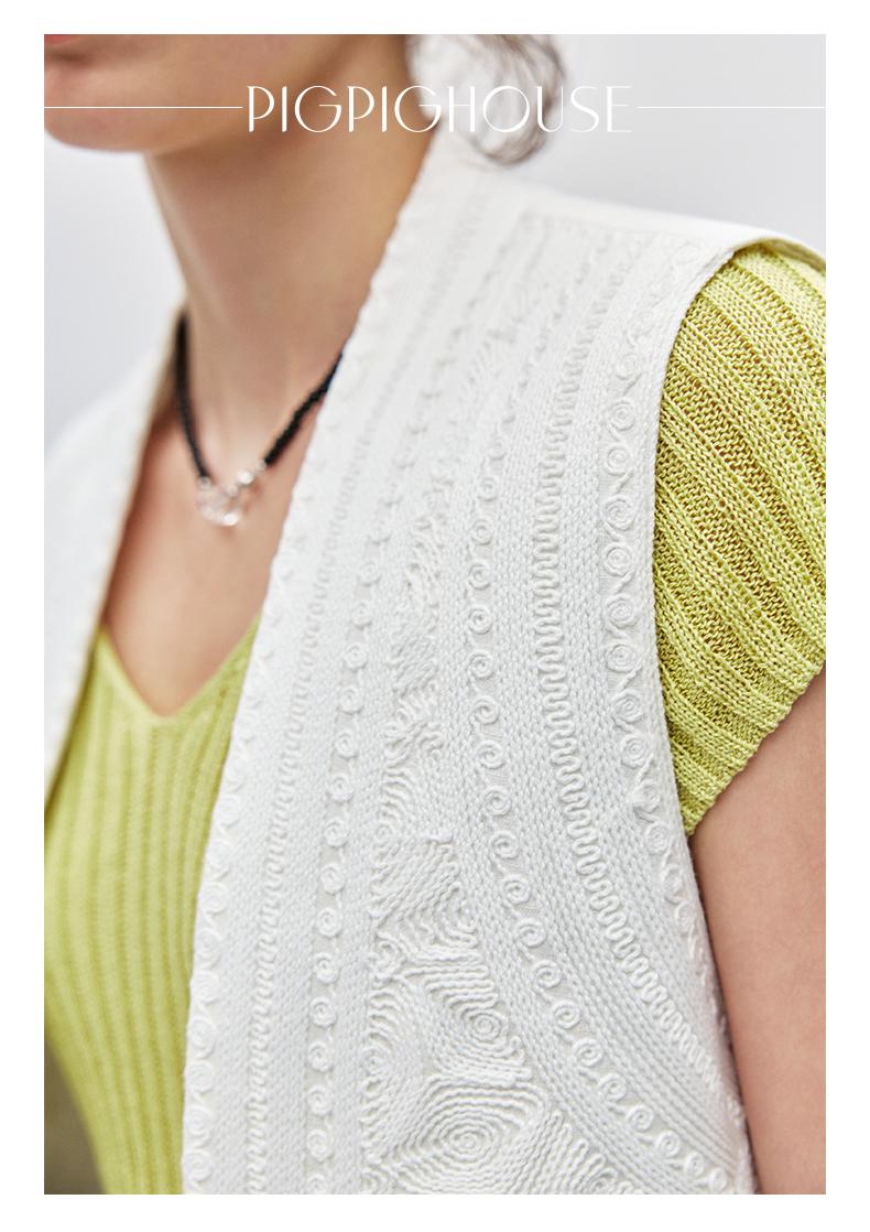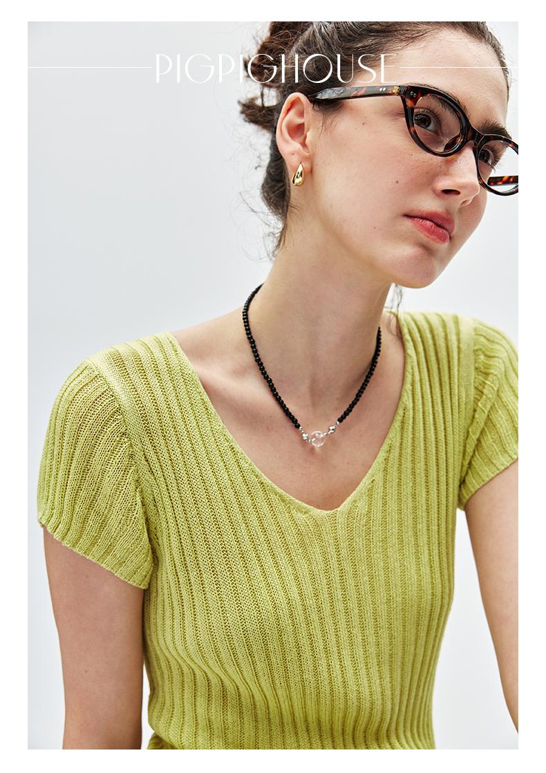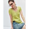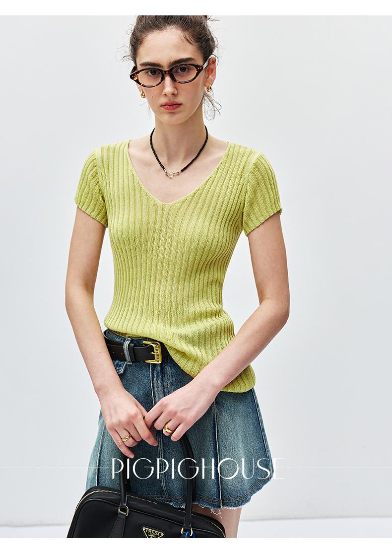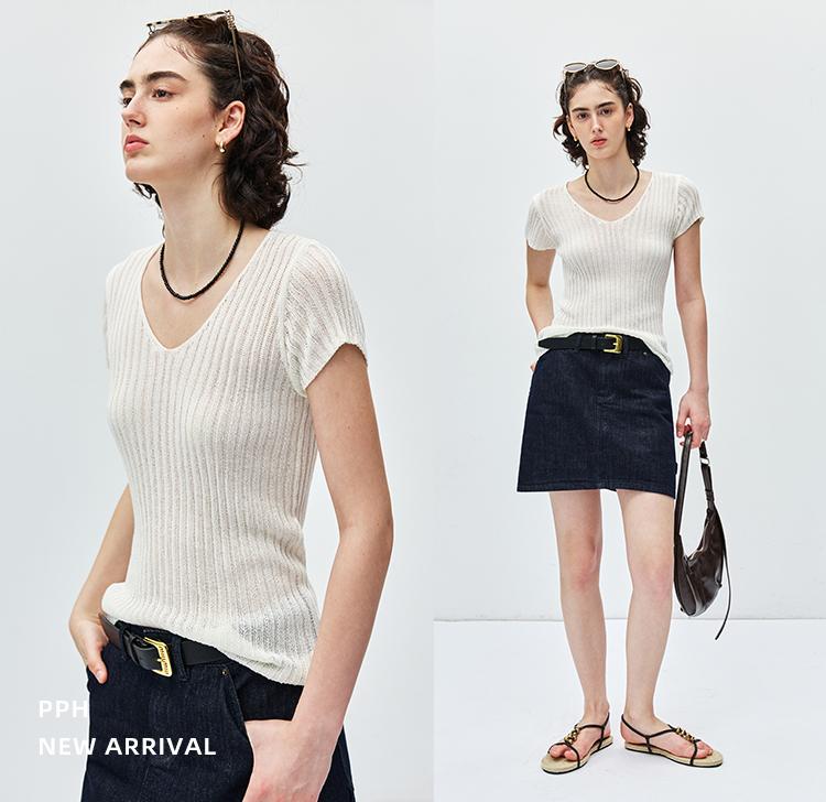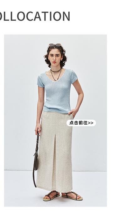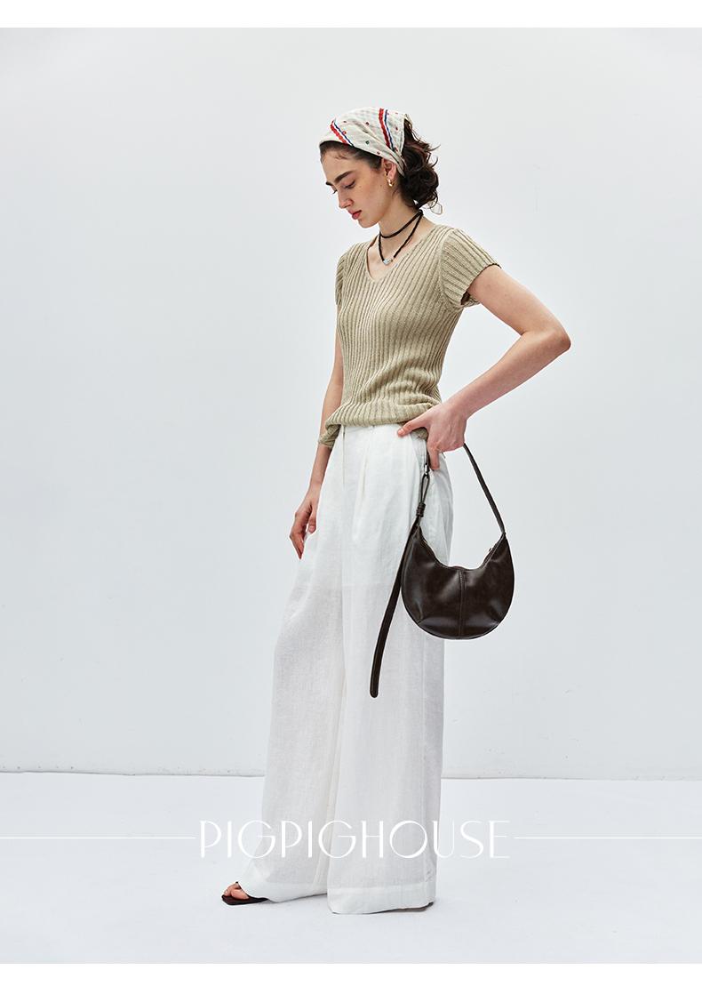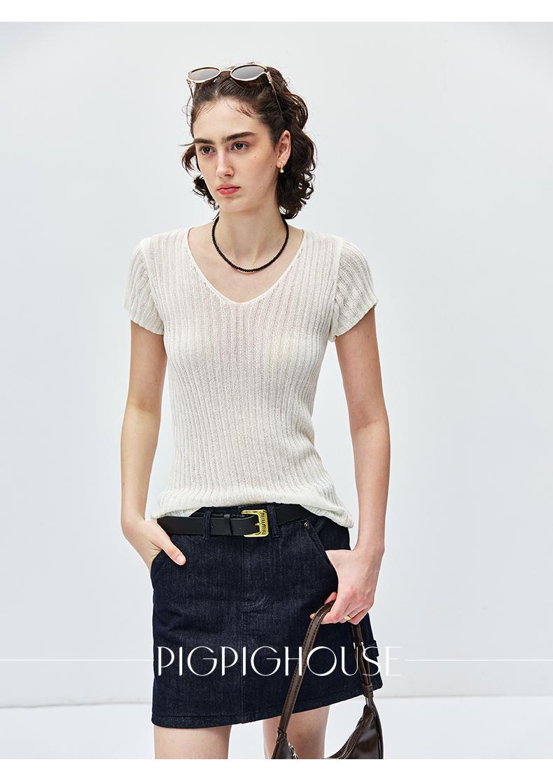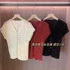 [Sensación de Respiración] Verano Tencel Lino Sencillo Commuter Versátil Cuello en V Punto Canalé Cárdigan Top para Mujer