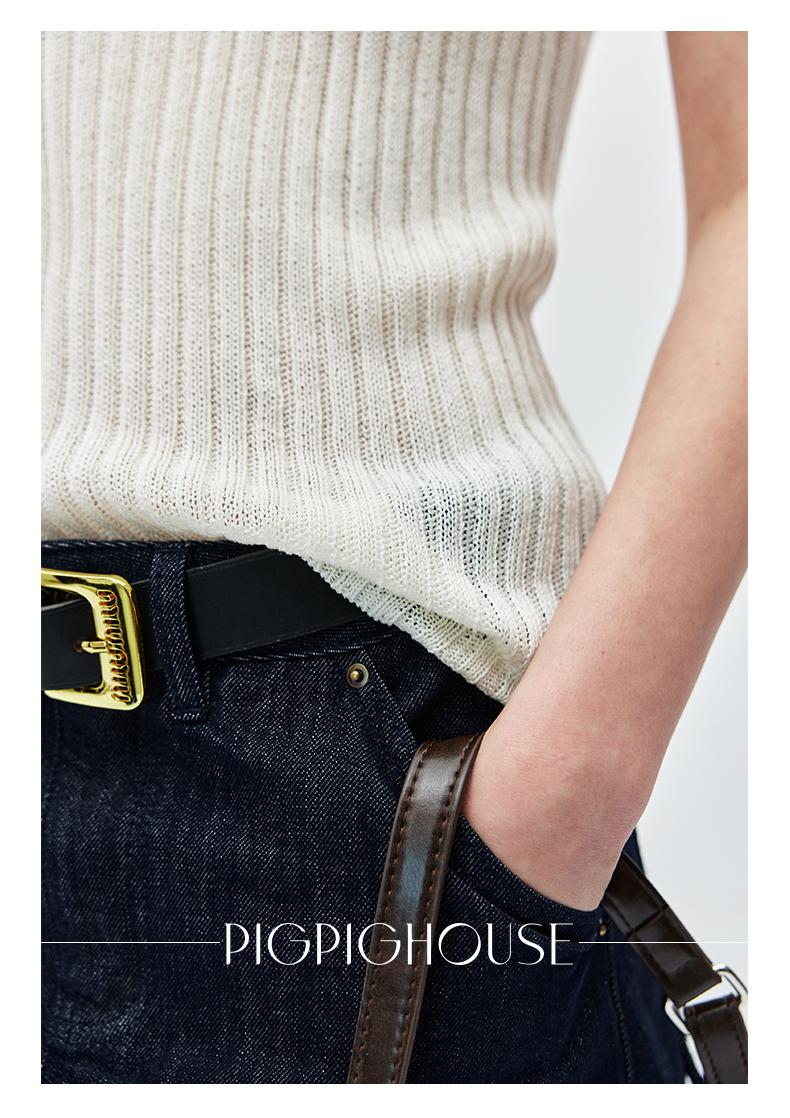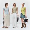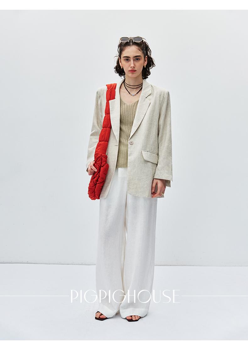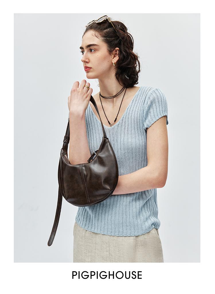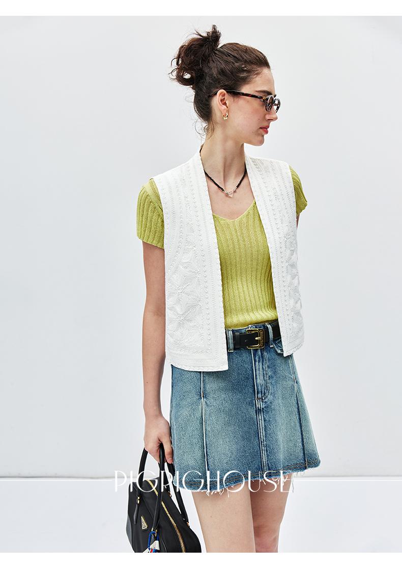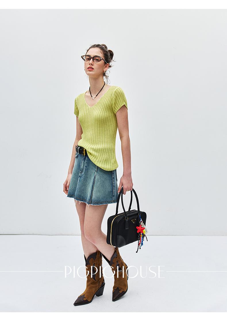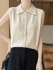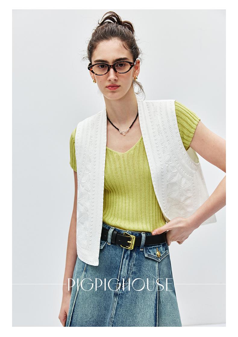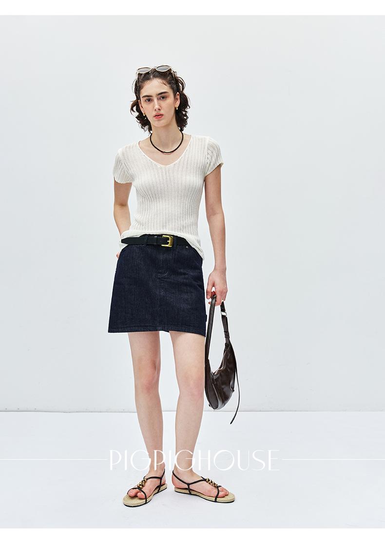 [Sensación de Respiración] Verano Tencel Lino Sencillo Commuter Versátil Cuello en V Punto Canalé Cárdigan Top para Mujer