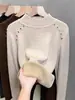 Suéter de cuello alto para mujer otoño e invierno 2025 nuevo corto holgado color sólido capa interior manga larga engrosado damas camisa básica de punto