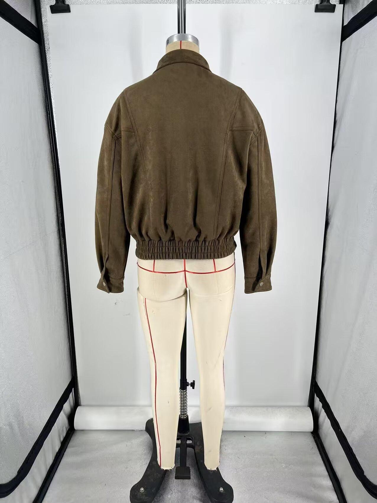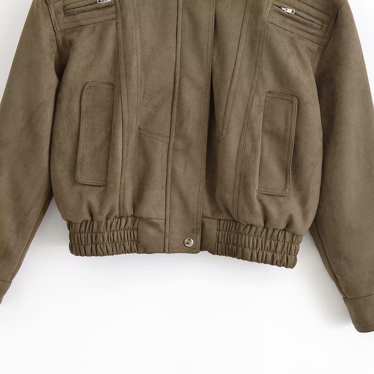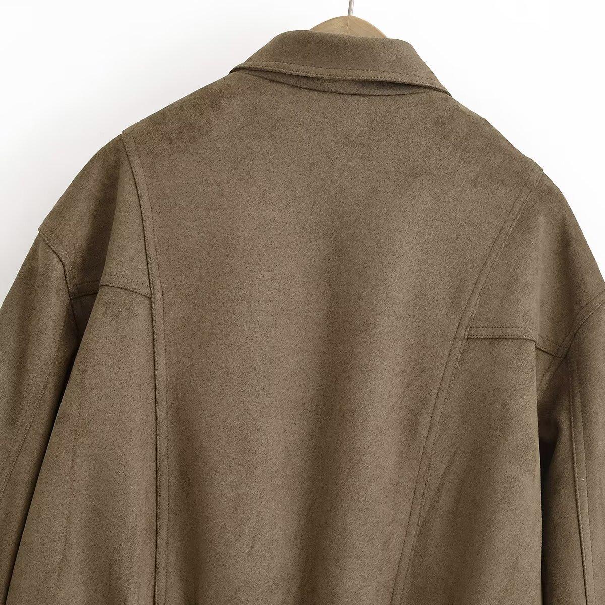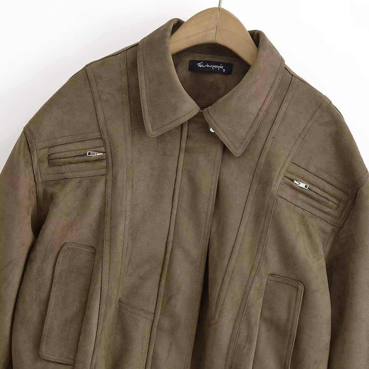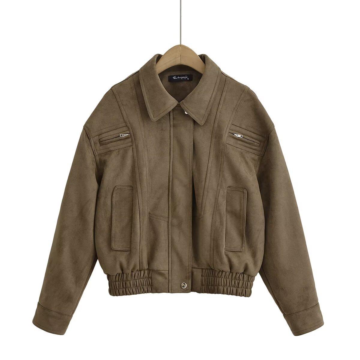 Chaqueta Abrigo de Motociclista para Mujer de Moda Retro Americana Material de Gamuza 2025 Otoño Nuevas Llegadas Ropa de Mujer Transfronteriza al por Mayor