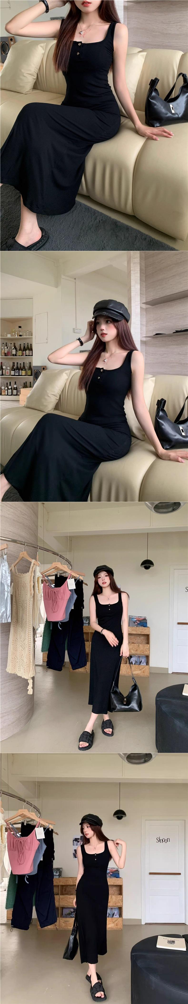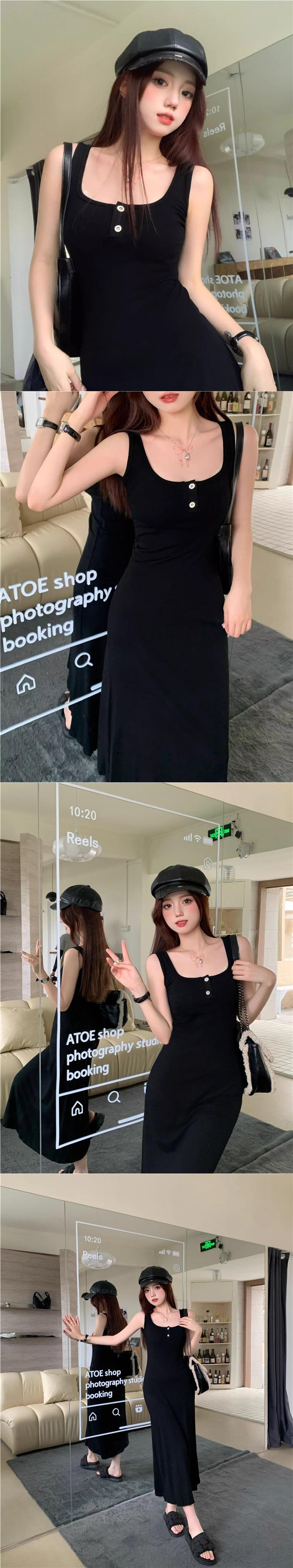 Vestido de tirantes finos sin mangas para chica sexy de comercio exterior transfronterizo al contado, ropa nueva para mujer, verano, ceñido a la cintura, adelgazante, versátil, largo medio