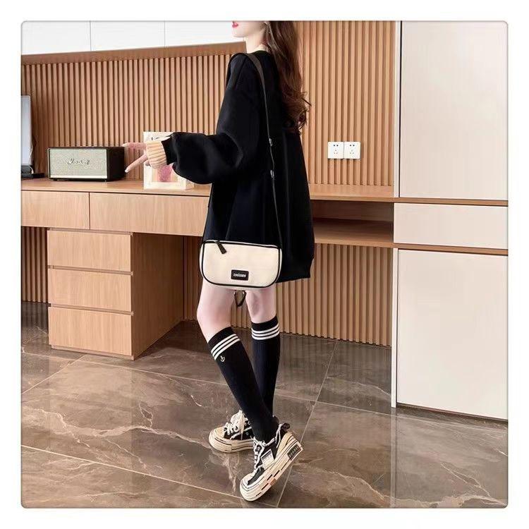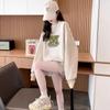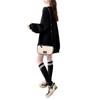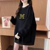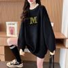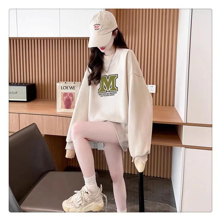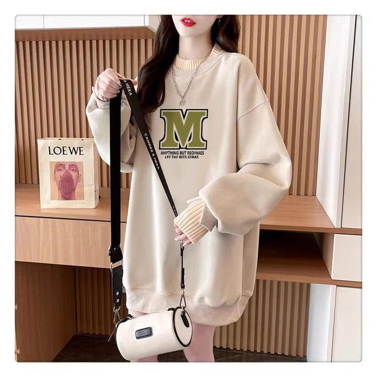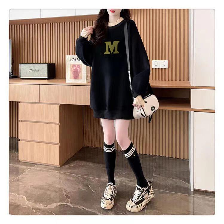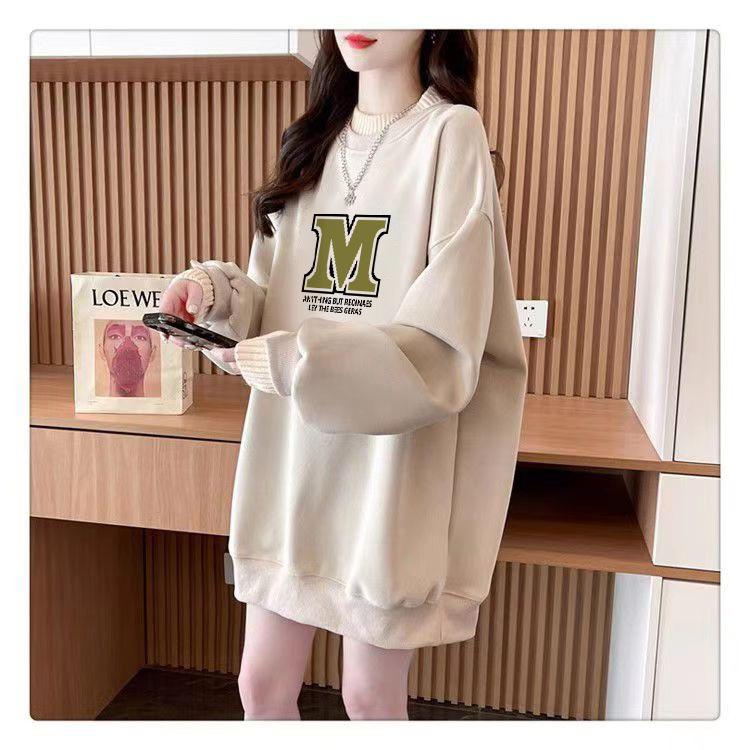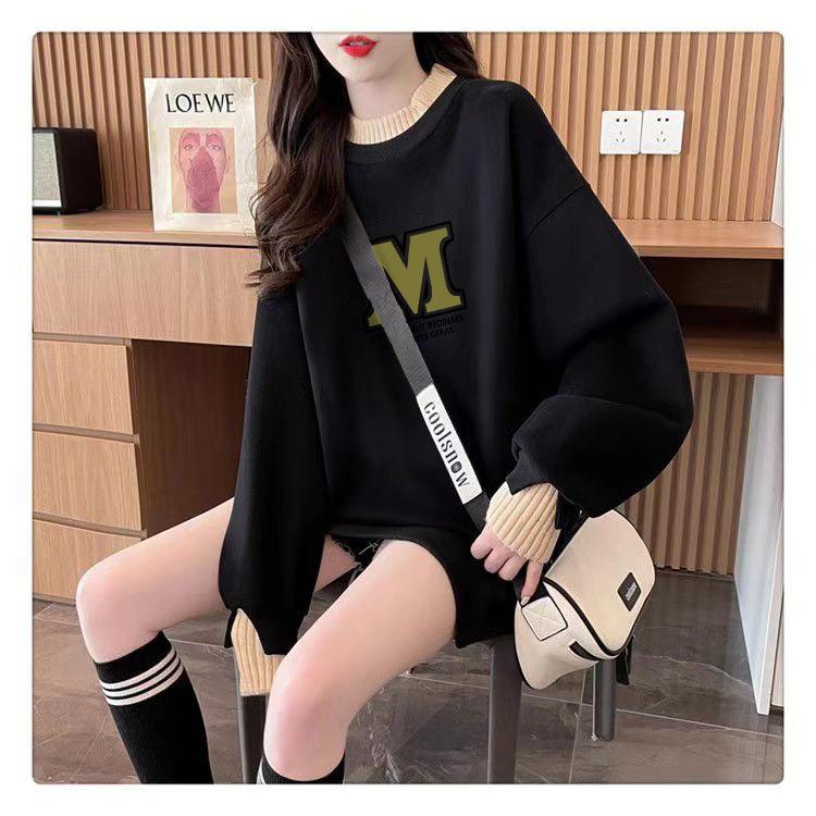 Suéter personalizado simple chic con estampado de letras, diseño de dos piezas falsas de otoño e invierno, oversize, grueso con forro polar, cuello medio alto