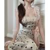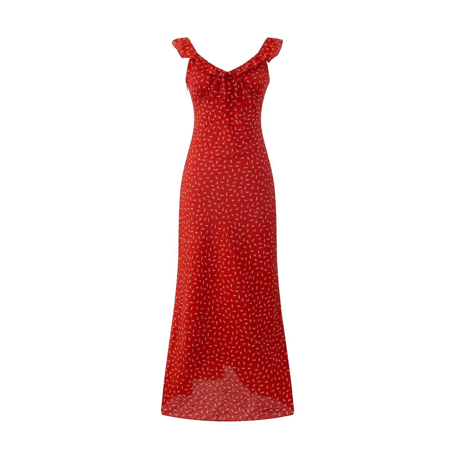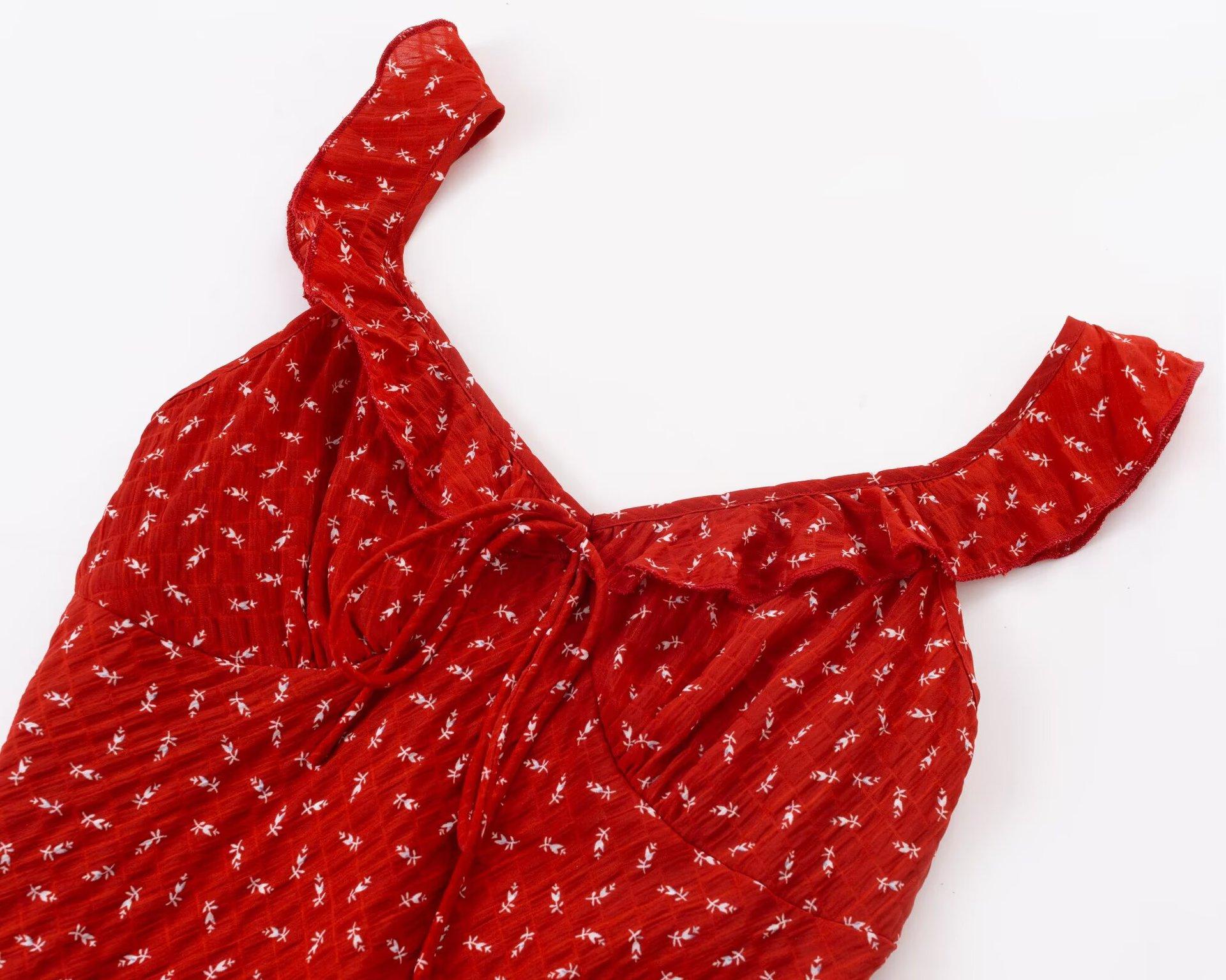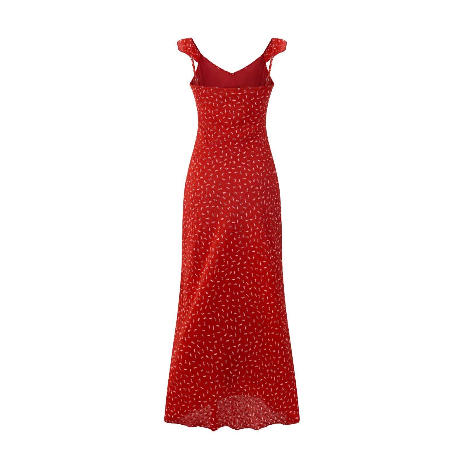 Estilo Deseo Puro Retro Correa Roja Sling Vestido Floral Vestido Largo Elegante y Suave de Cintura Ajustada para Verano