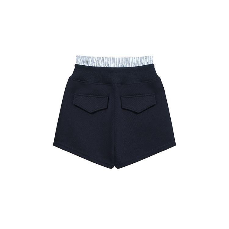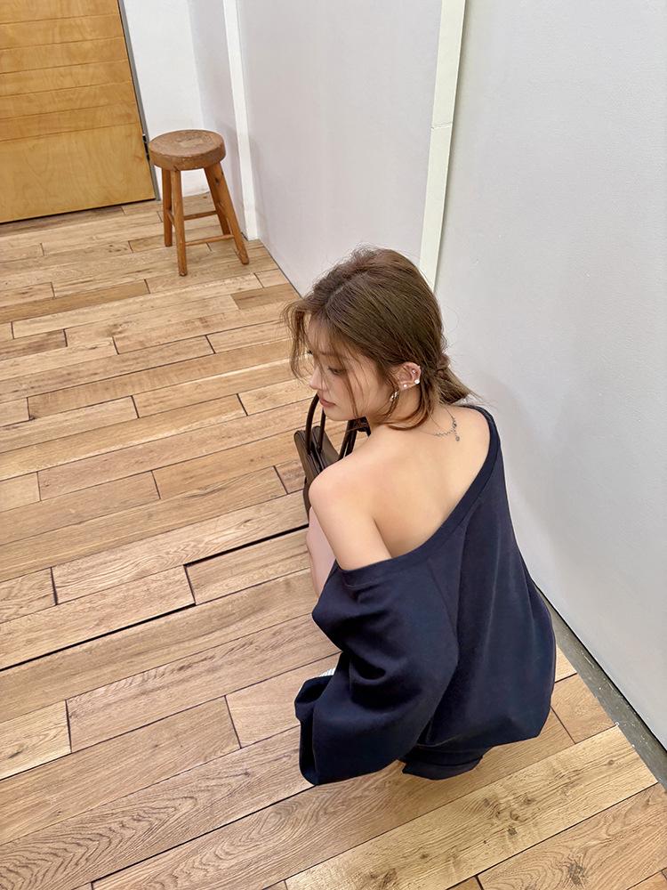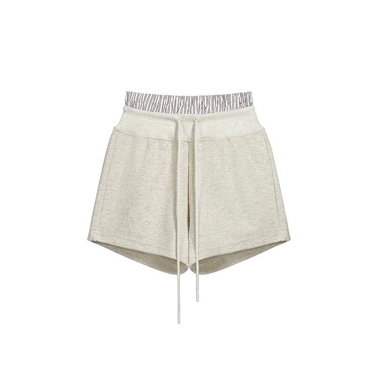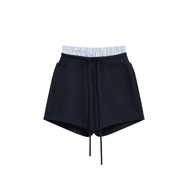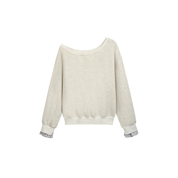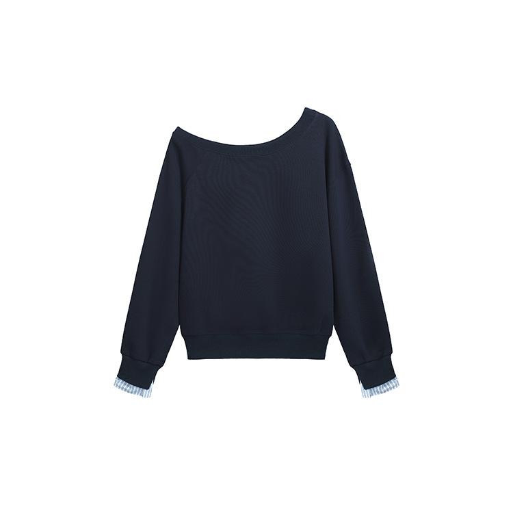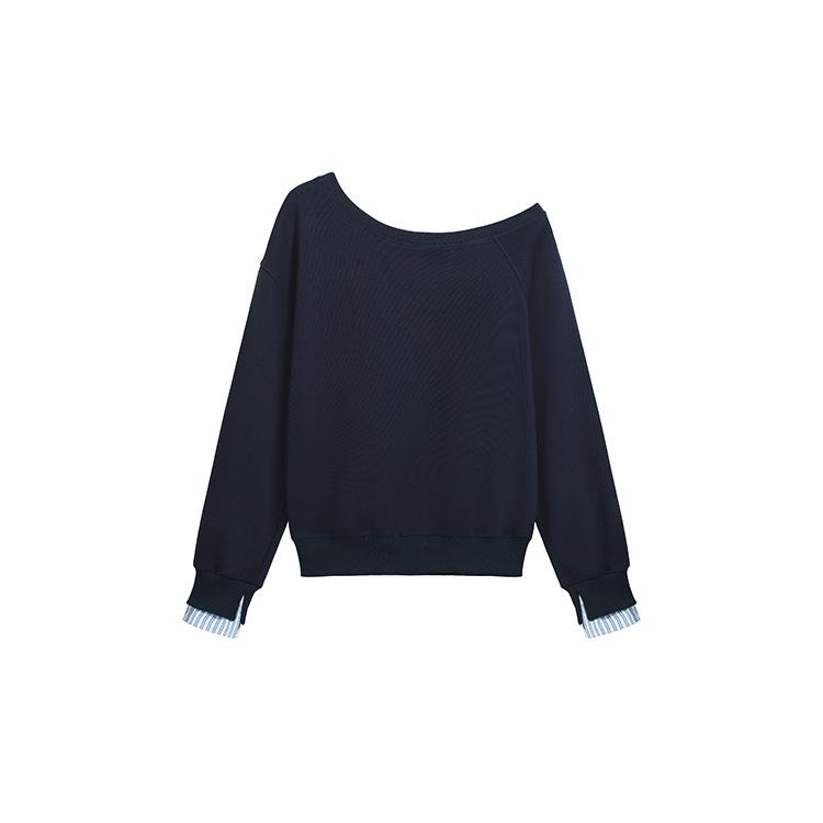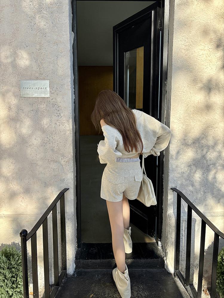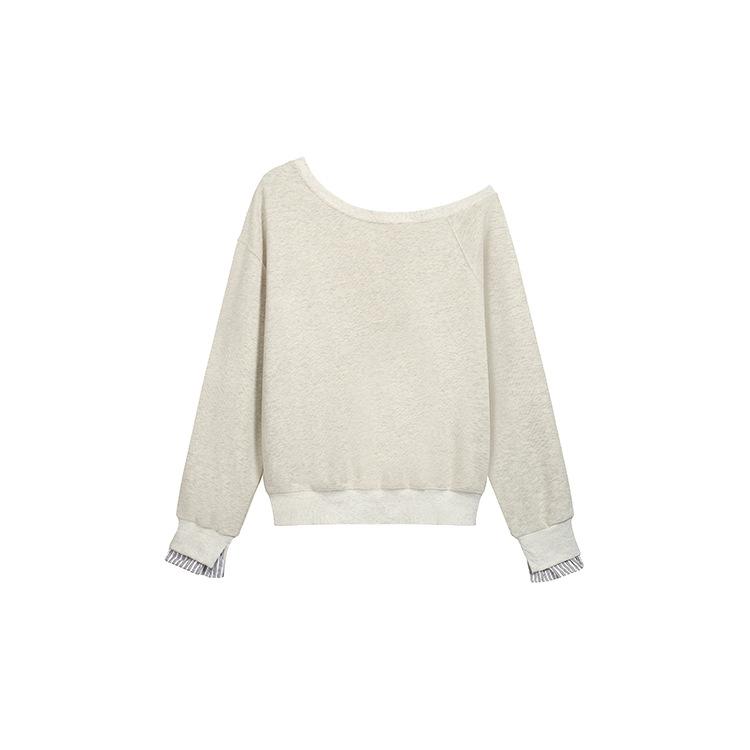 Foto Real Otoño/Invierno 2025 Nuevo Sudadera Top de Moda con Hombros Descubiertos para Chica Caliente Perezosa Conjunto de Dos Piezas de Shorts Color Block para Mujer