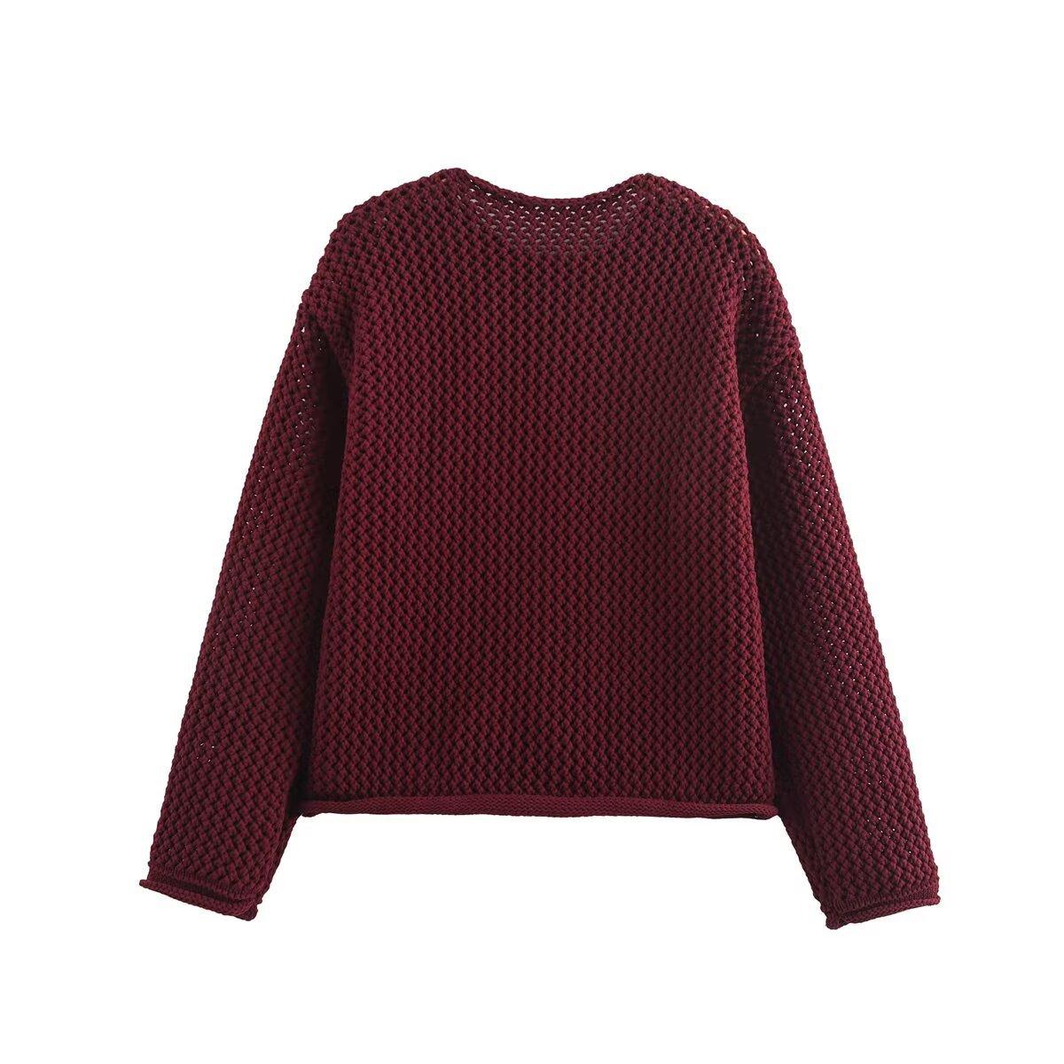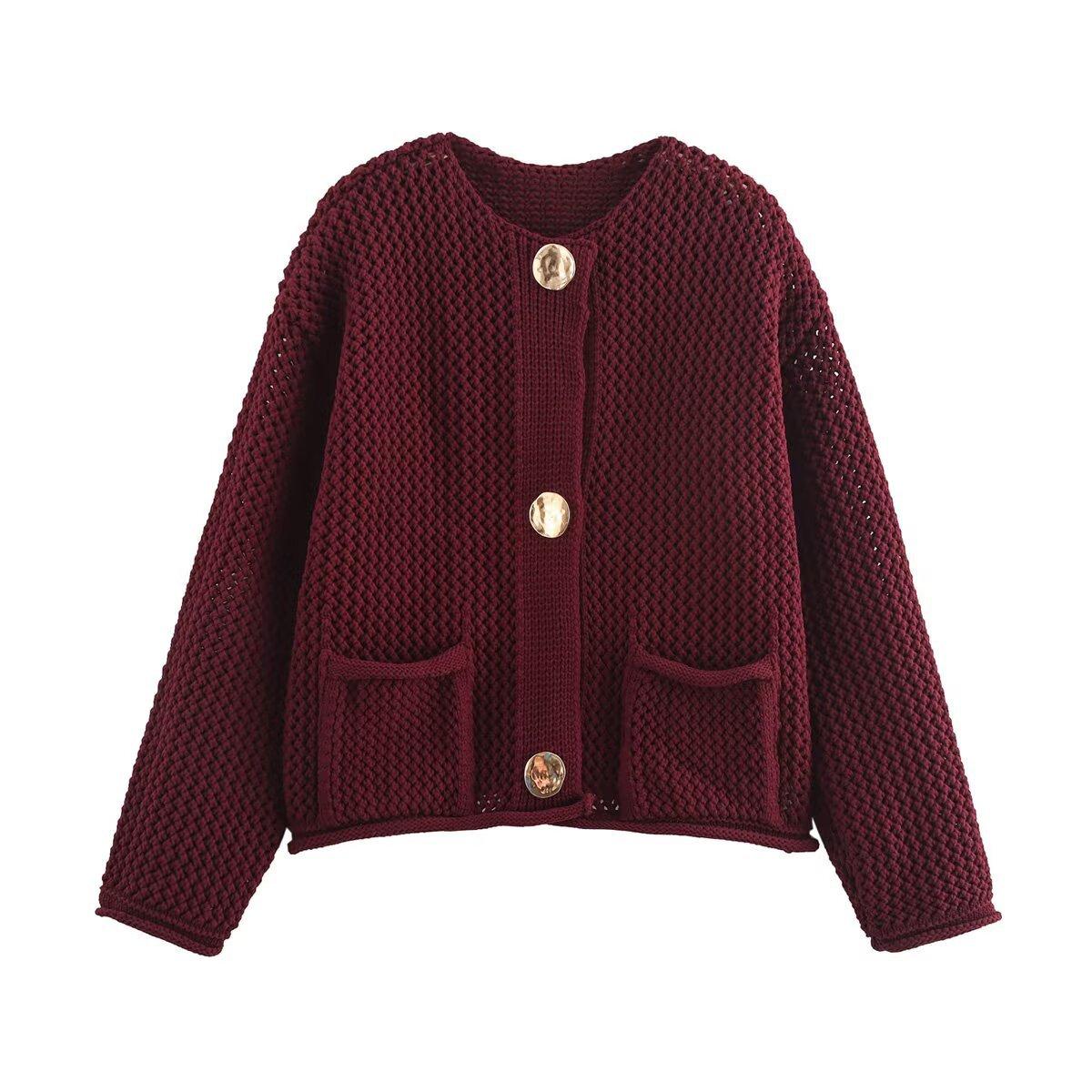 Cárdigan de Punto Grueso de Manga Larga y Cuello Redondo Popular en Aliexpress Europeo y Americano Transfronterizo, Estilo Holgado, Sencillo y Versátil de Estilo Lazy