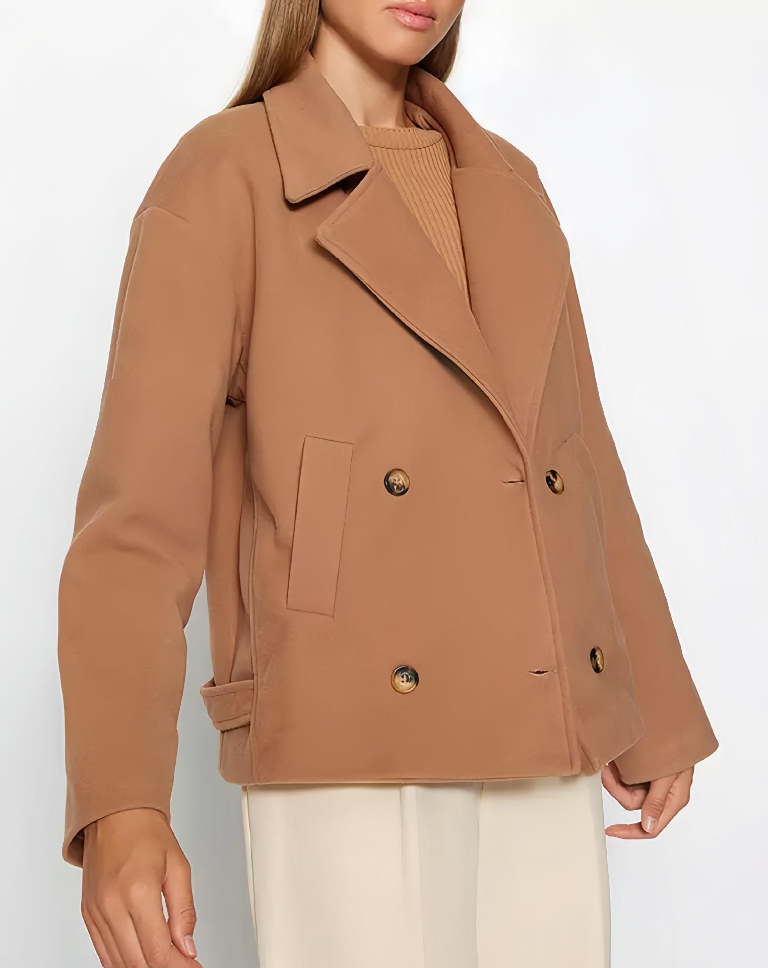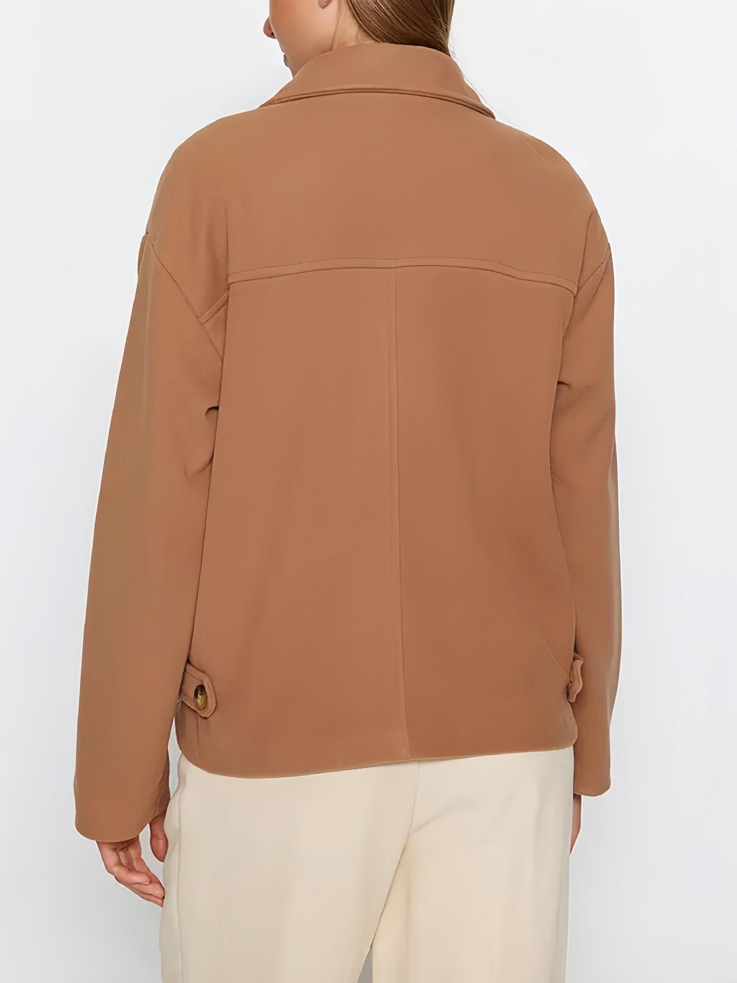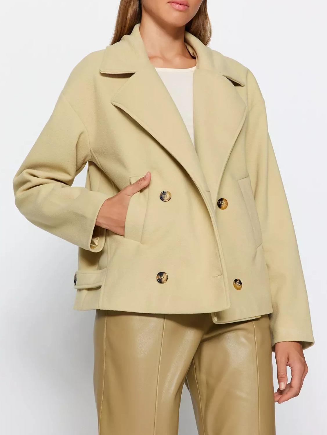 Chaqueta de Traje Pequeña de Doble Botonadura Europea y Americana de Alta Gama 2025 Transfronteriza Casual Simple Solapa Manga Larga Chaqueta de Traje Pequeña