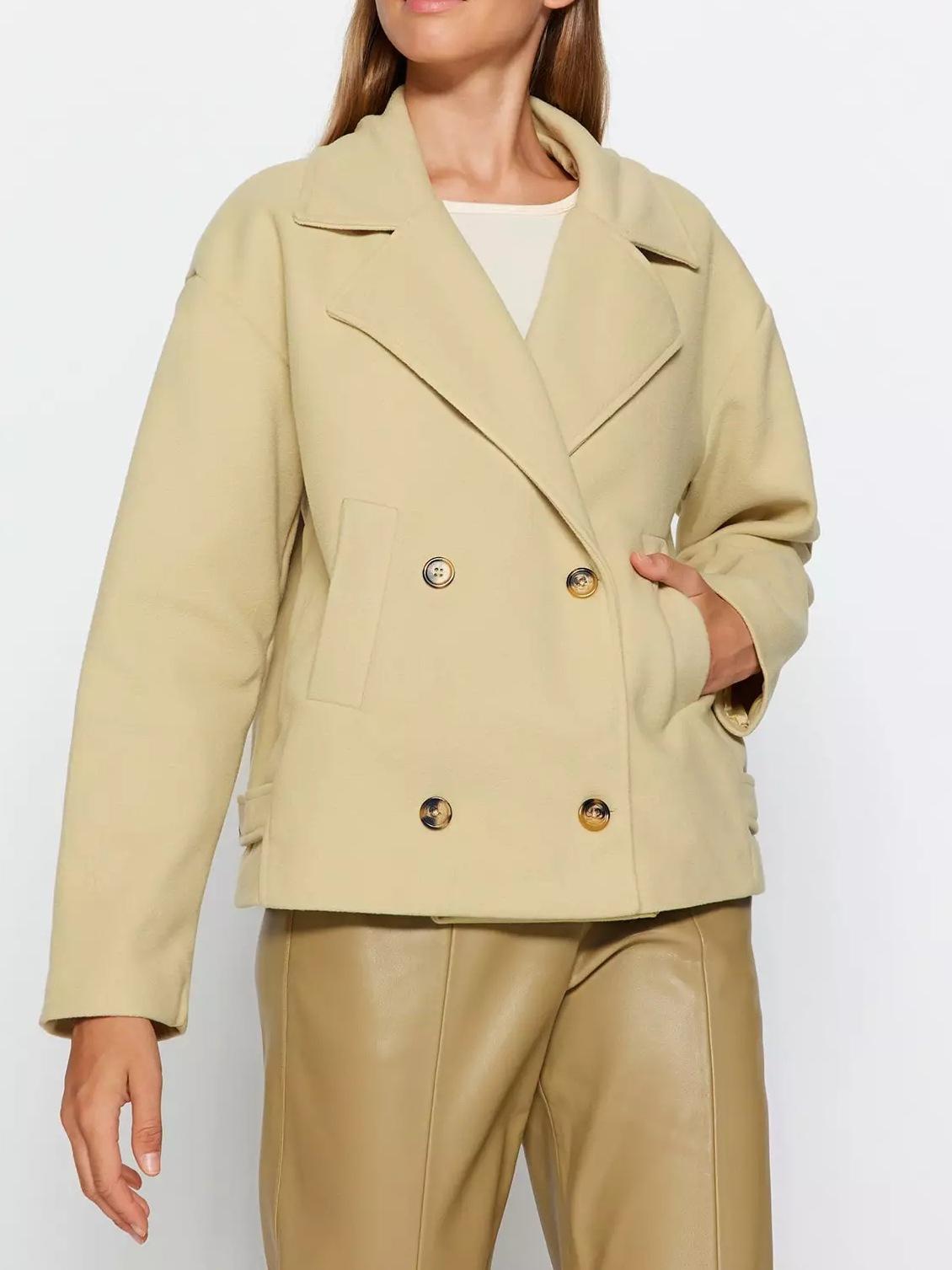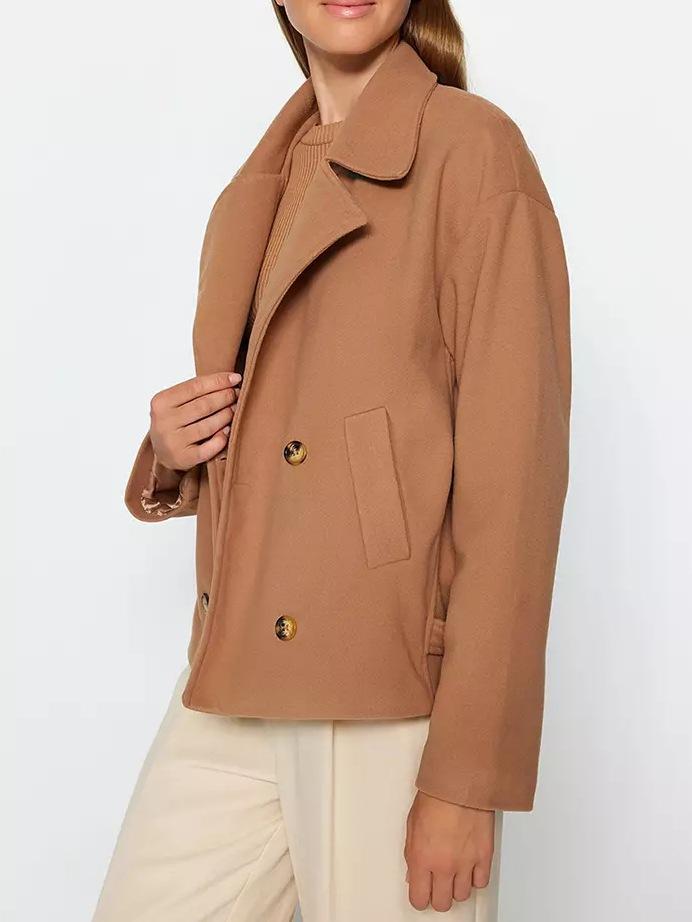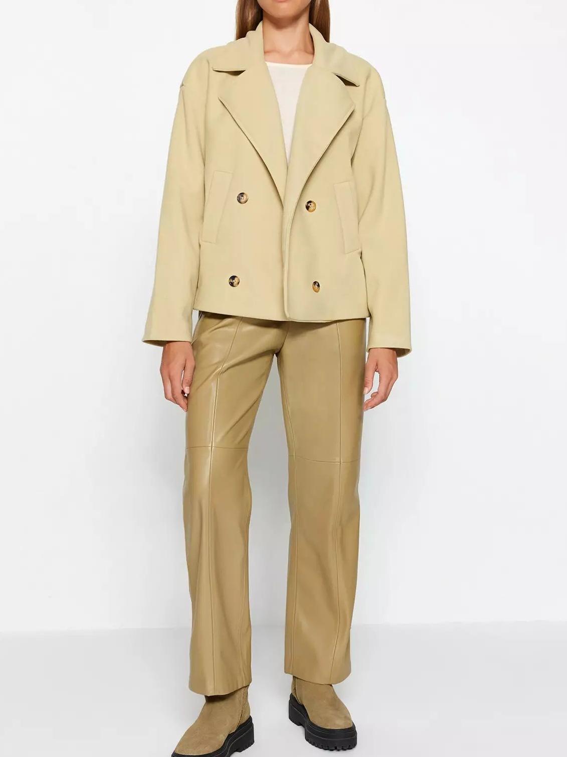 Chaqueta de Traje Pequeña de Doble Botonadura Europea y Americana de Alta Gama 2025 Transfronteriza Casual Simple Solapa Manga Larga Chaqueta de Traje Pequeña