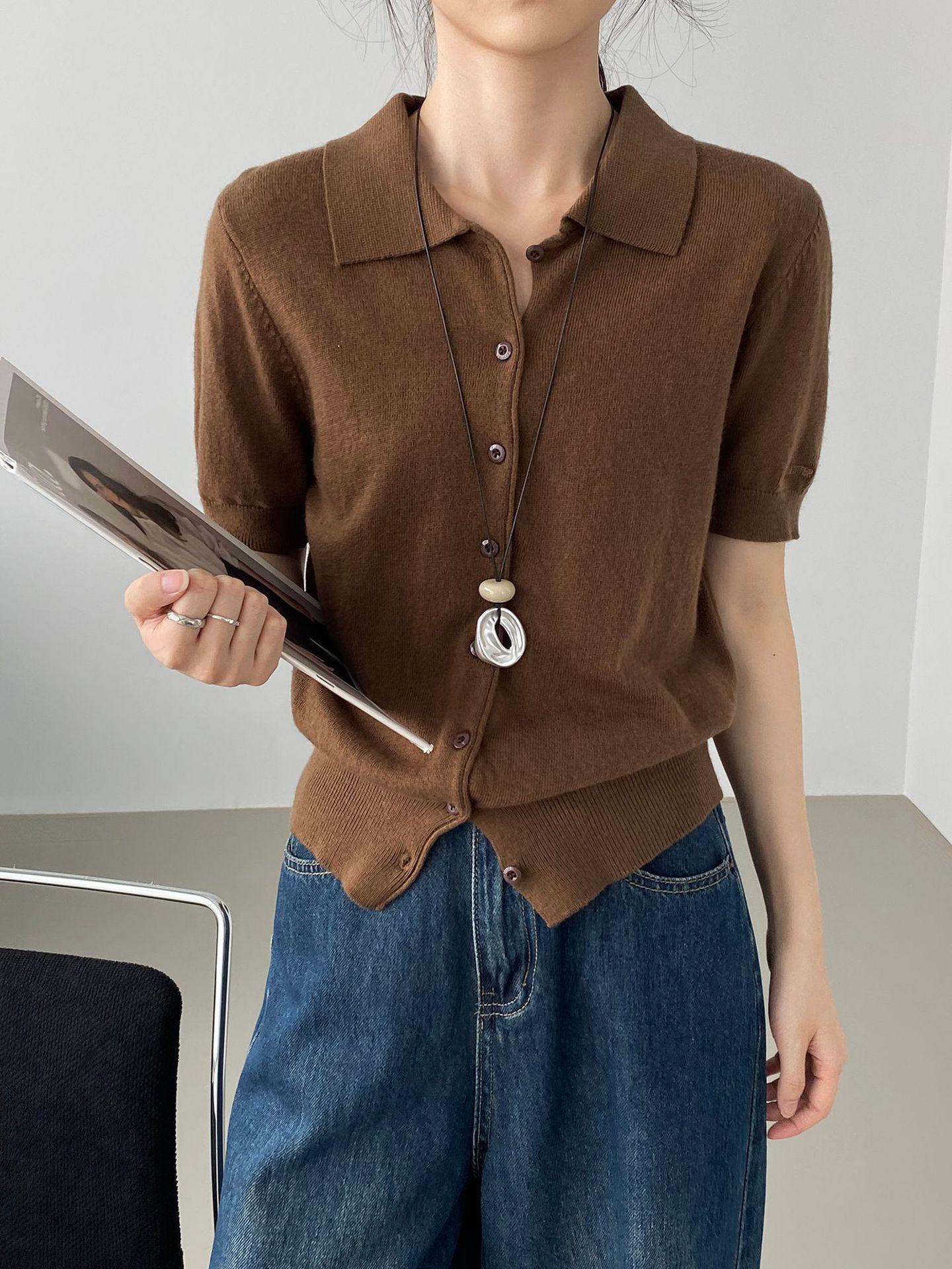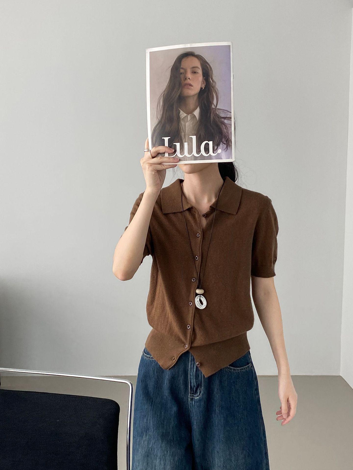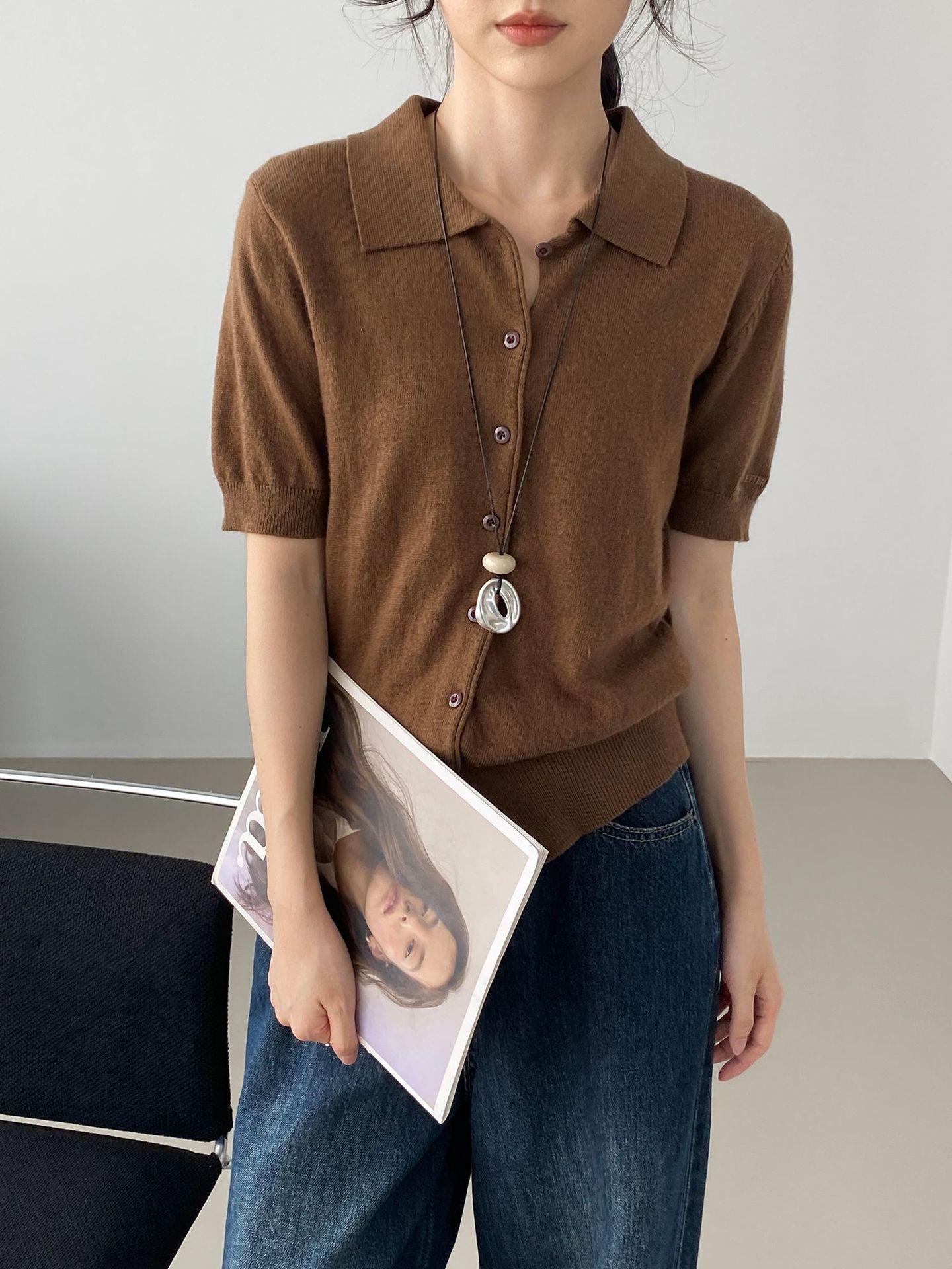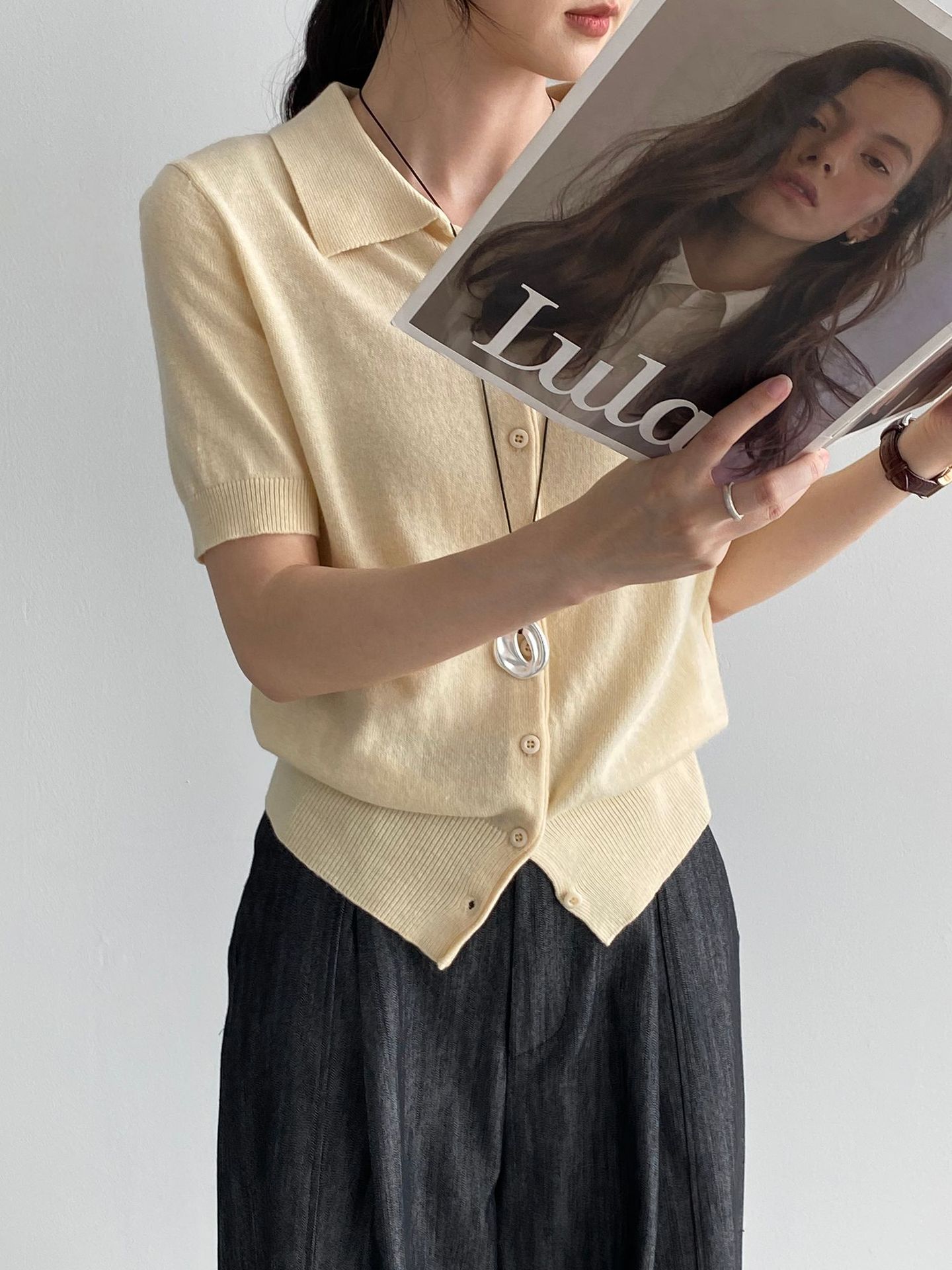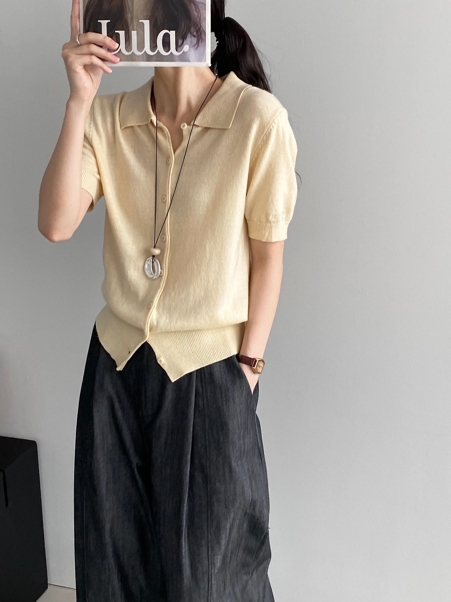 Así que temperamento minimalista coreano miu estilo bordado punto mujer suave adelgazante solapa top versátil Y1227