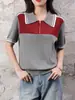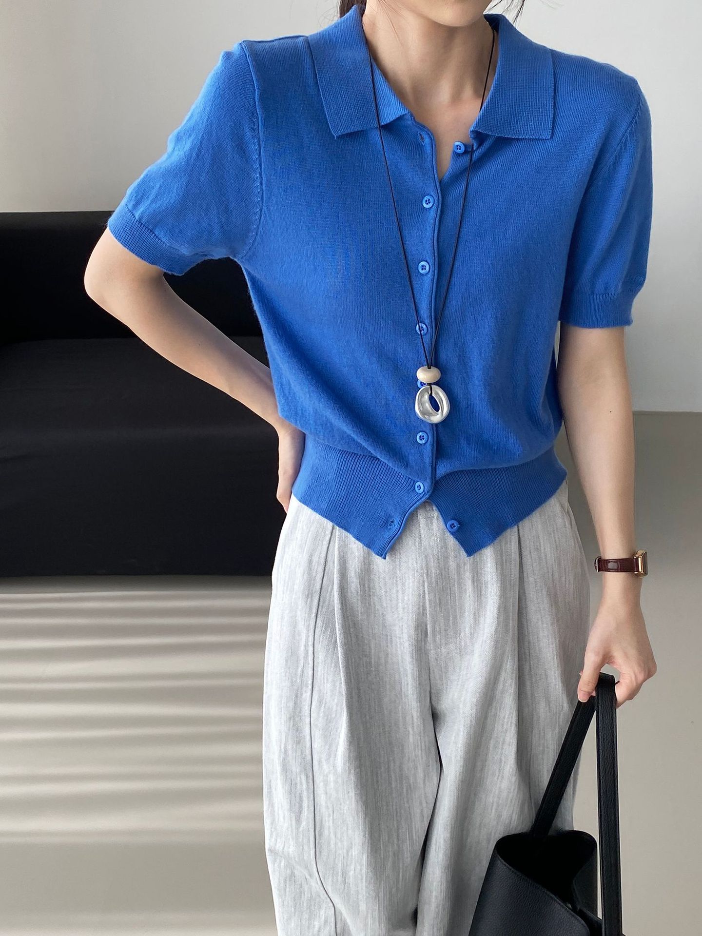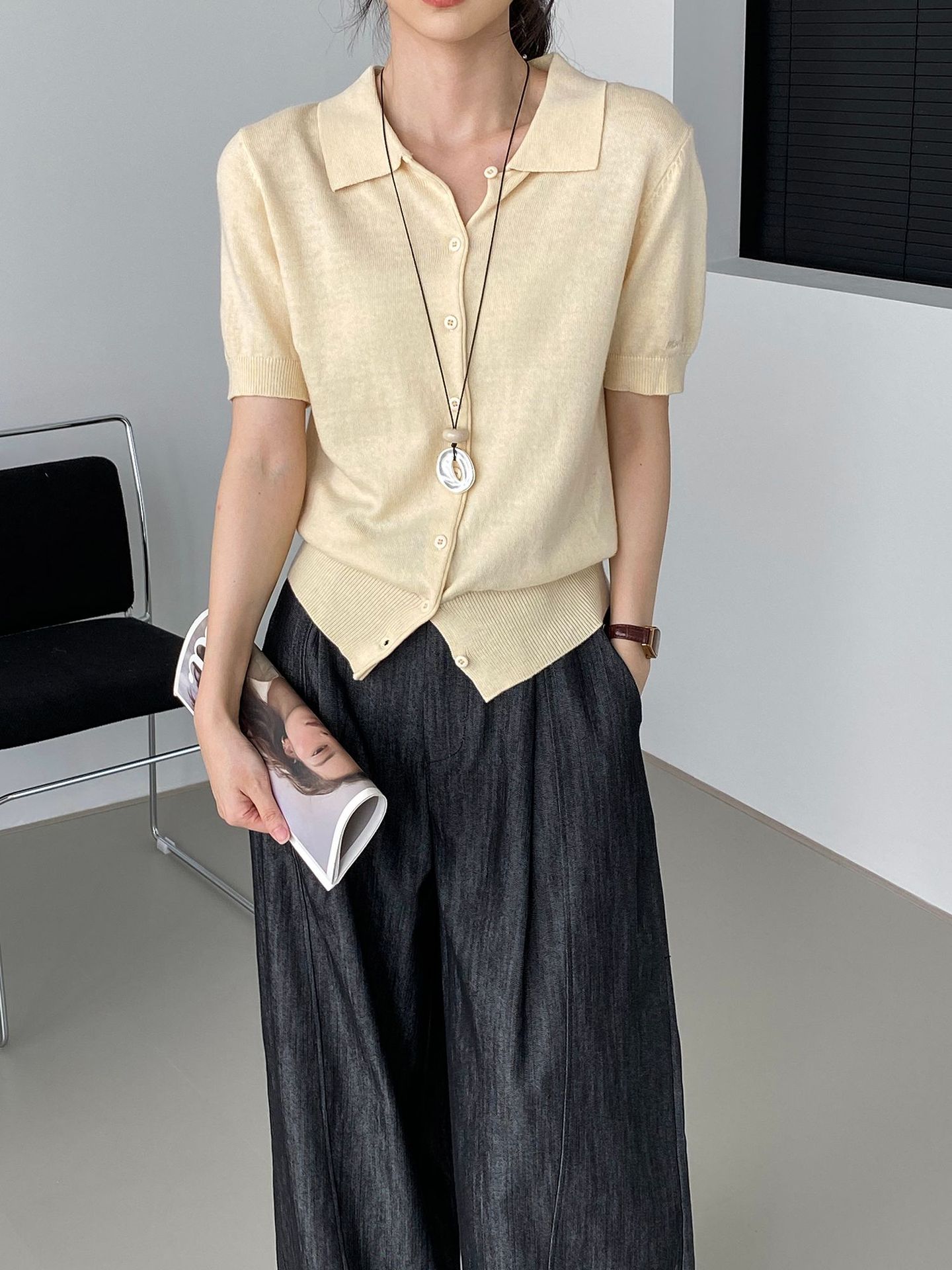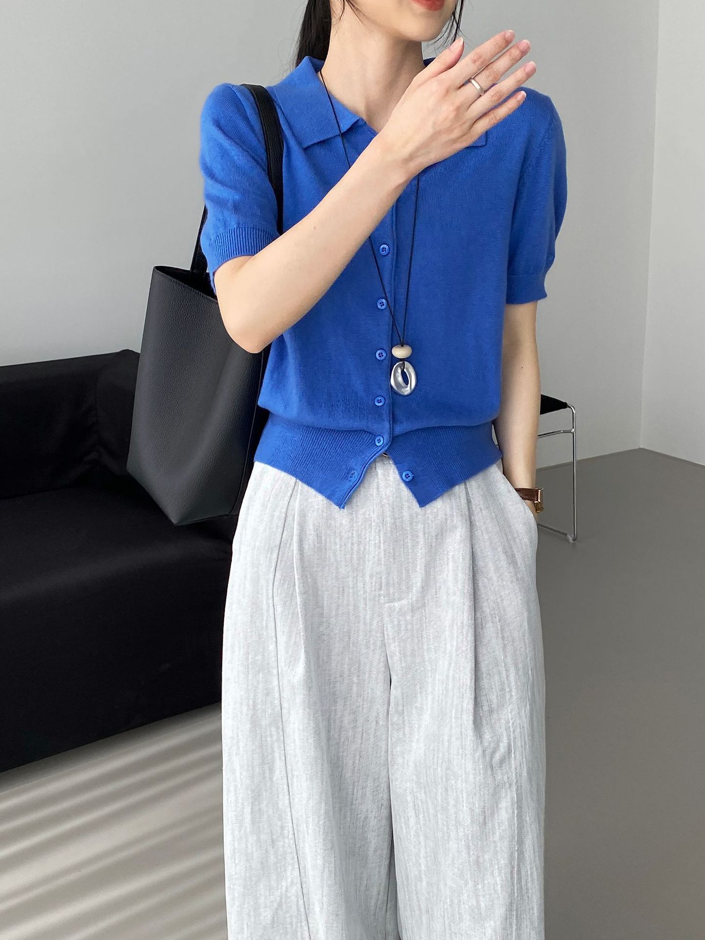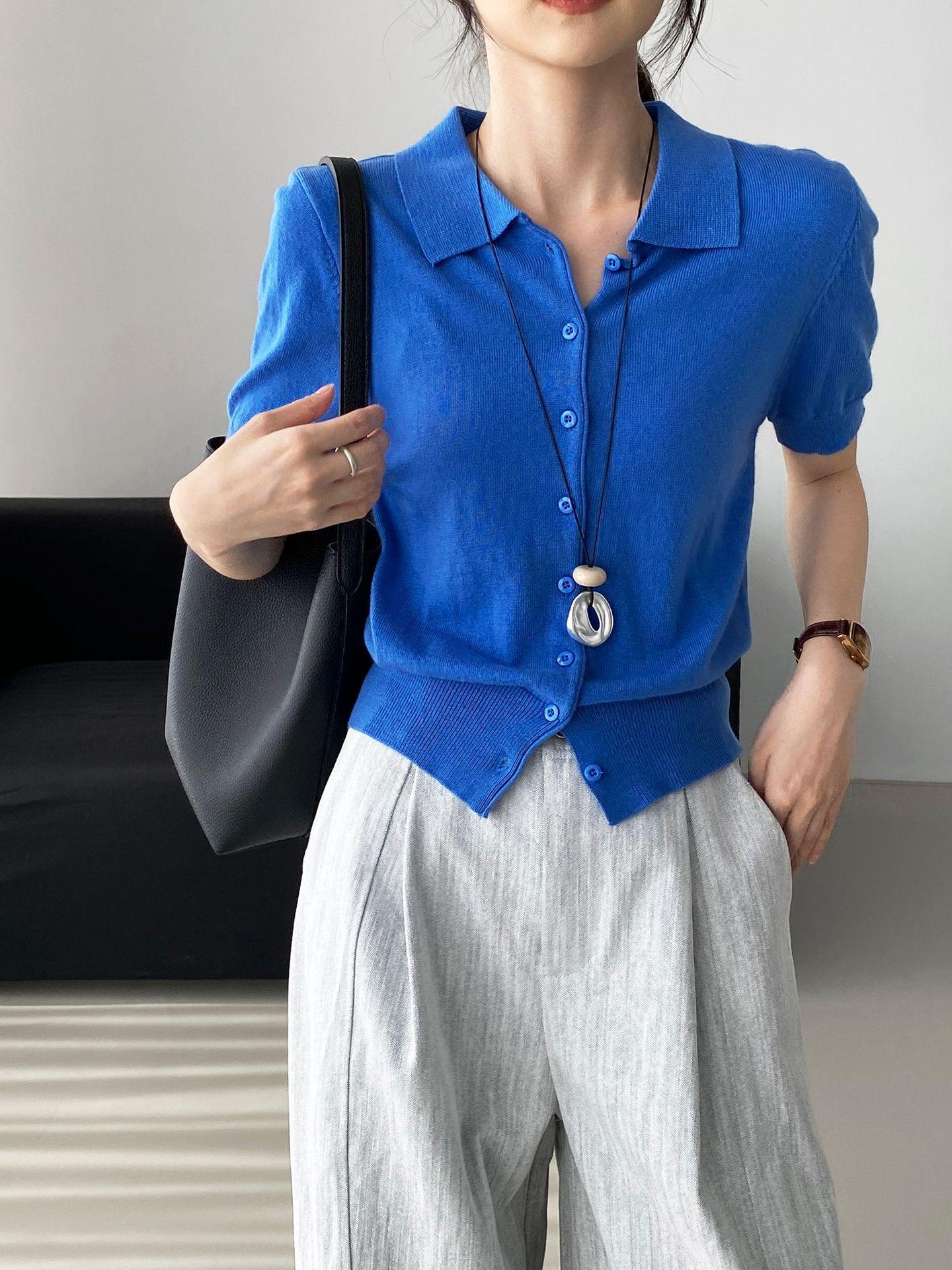 Así que temperamento minimalista coreano miu estilo bordado punto mujer suave adelgazante solapa top versátil Y1227