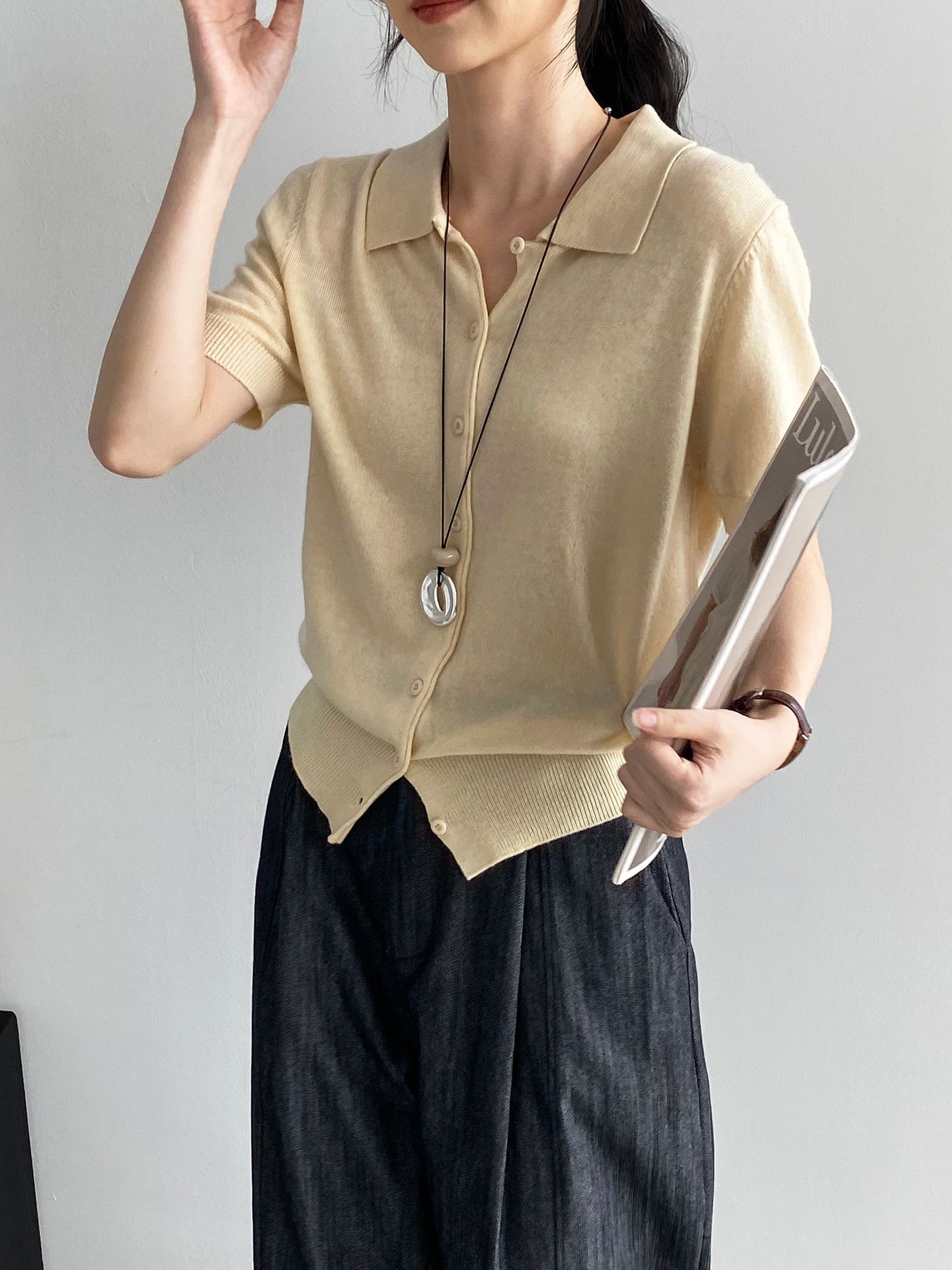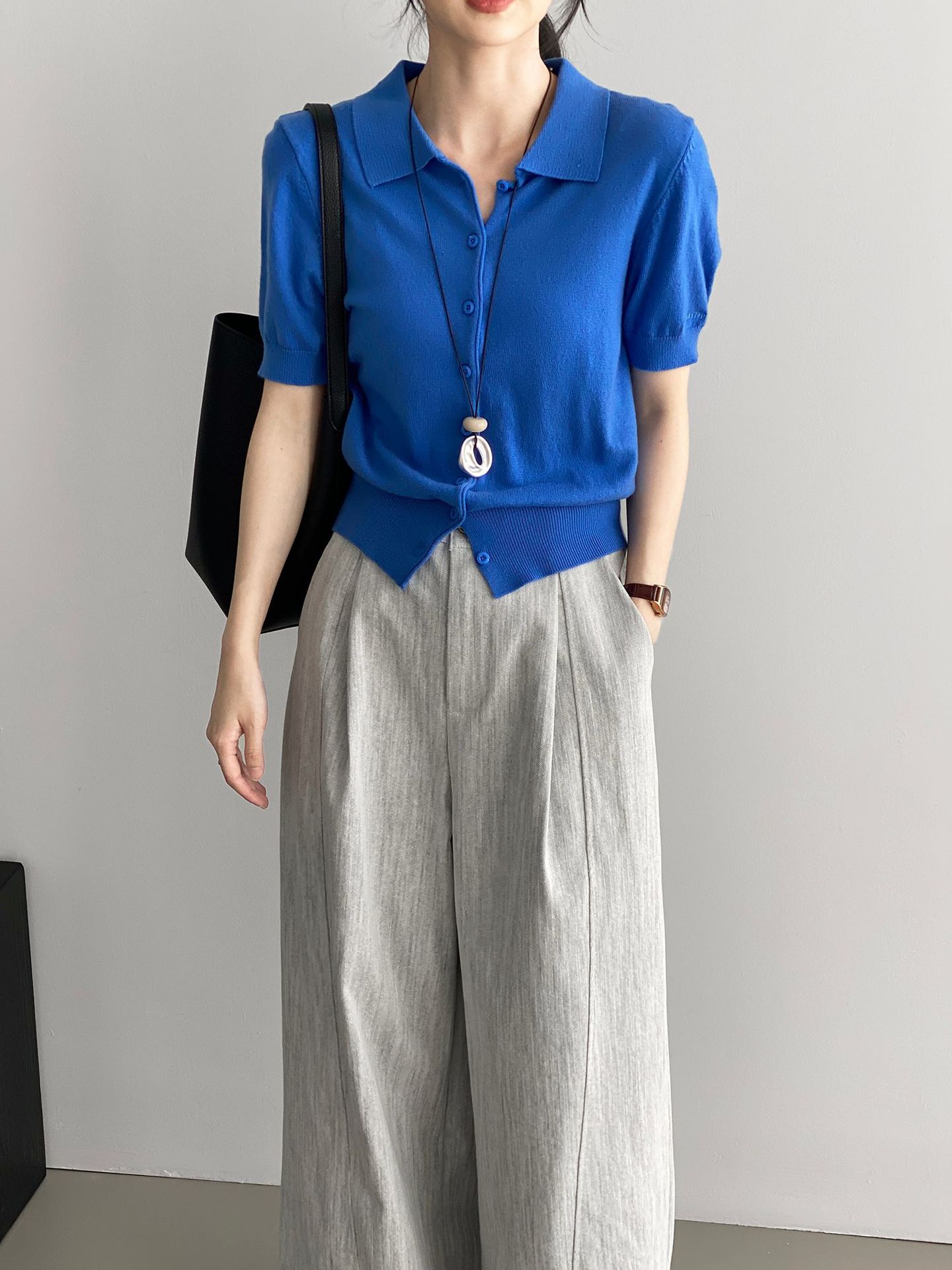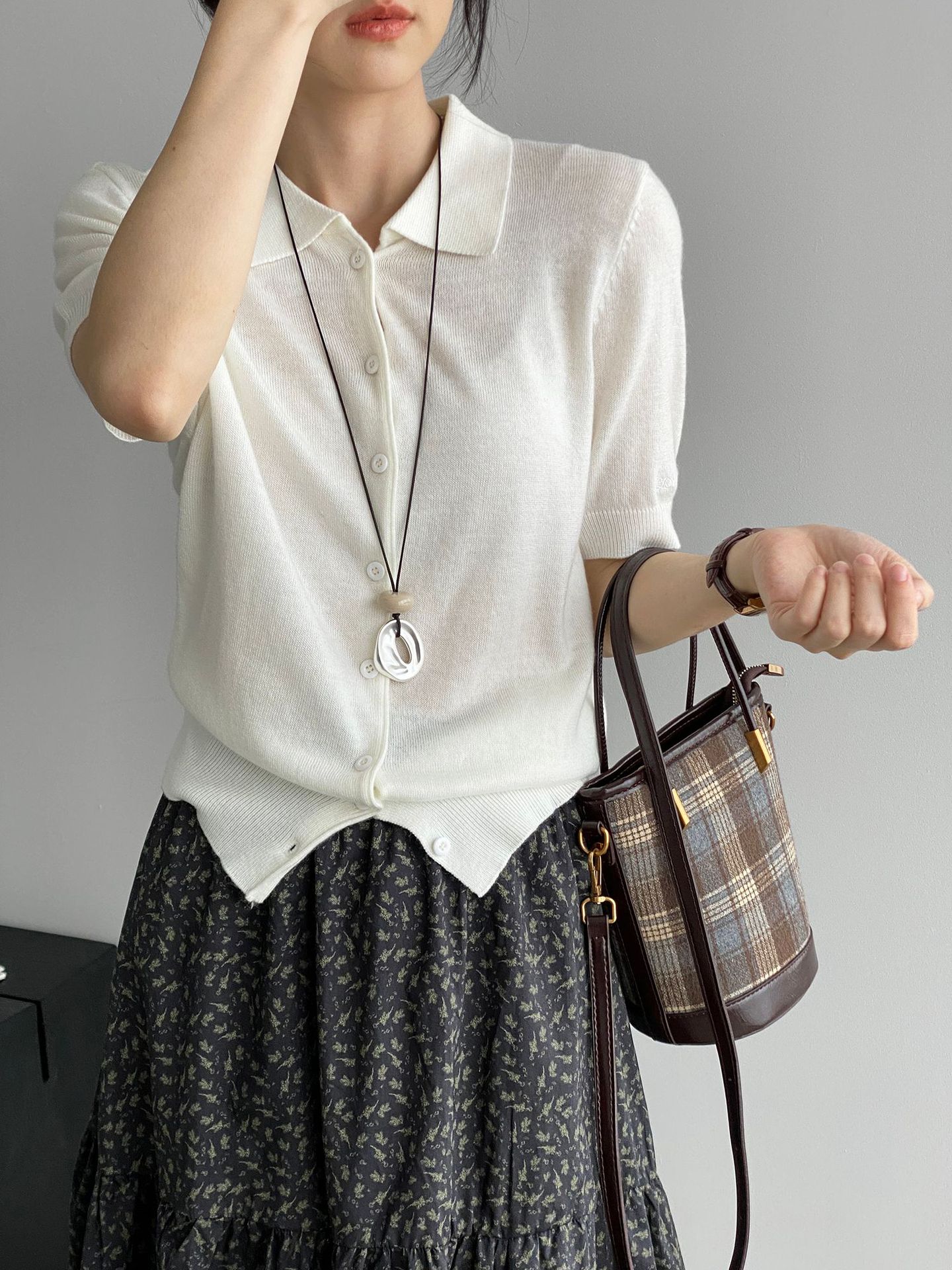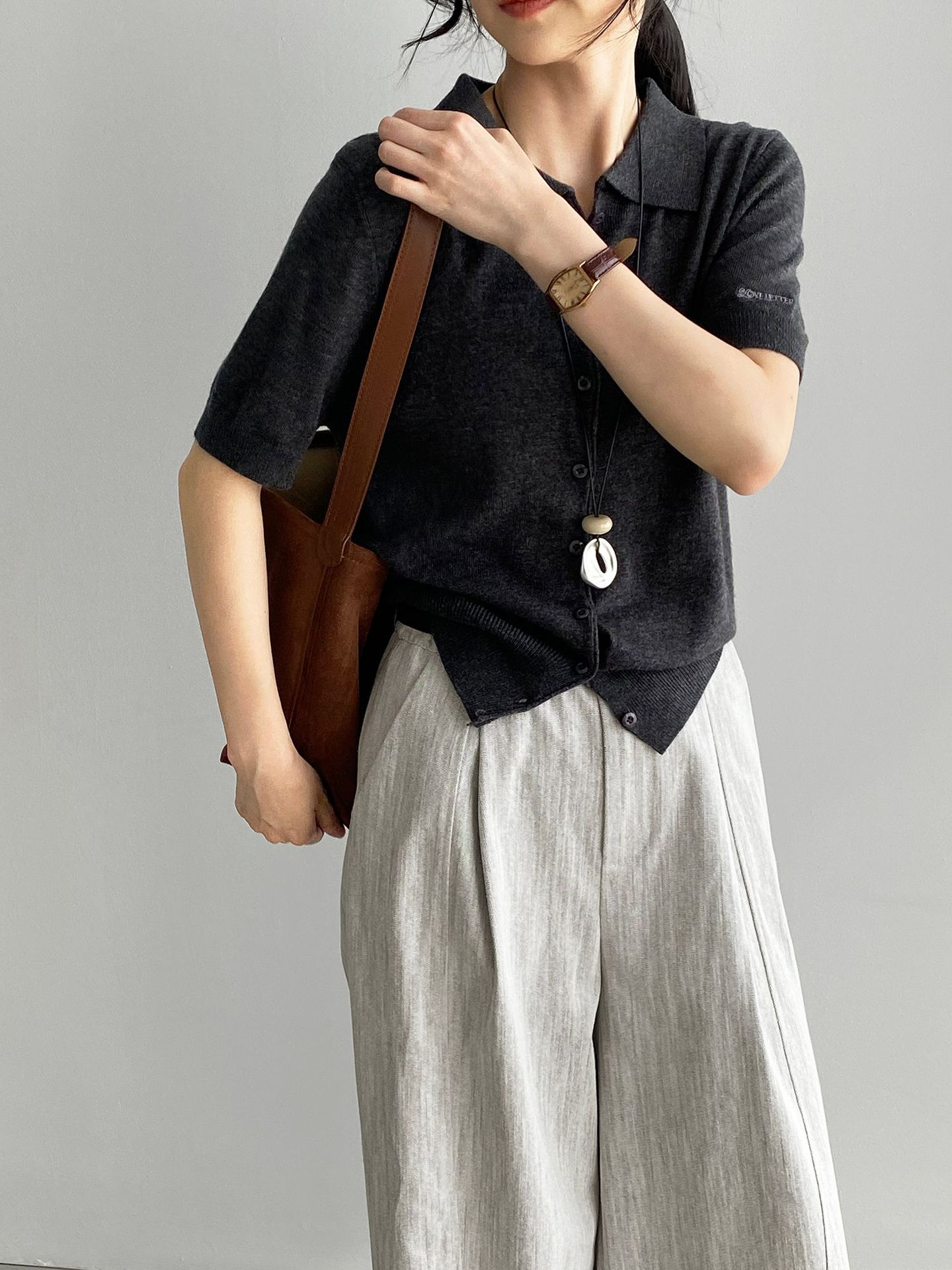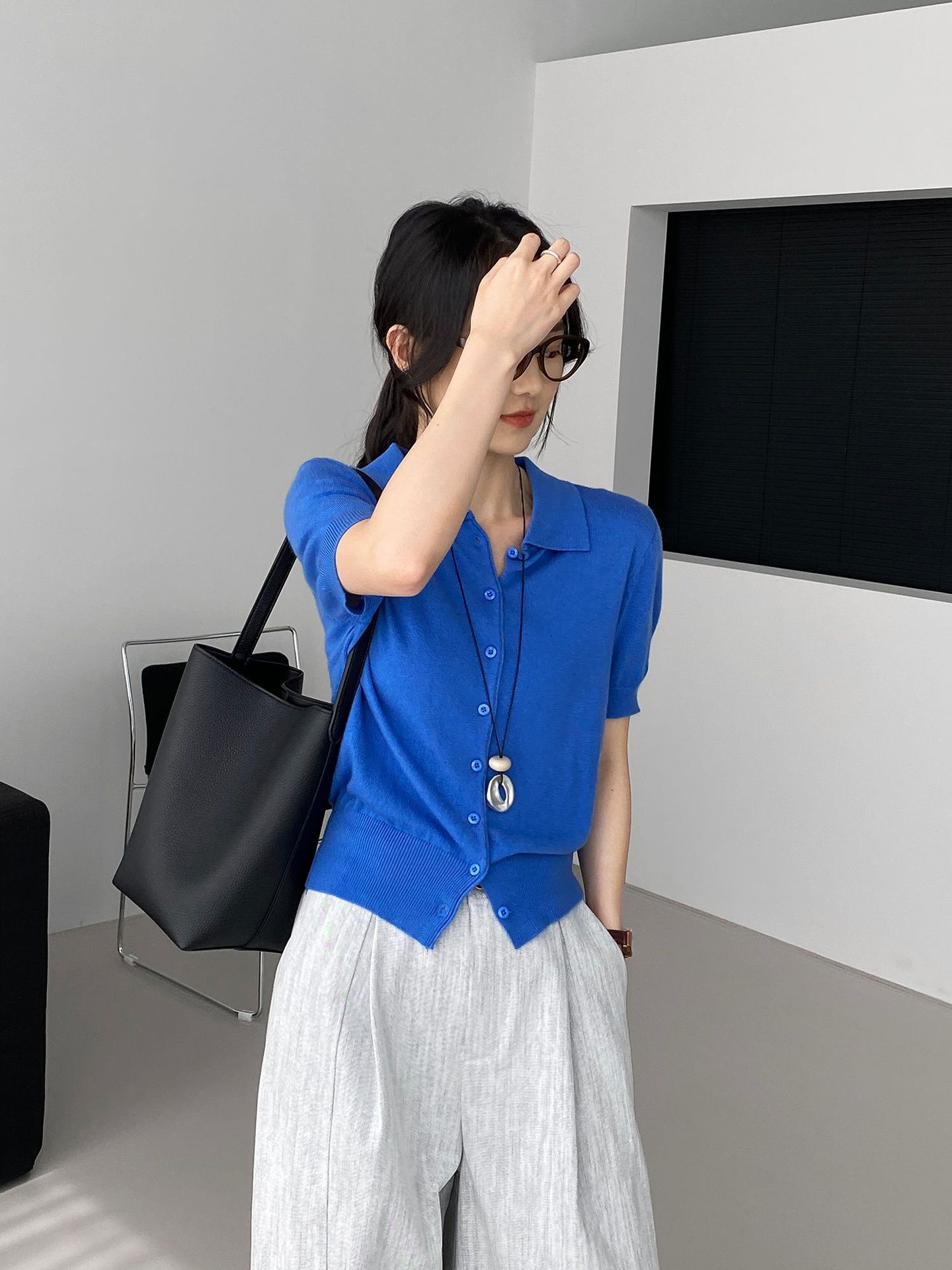 Así que temperamento minimalista coreano miu estilo bordado punto mujer suave adelgazante solapa top versátil Y1227