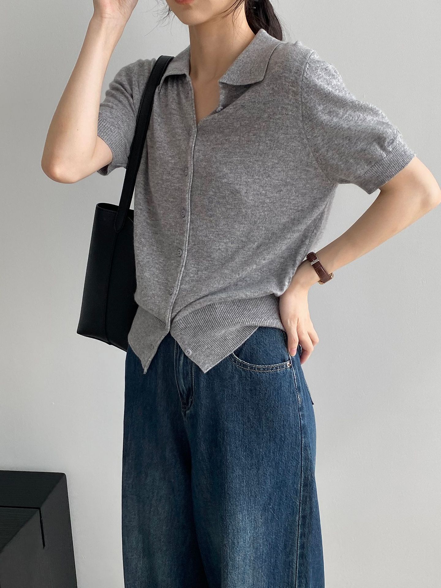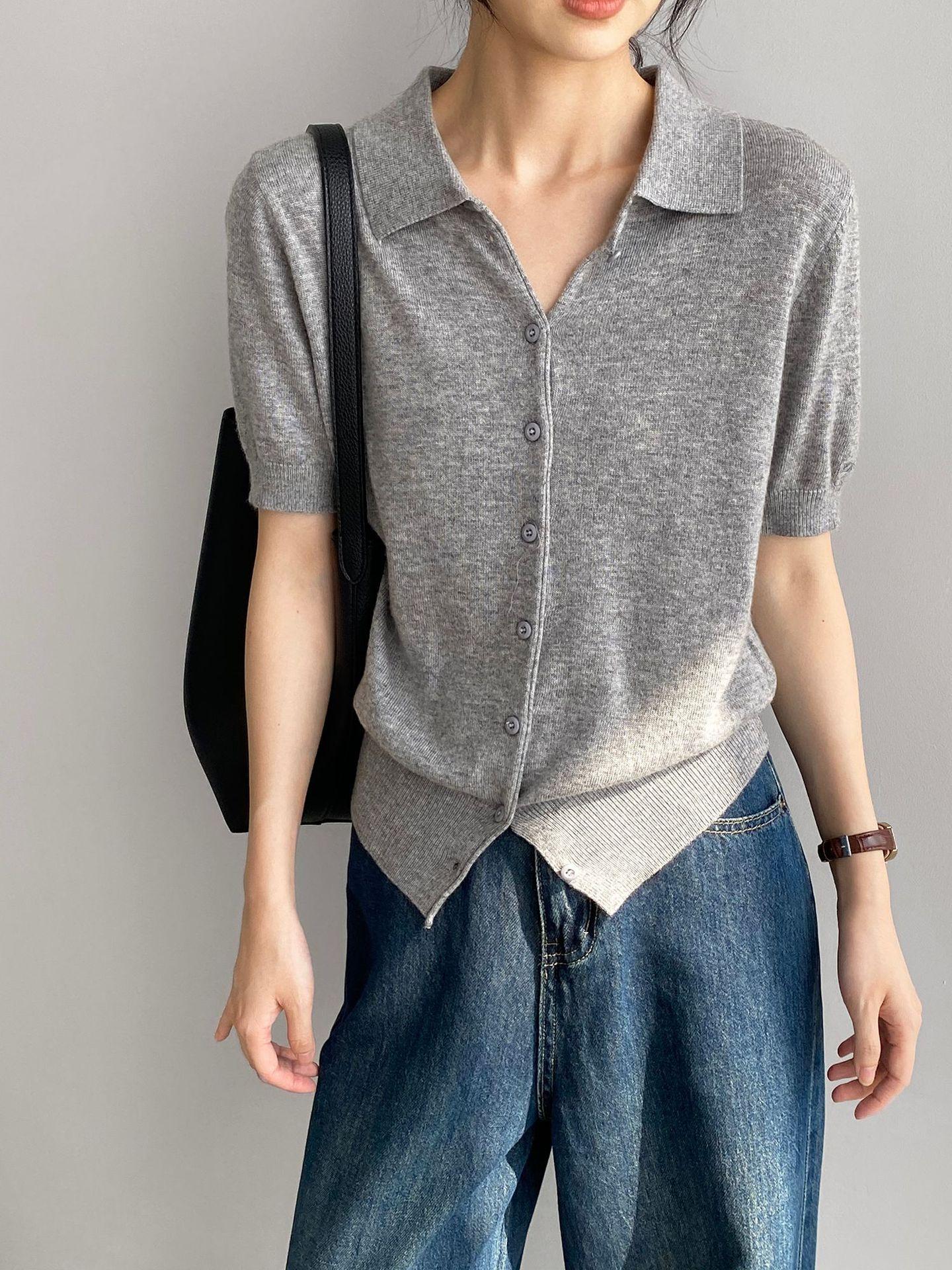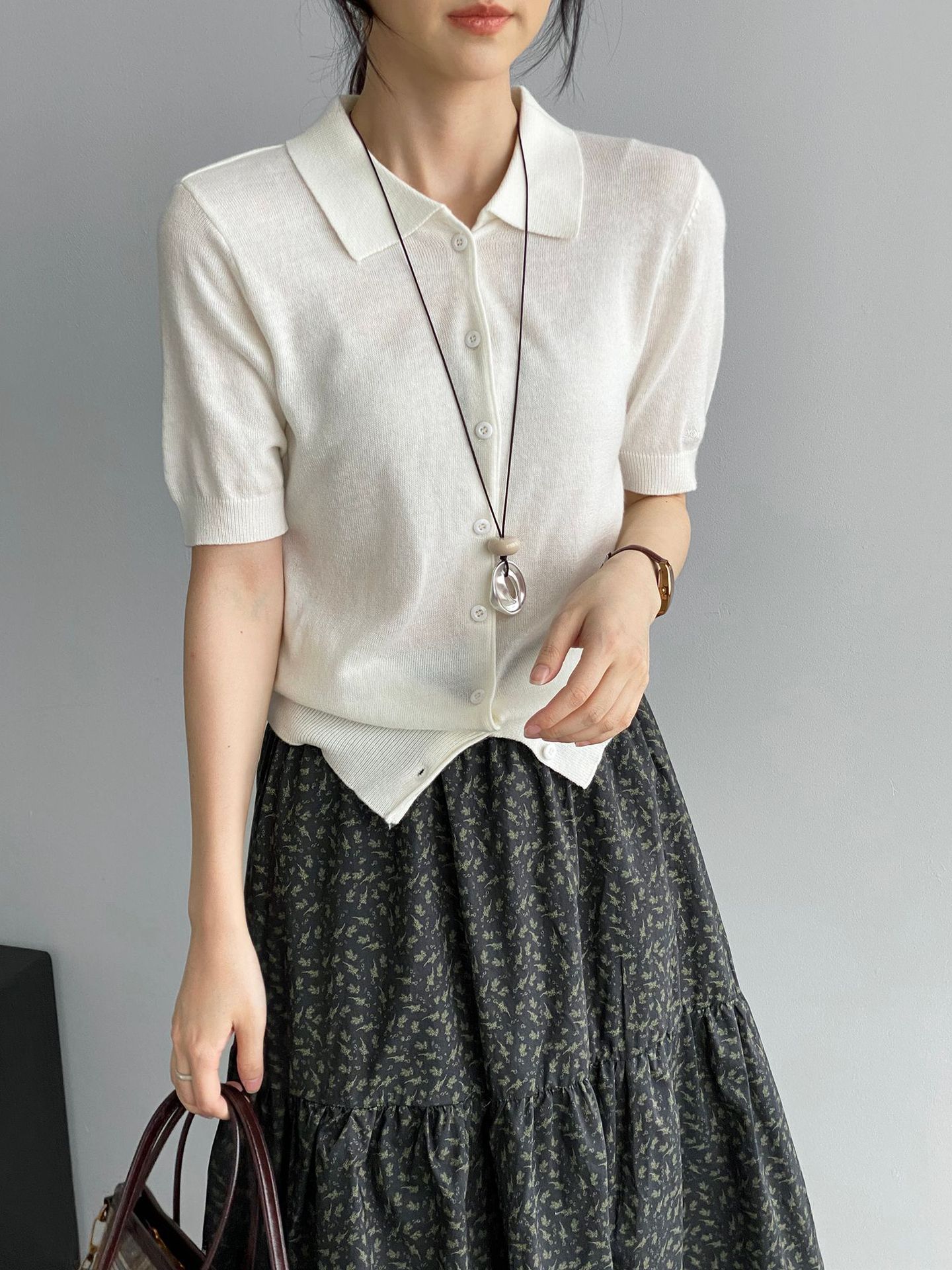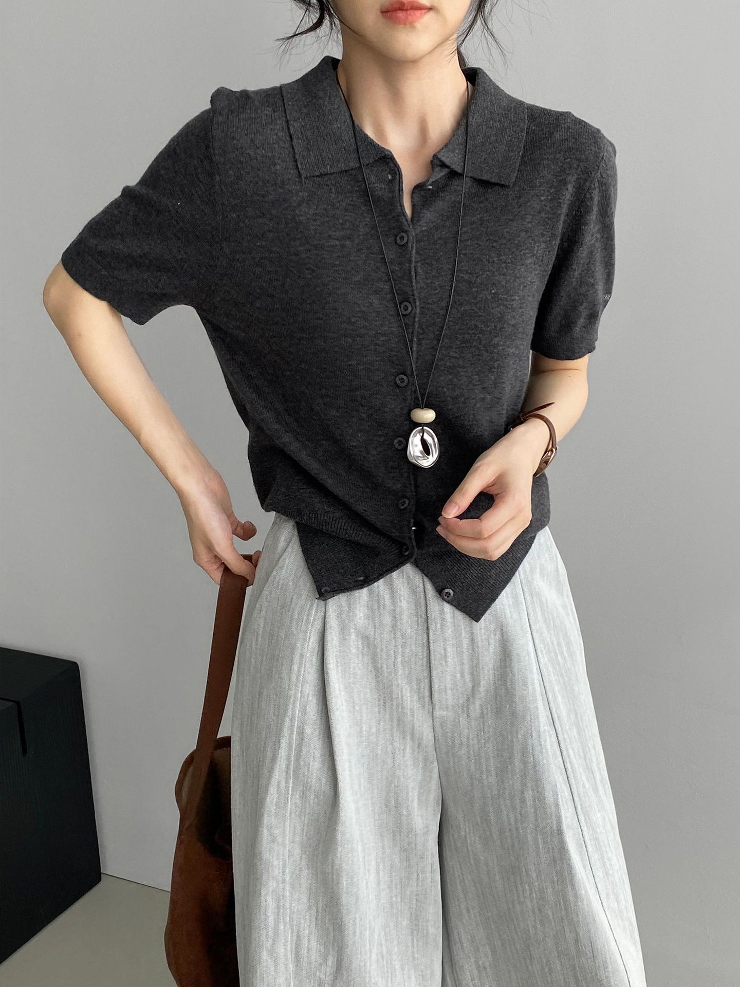 Así que temperamento minimalista coreano miu estilo bordado punto mujer suave adelgazante solapa top versátil Y1227